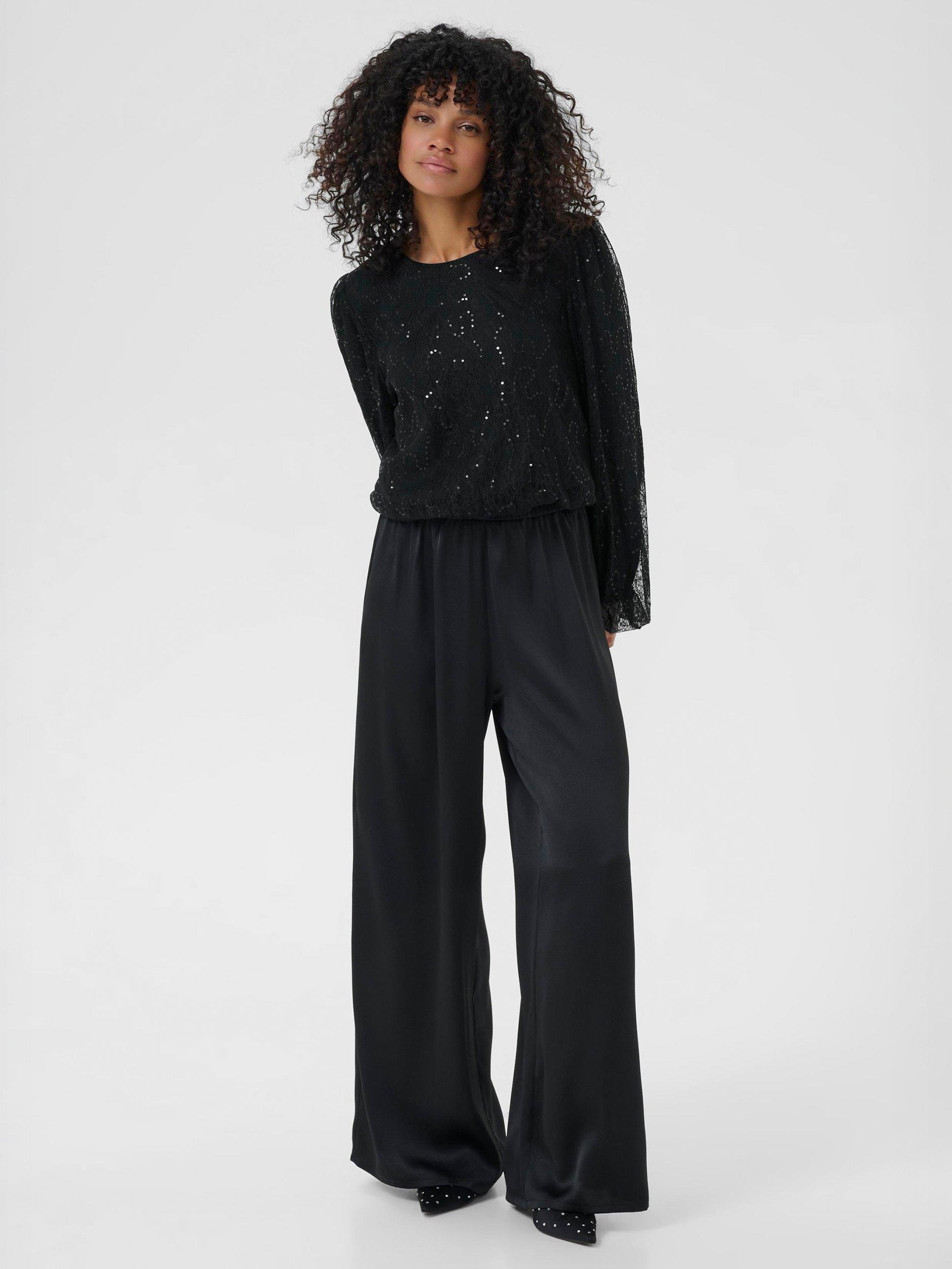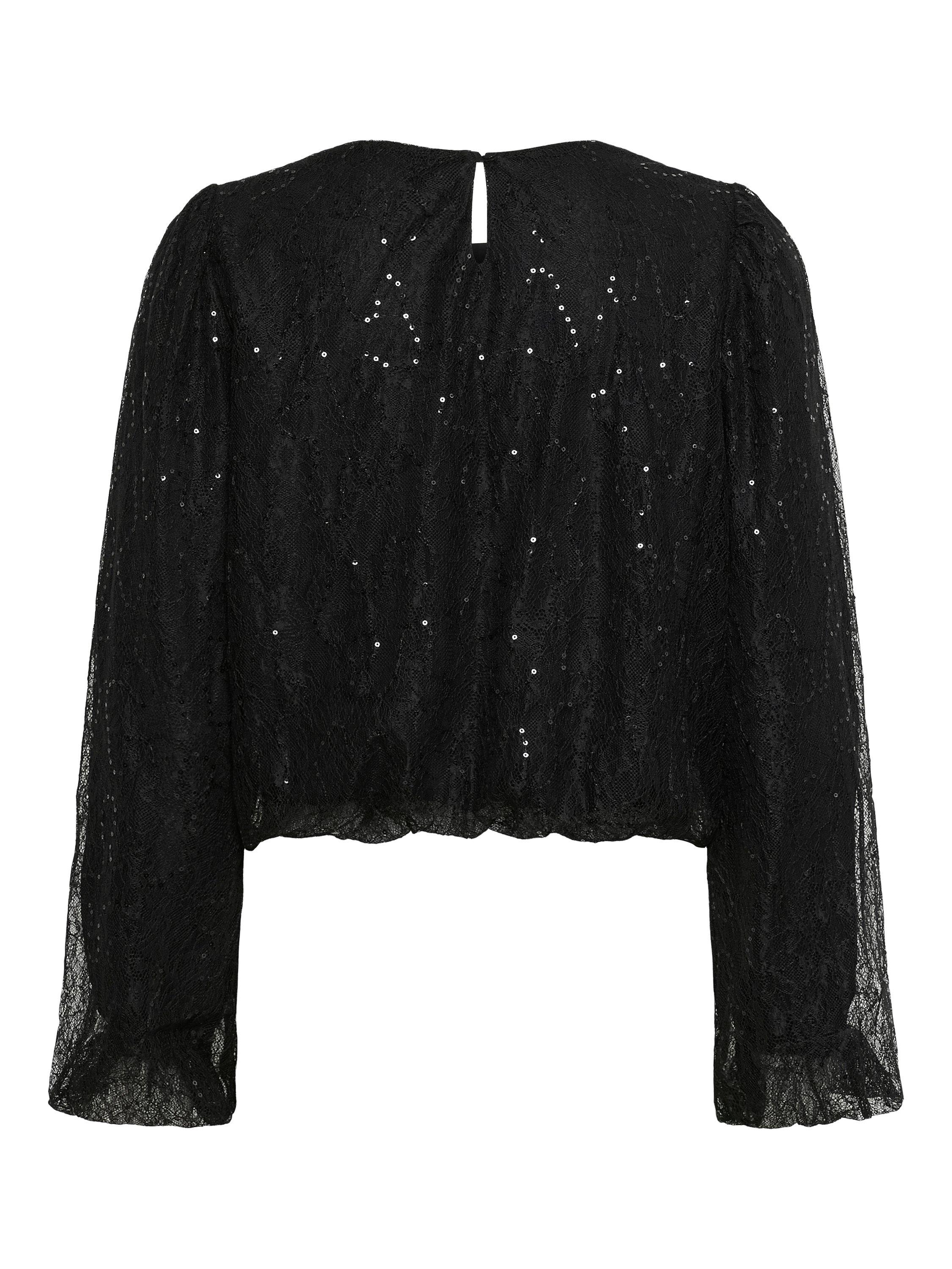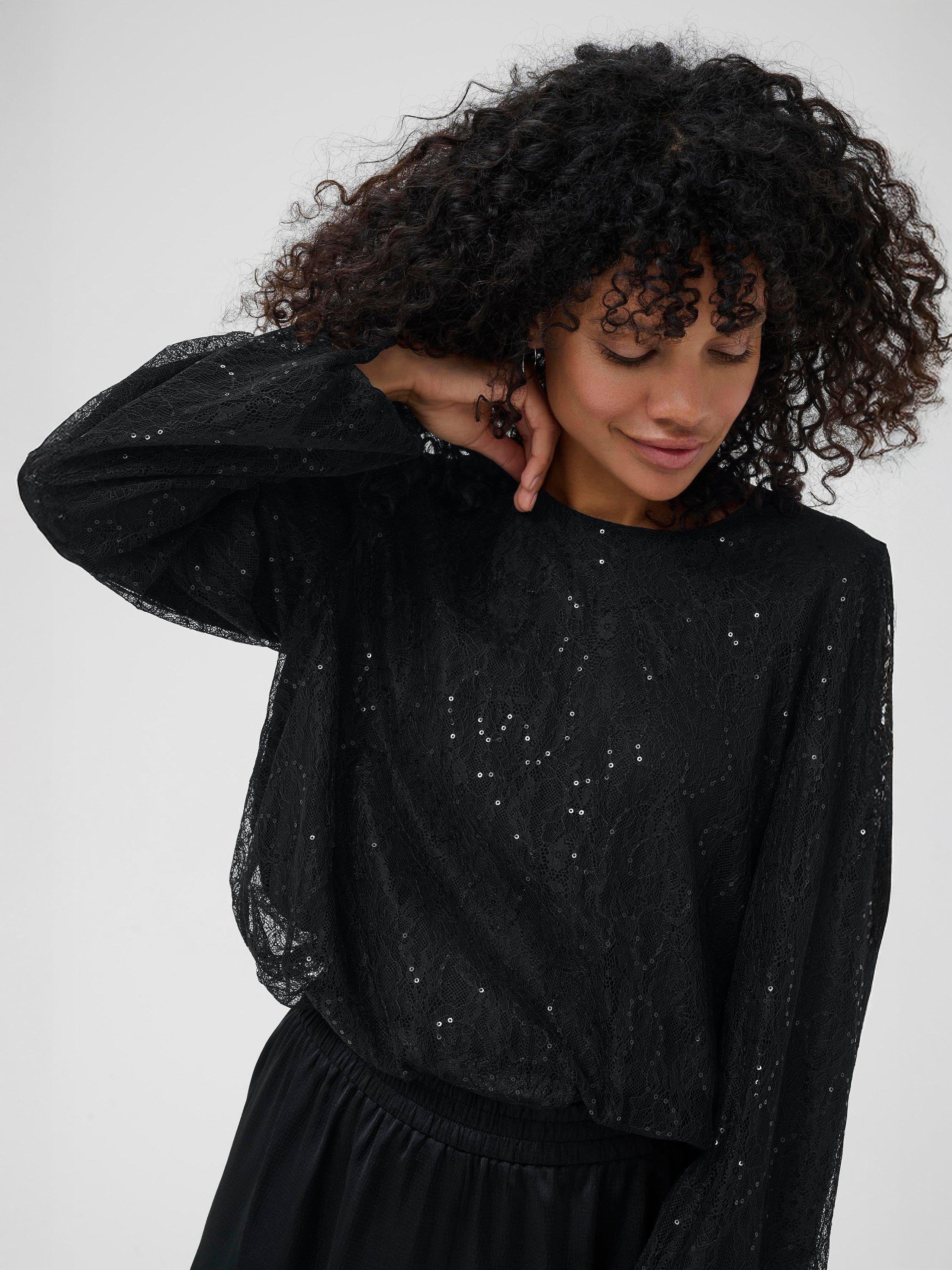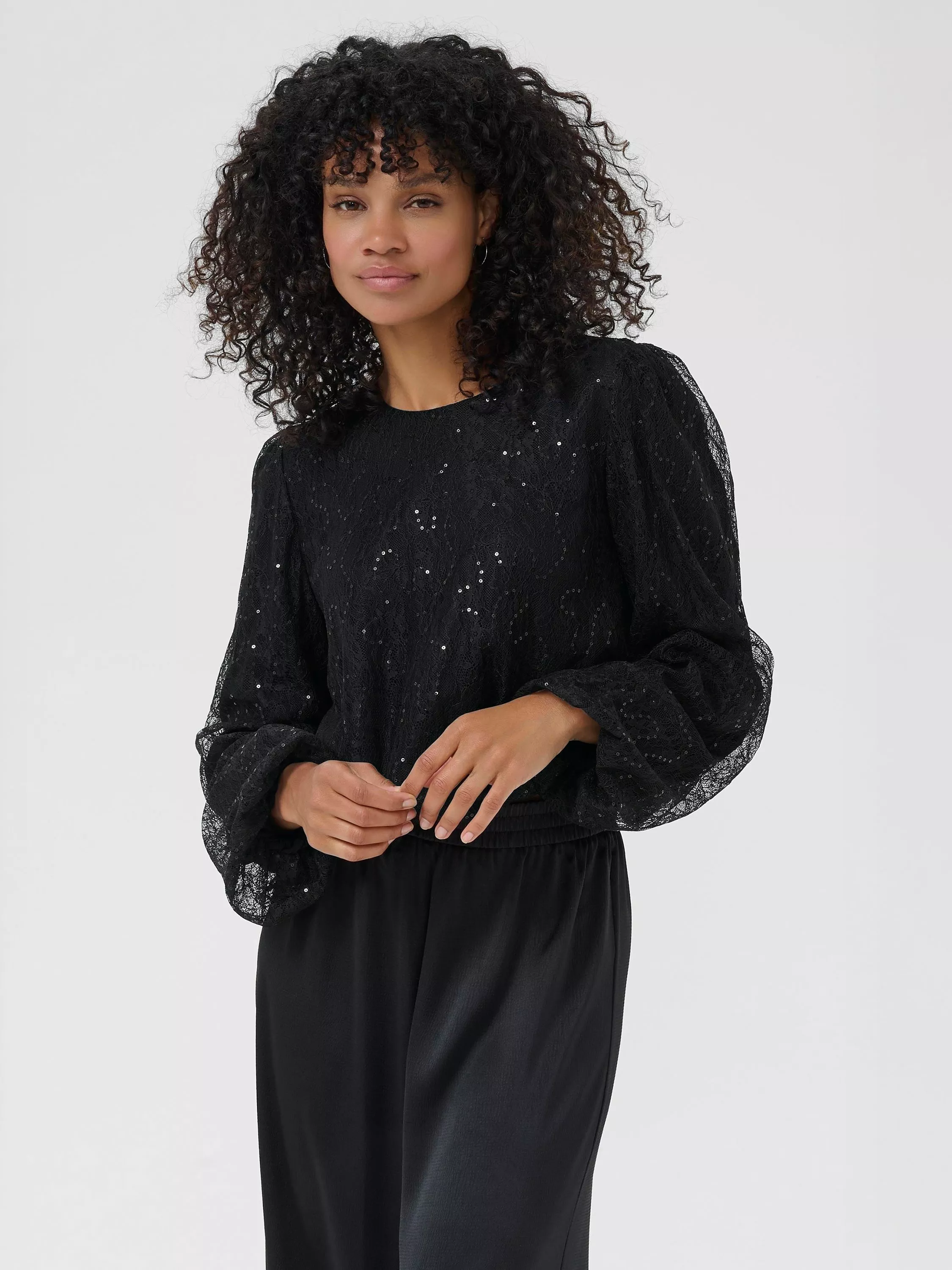 A blouse by KAFFE. Featuring a round neck and long puffy sleeves, it's designed in sparkly sequin lace. Your go-to for unforgettable party looks.