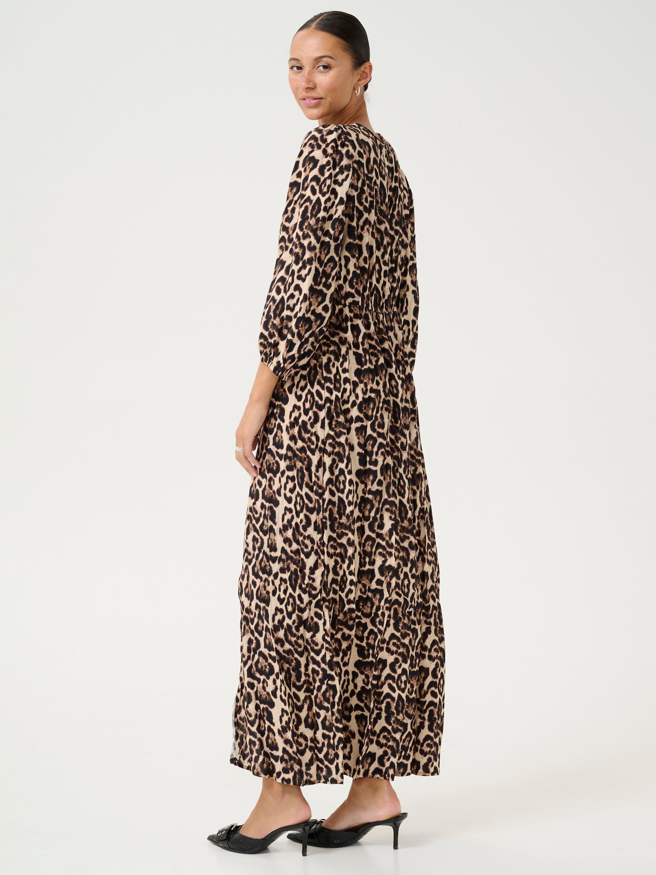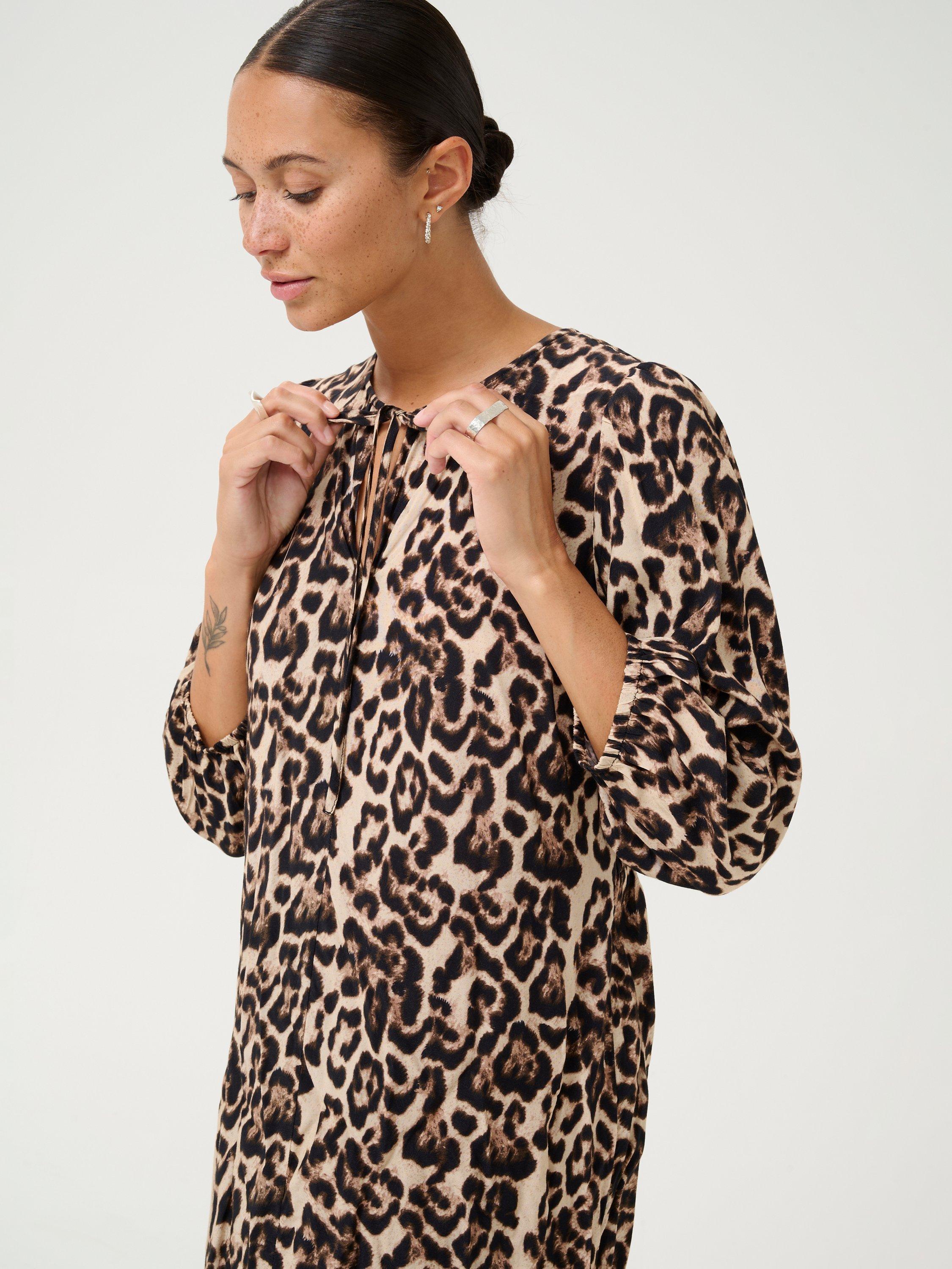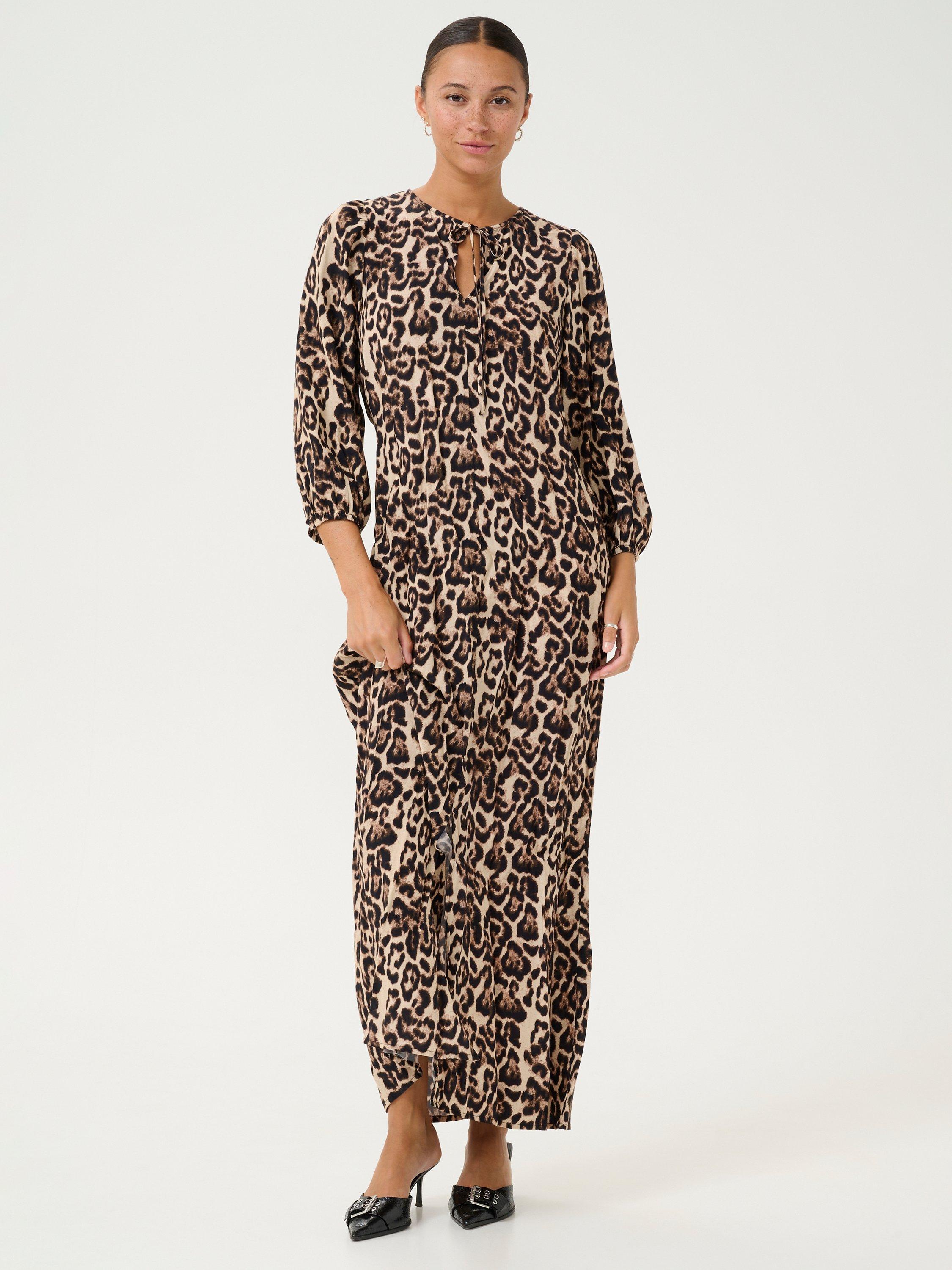 In a loose-fitting straight silhouette, this maxi dress from KAFFE is dreamt up from whisper-weight viscose. With a tie necklineand three quarter length sleeves, it is cloaked in leopard print.
