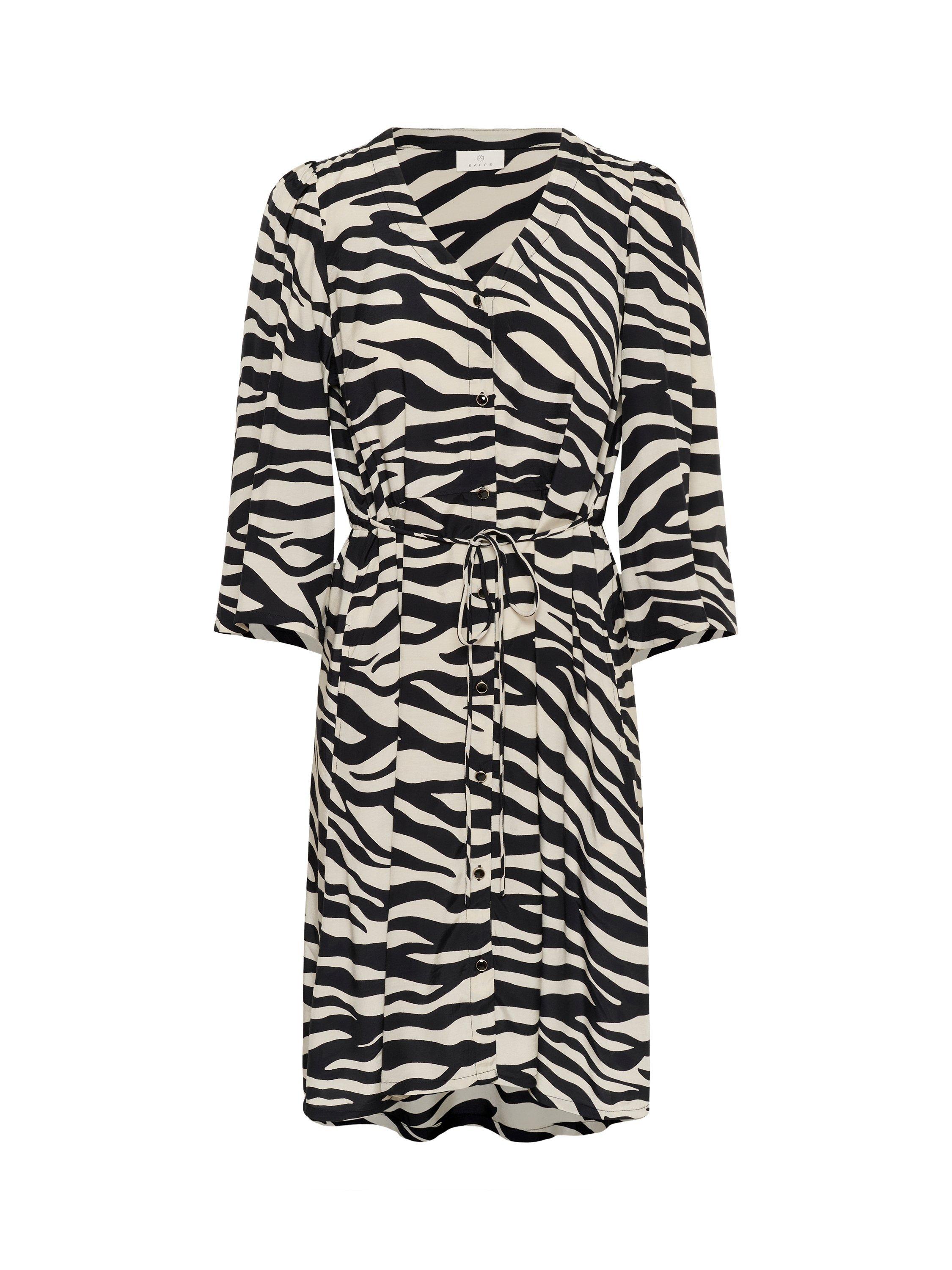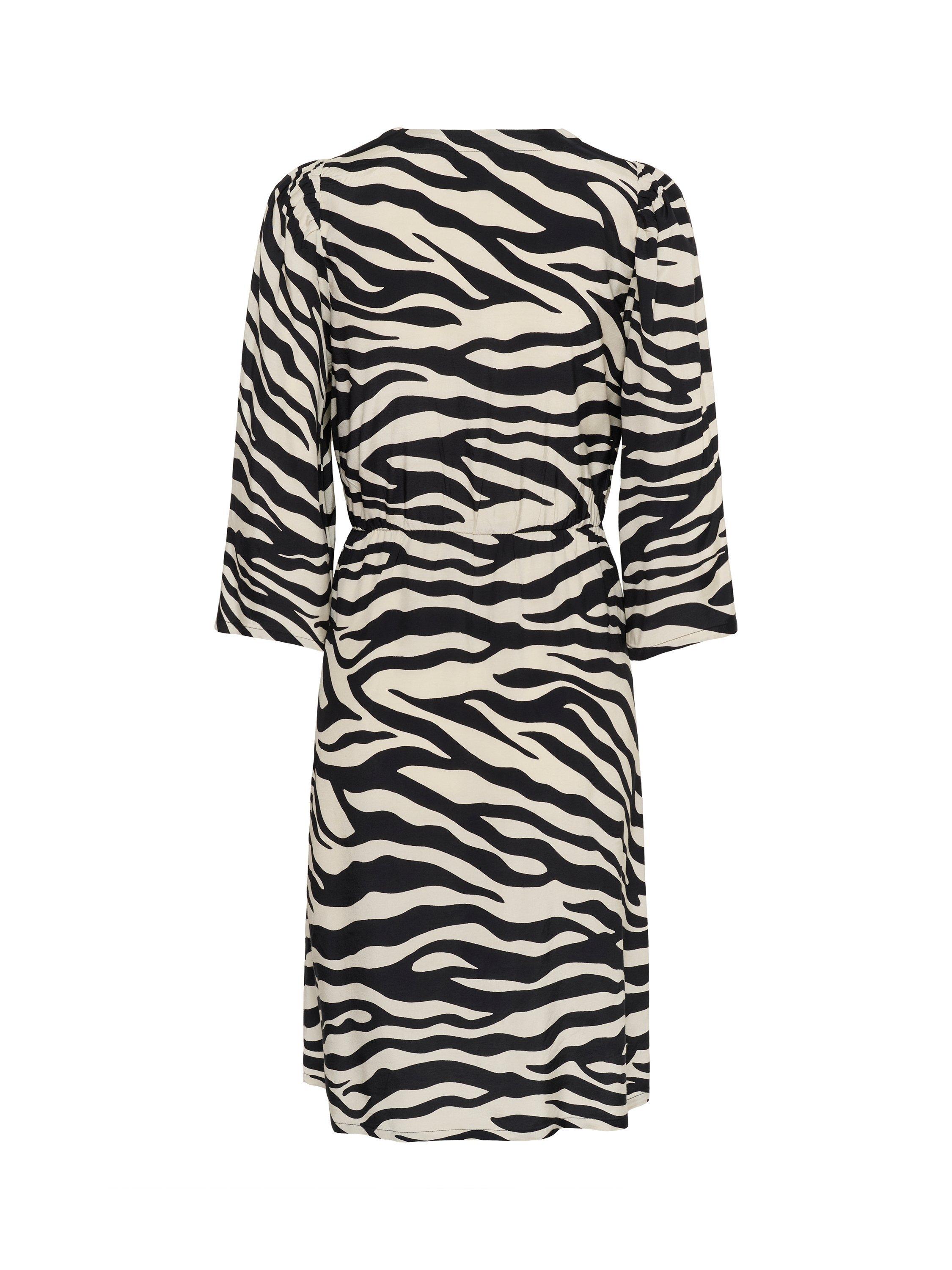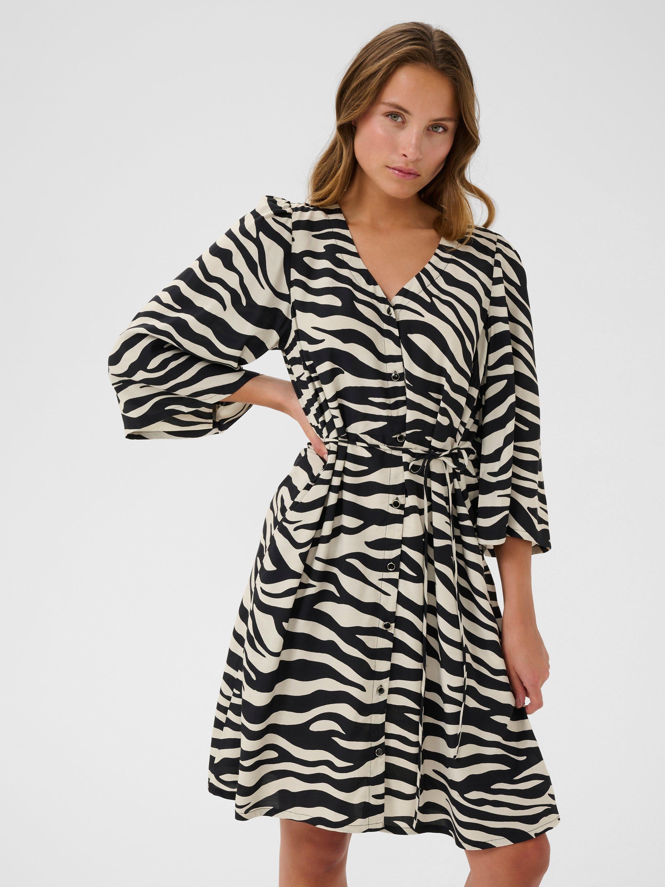 In an easy to wear A-line shape, this mini dress from KAFFE is crafted from an airy viscose blend. Effortlessly flattering thanks to a fuss-free v-neckline and three quarter length sleeves, it receives a loud update with its bold zebra print.