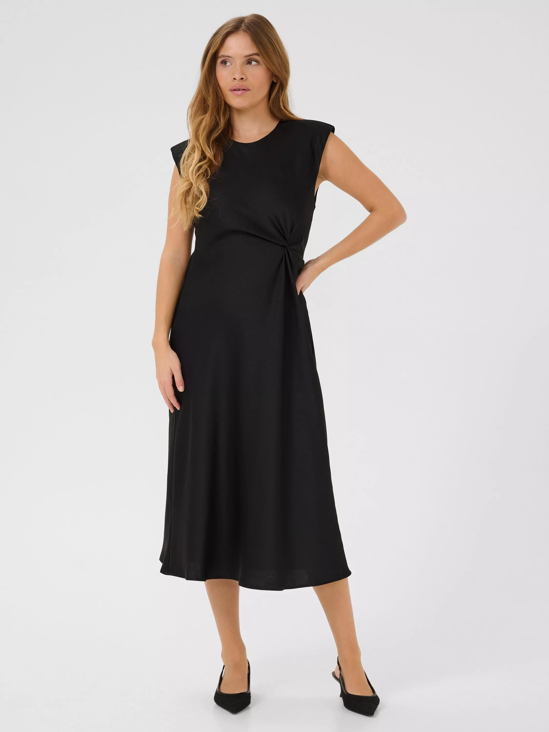 In an easy to wear A-line shape, this fitted midi dress from KAFFE is made from a lightweight and soft satin fabric with subtle twist front detailing. Defined with a conventional crew, this sleeveless style is kept trend-free so that it'll sit in your closet for years to come.
