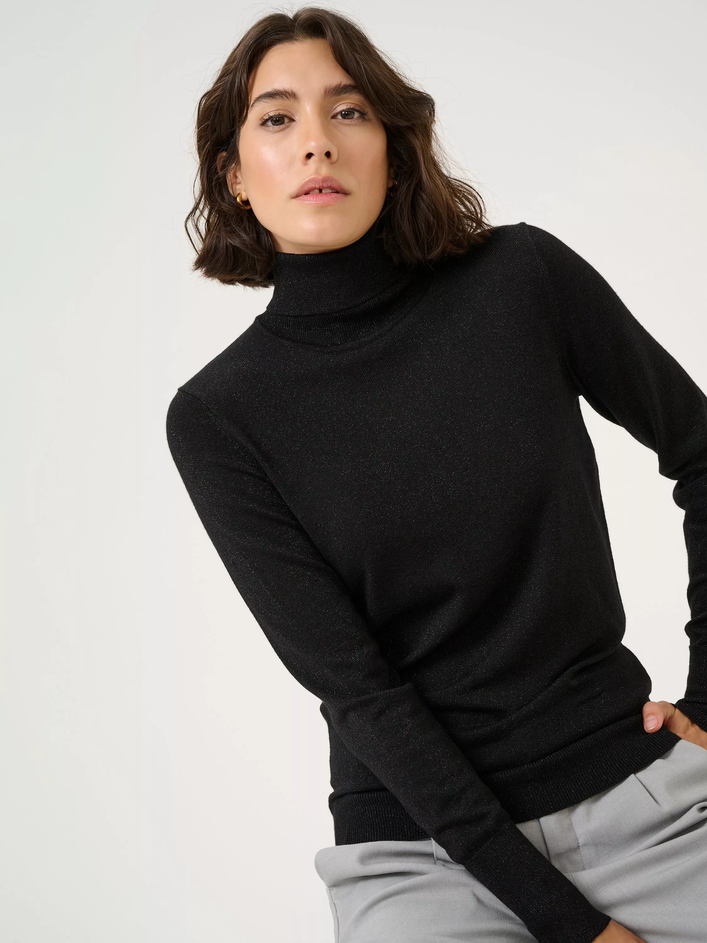 Wrap yourself in the indulgent luxury of the Regina Roll Neck Pullover. Crafted from a metallic knit blend, it's the perfect blend of comfort and glam for your casual to evening wear.
