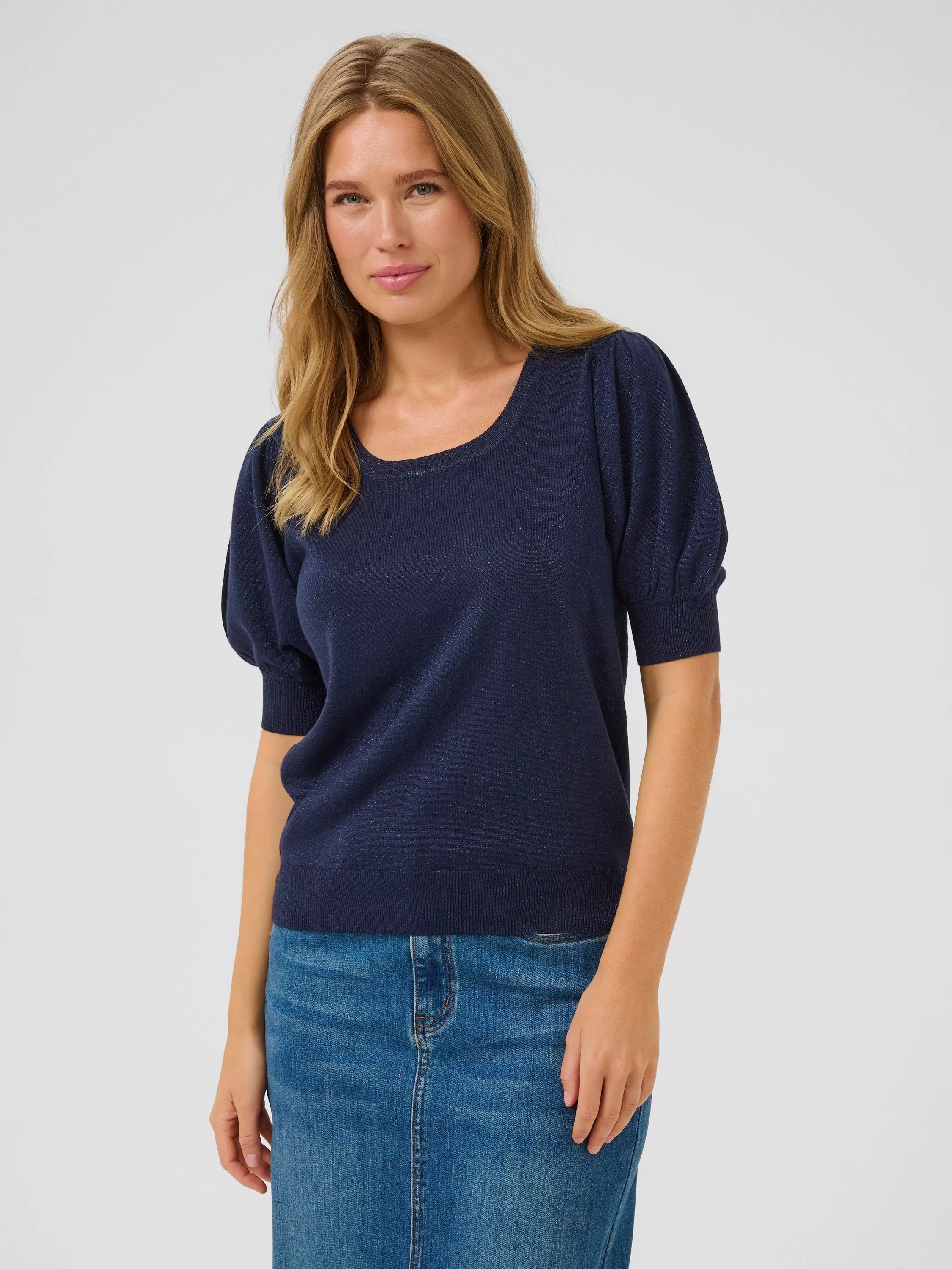 Free and easy with a scooped neckline and short sleeves, this mid-weight jumper from KAFFE makes for lightweight wear in a smooth fabric.