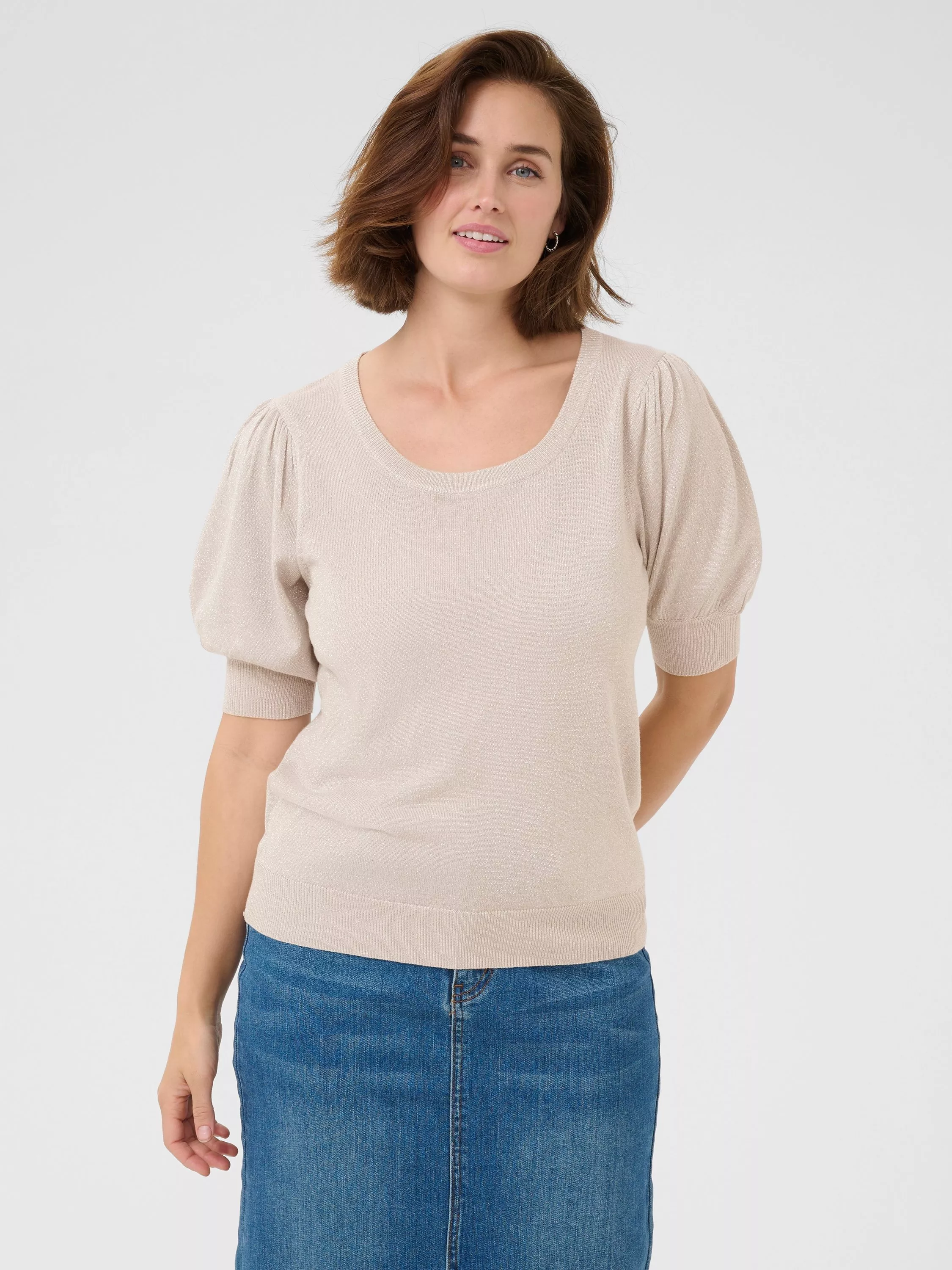 Free and easy with a scooped neckline and short sleeves, this mid-weight jumper from KAFFE makes for lightweight wear in a smooth fabric.