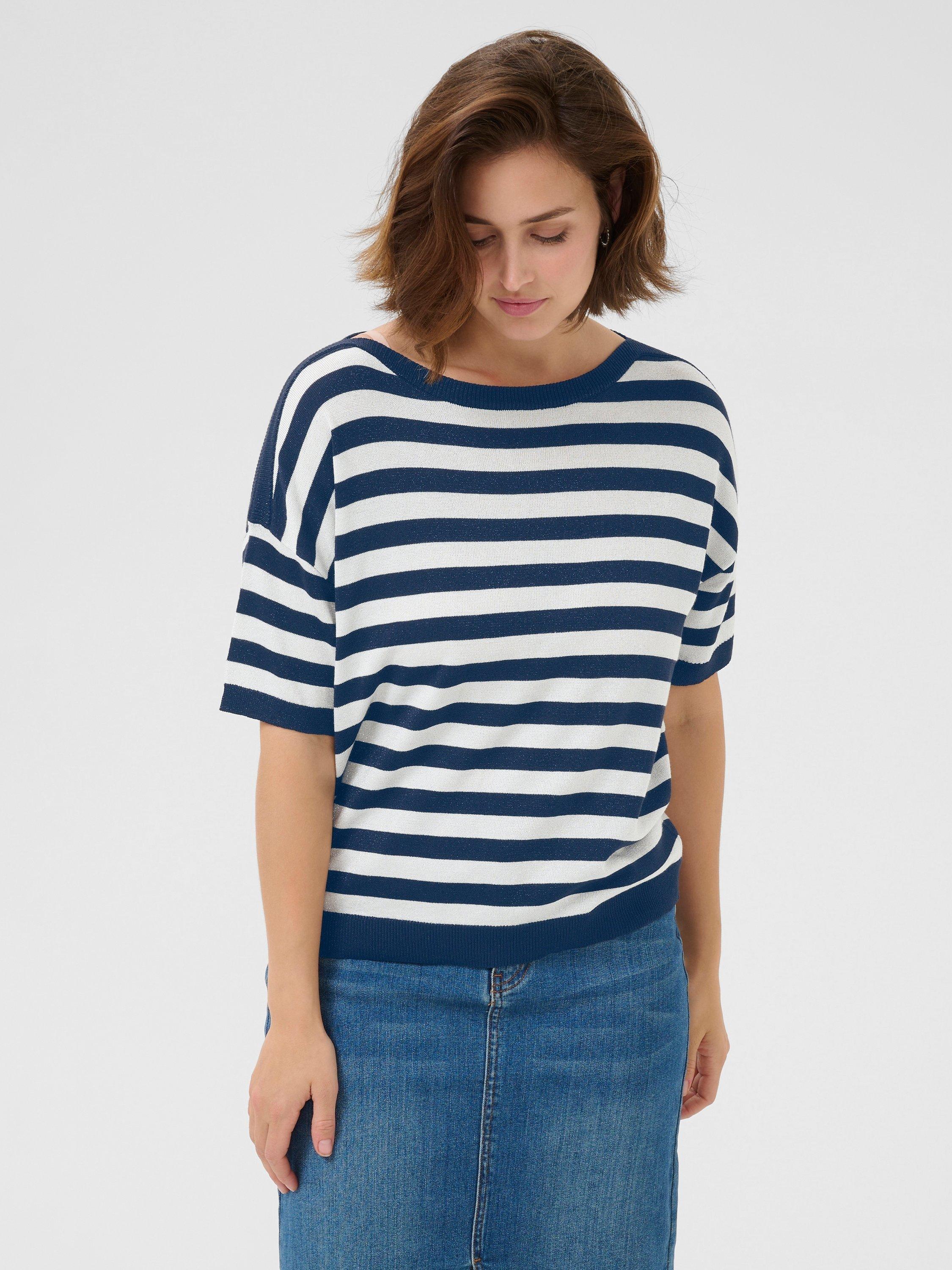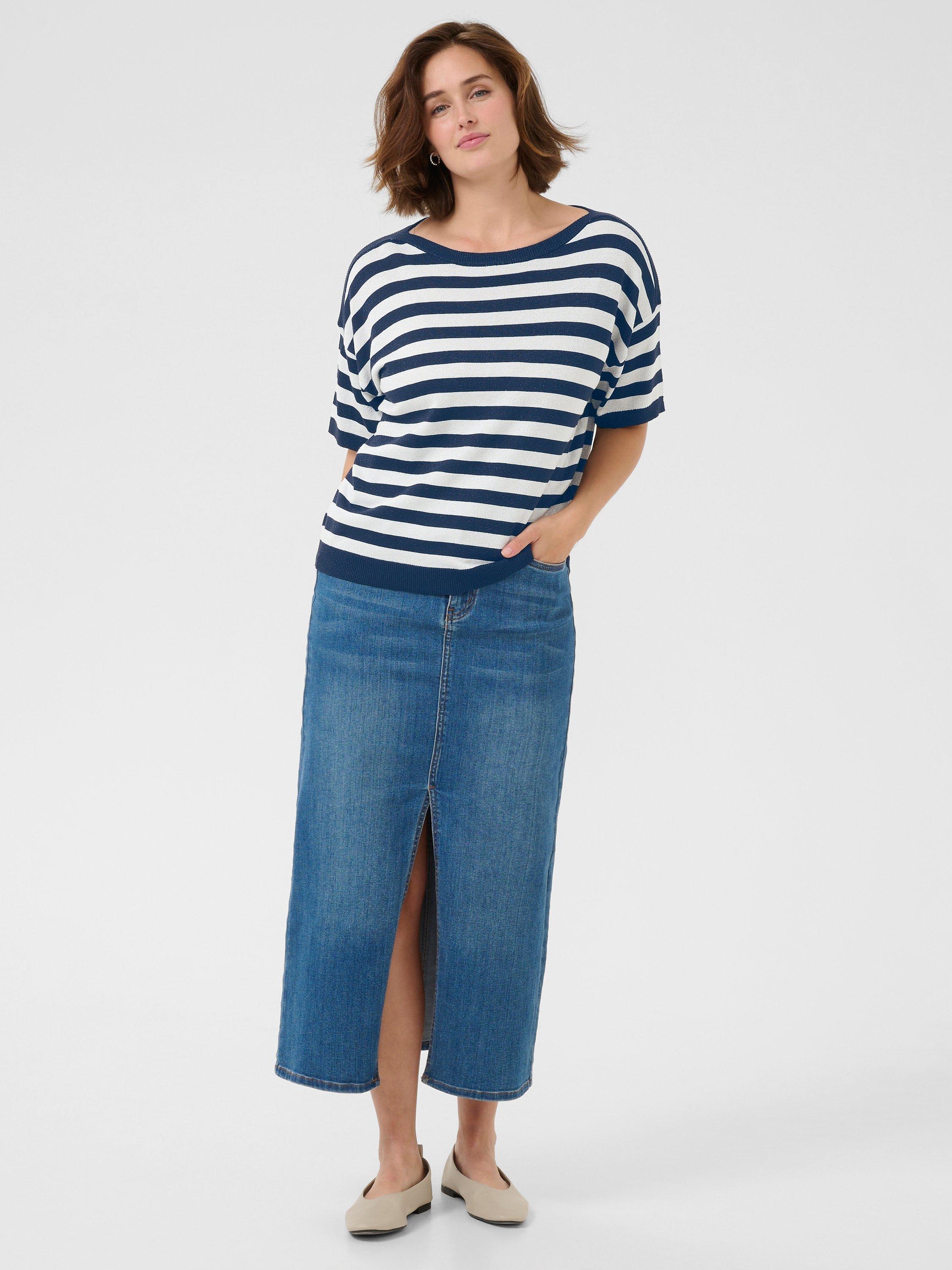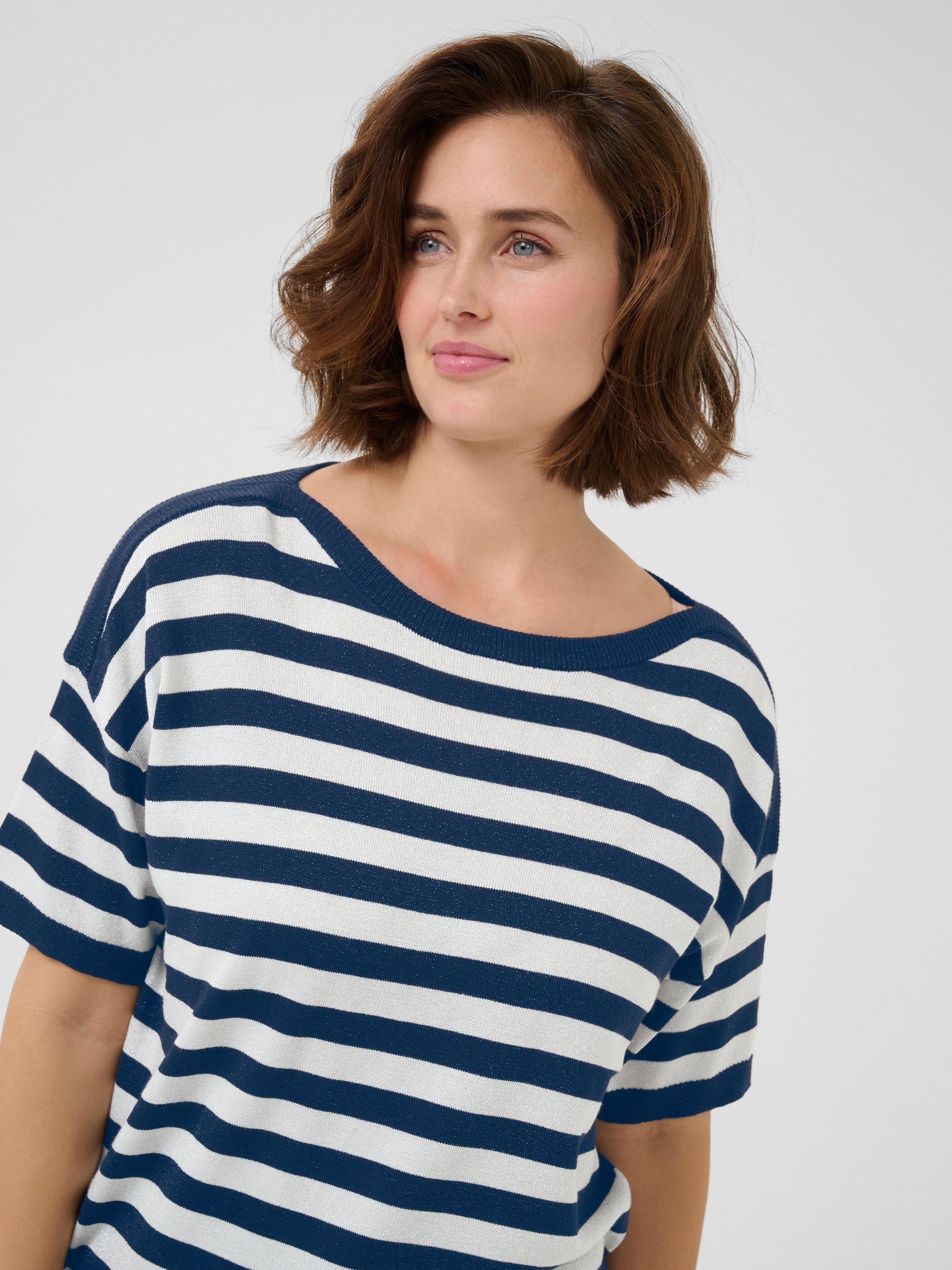 Fusing function and style with a wide slash neckline and short sleeves, this mid-weight stripe jumper from KAFFE is a go-to as the temperature cools.