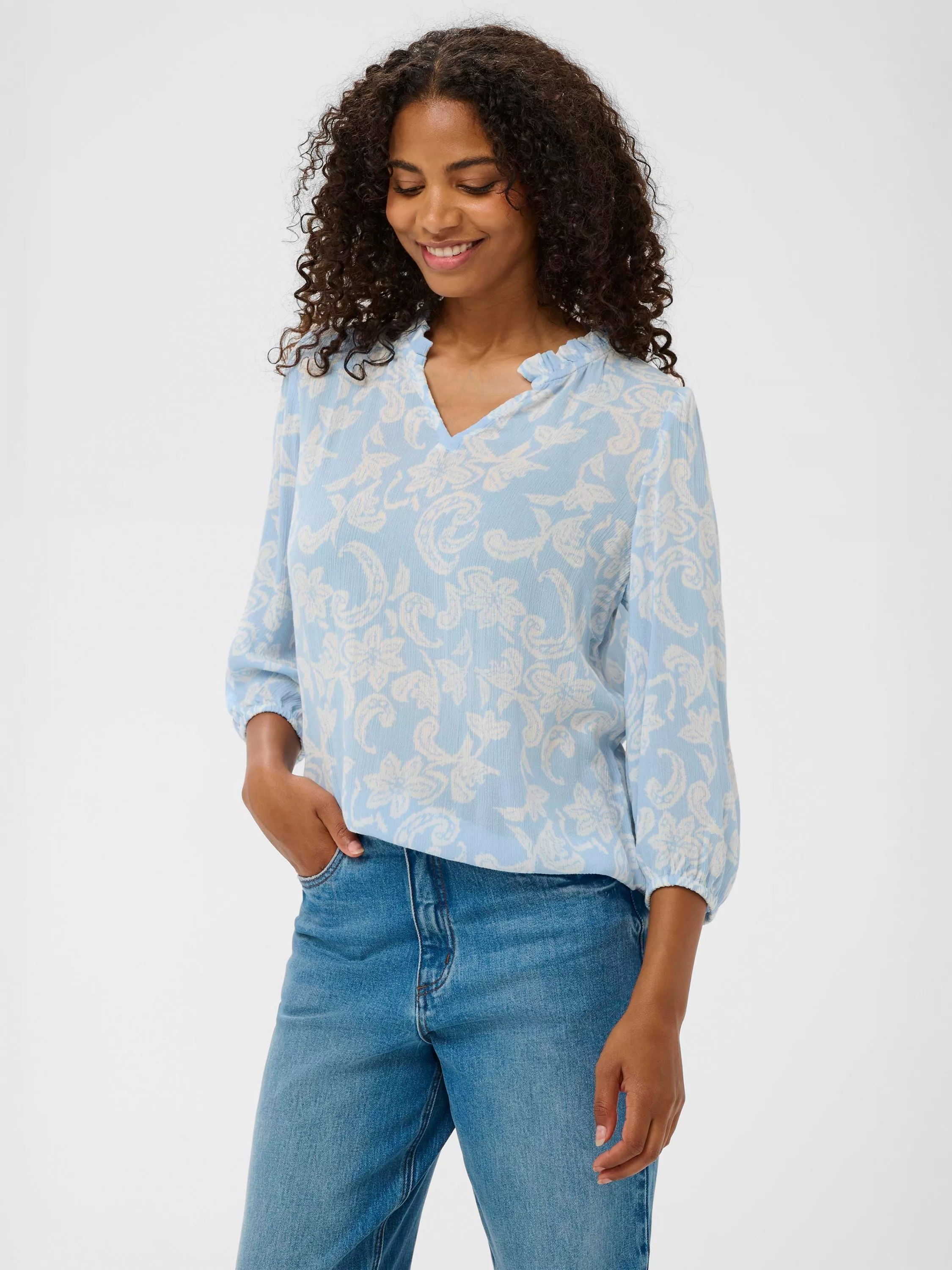 Elevate your style with the Riani Blouse, featuring delicate paisley prints and a flowy silhouette perfect for any occasion.