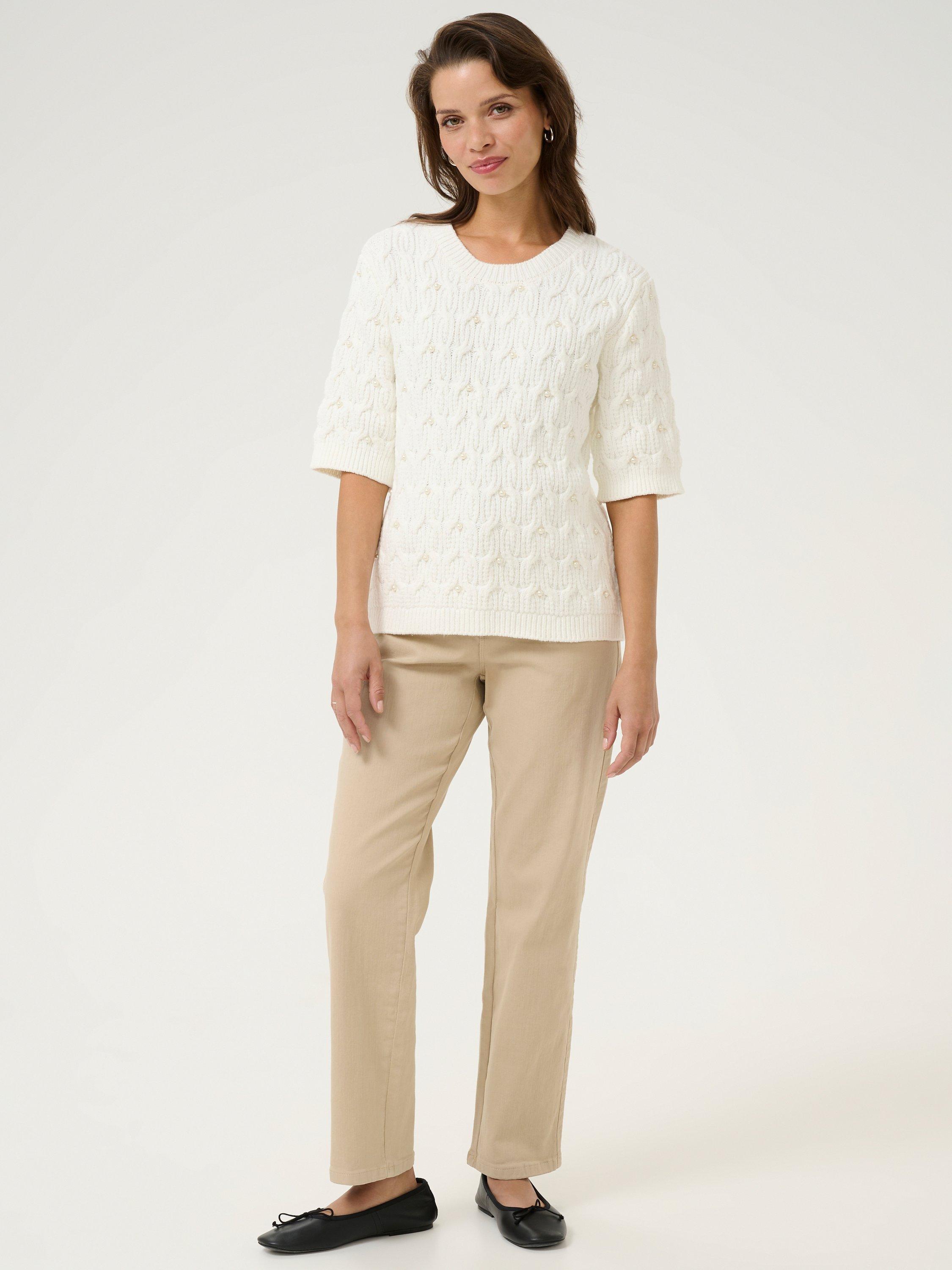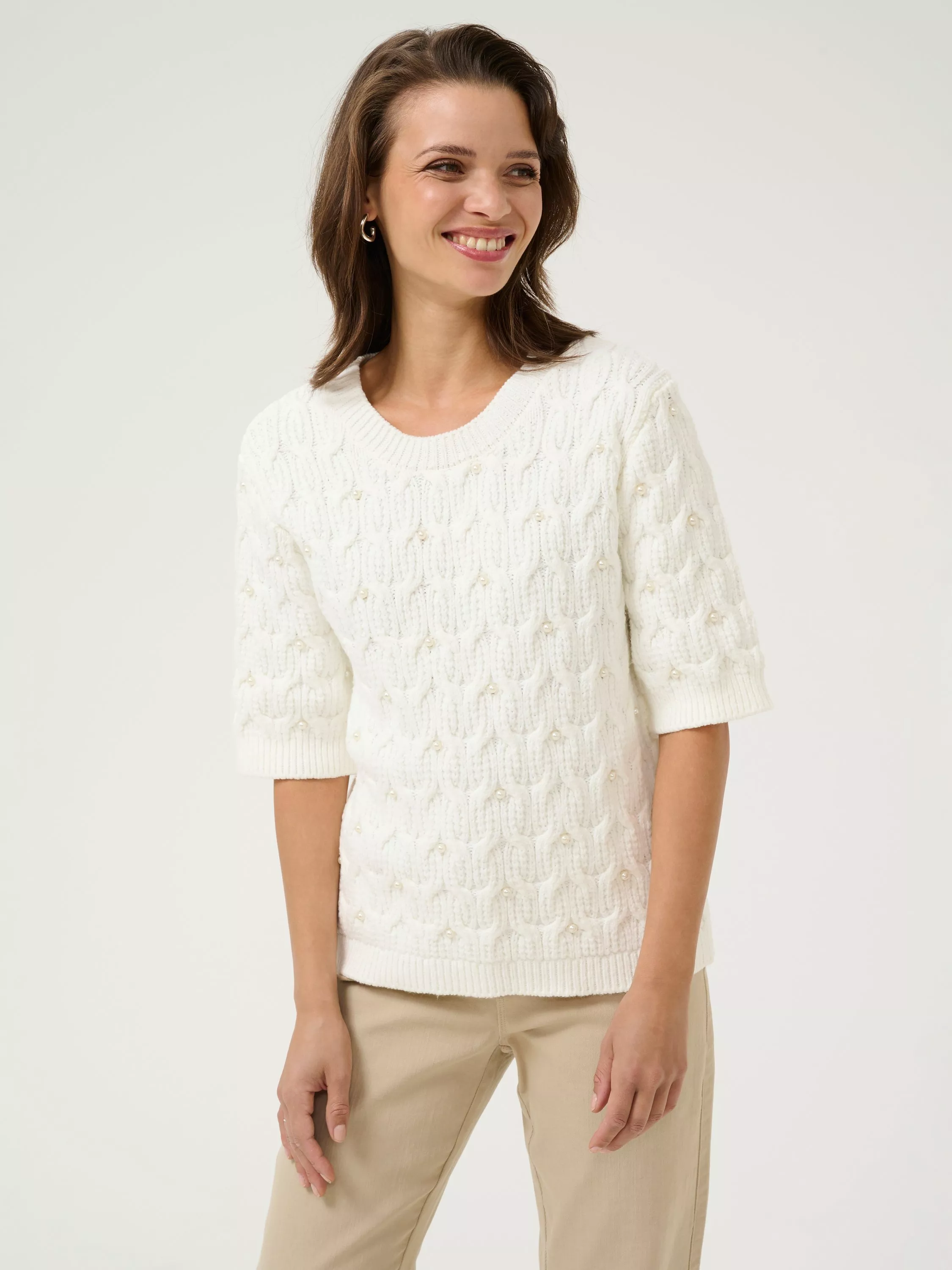 Layering up with a round neckline and short sleeves, this chunky jumper by KAFFE is blended with cotton to enhance breathability.
