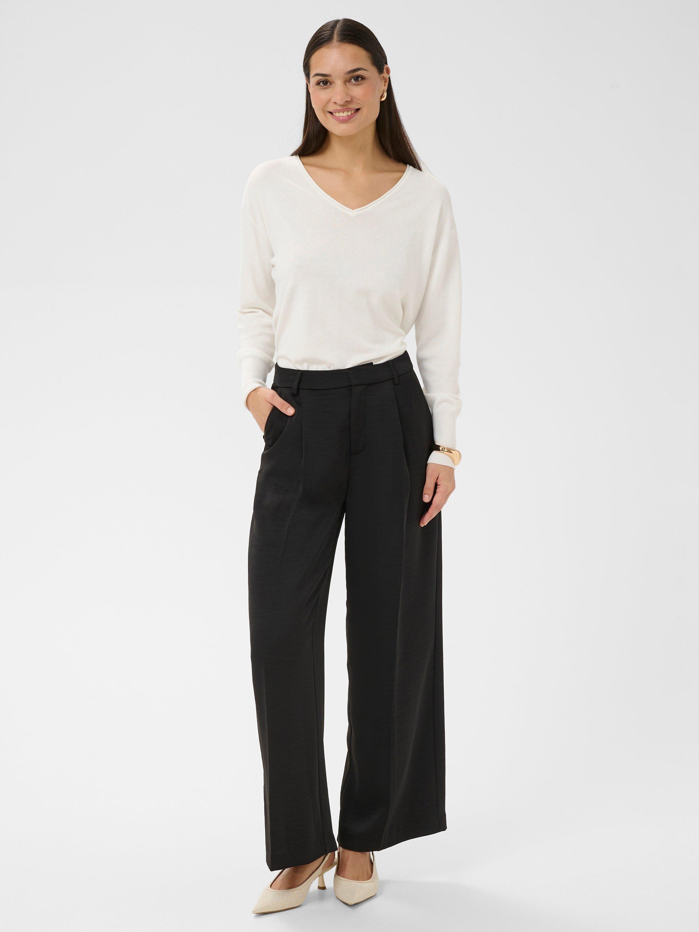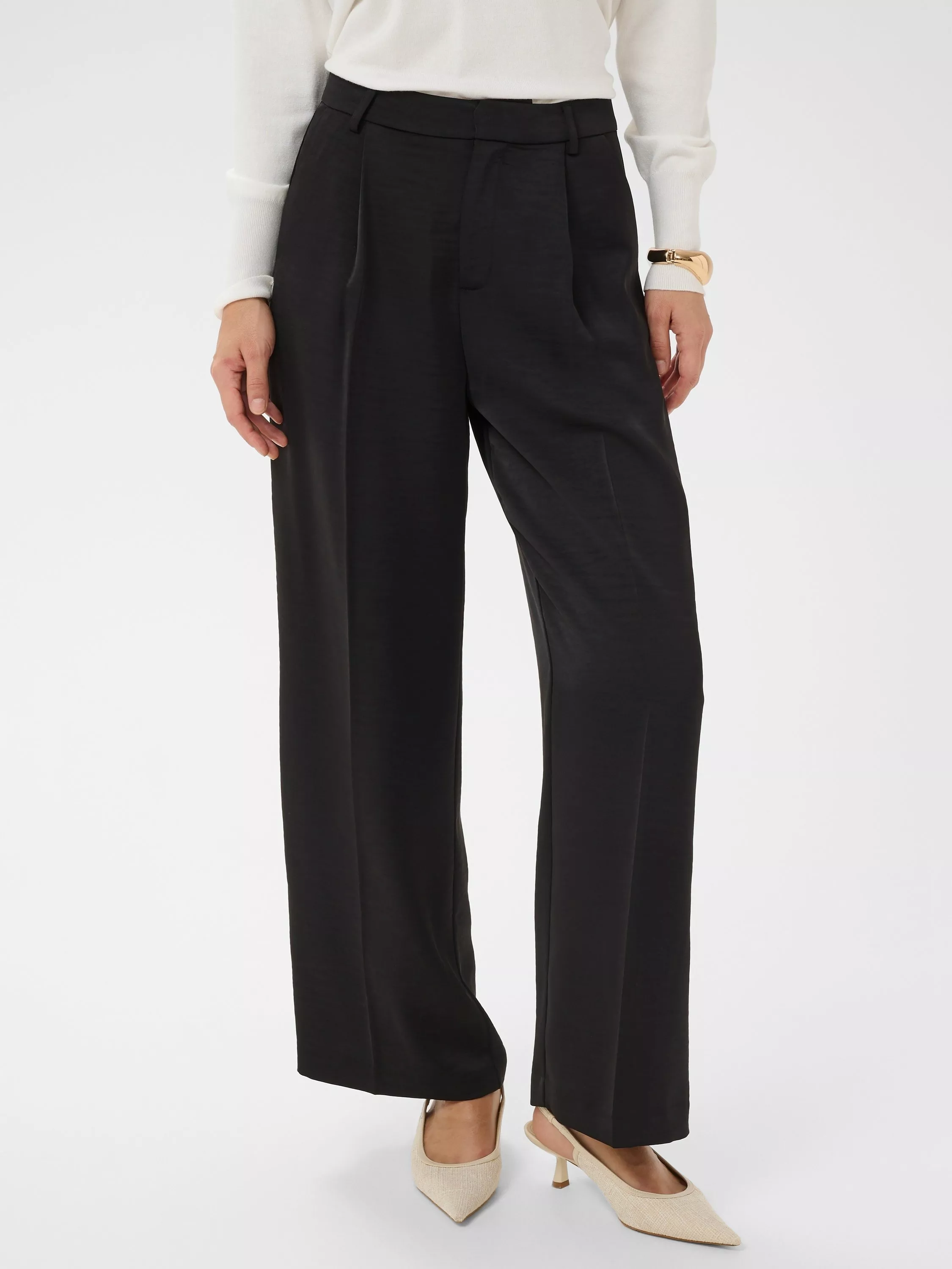 A pair of pleated wide-leg trousers by KAFFE, featuring a mid rise with a zip fly and regular length hems.