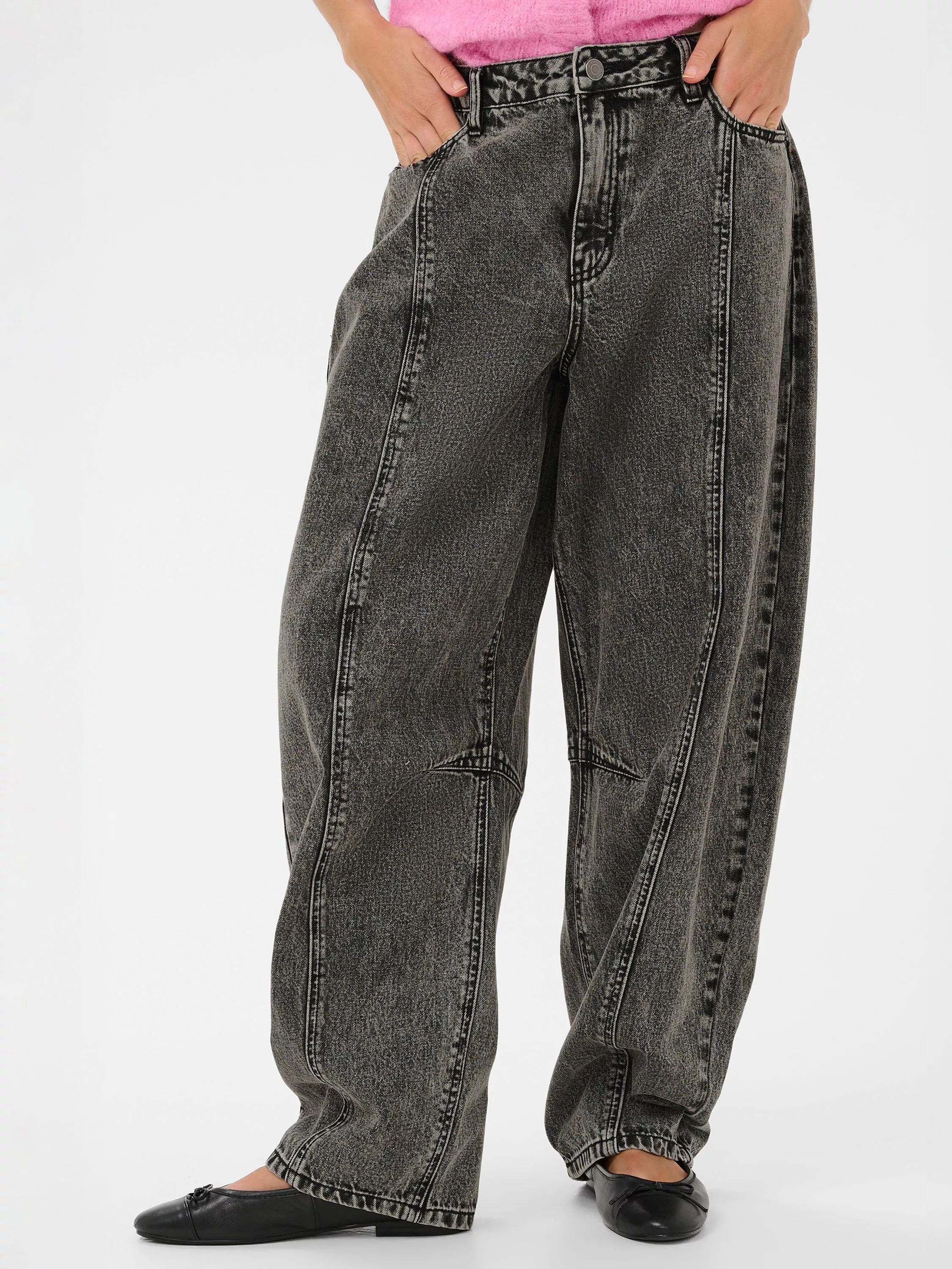 KAFFERoss Barrel Leg Jeans, Dark Grey Wash