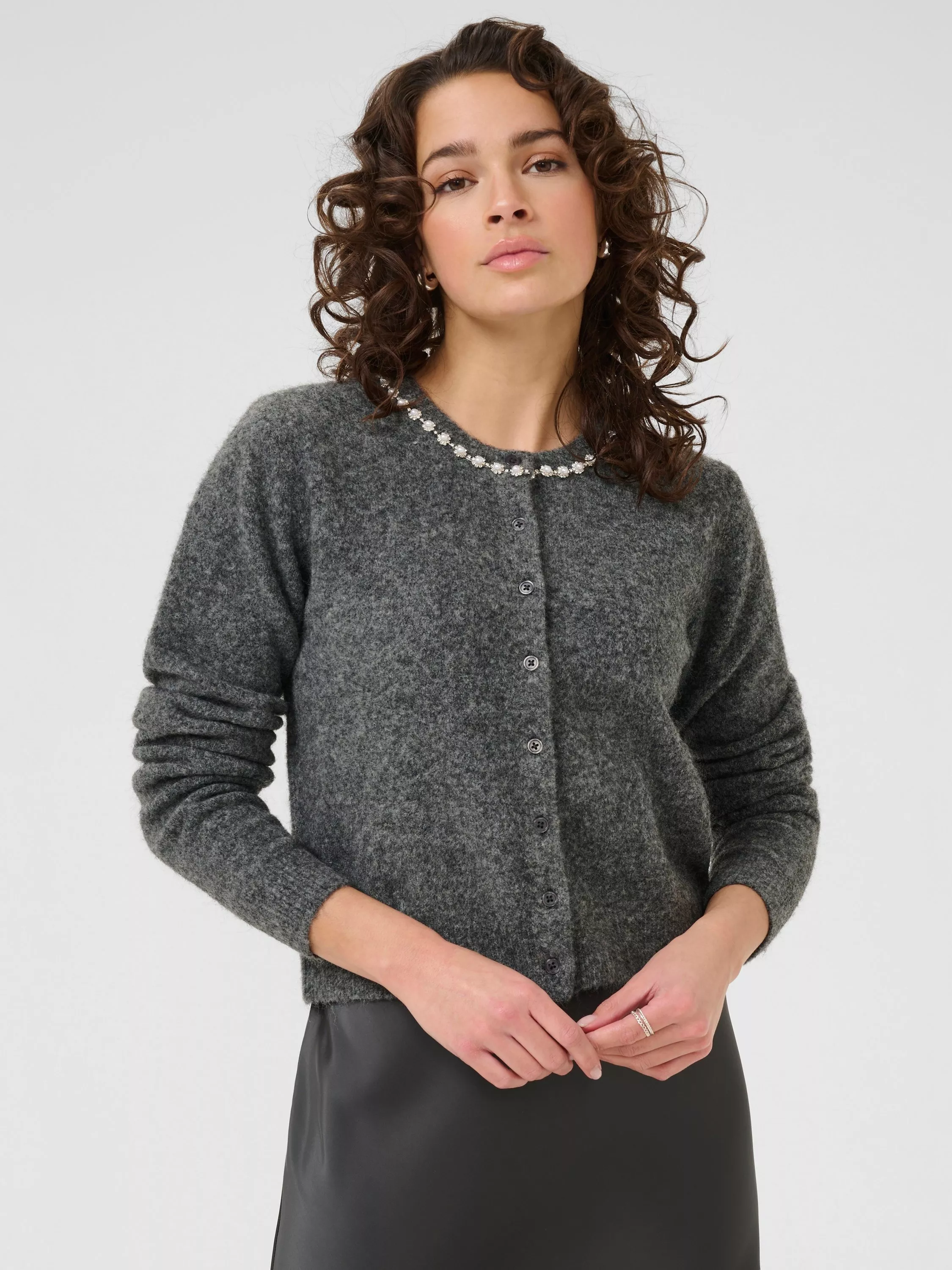 KAFFERoxy Embellished Neck Cardigan, Mid Grey