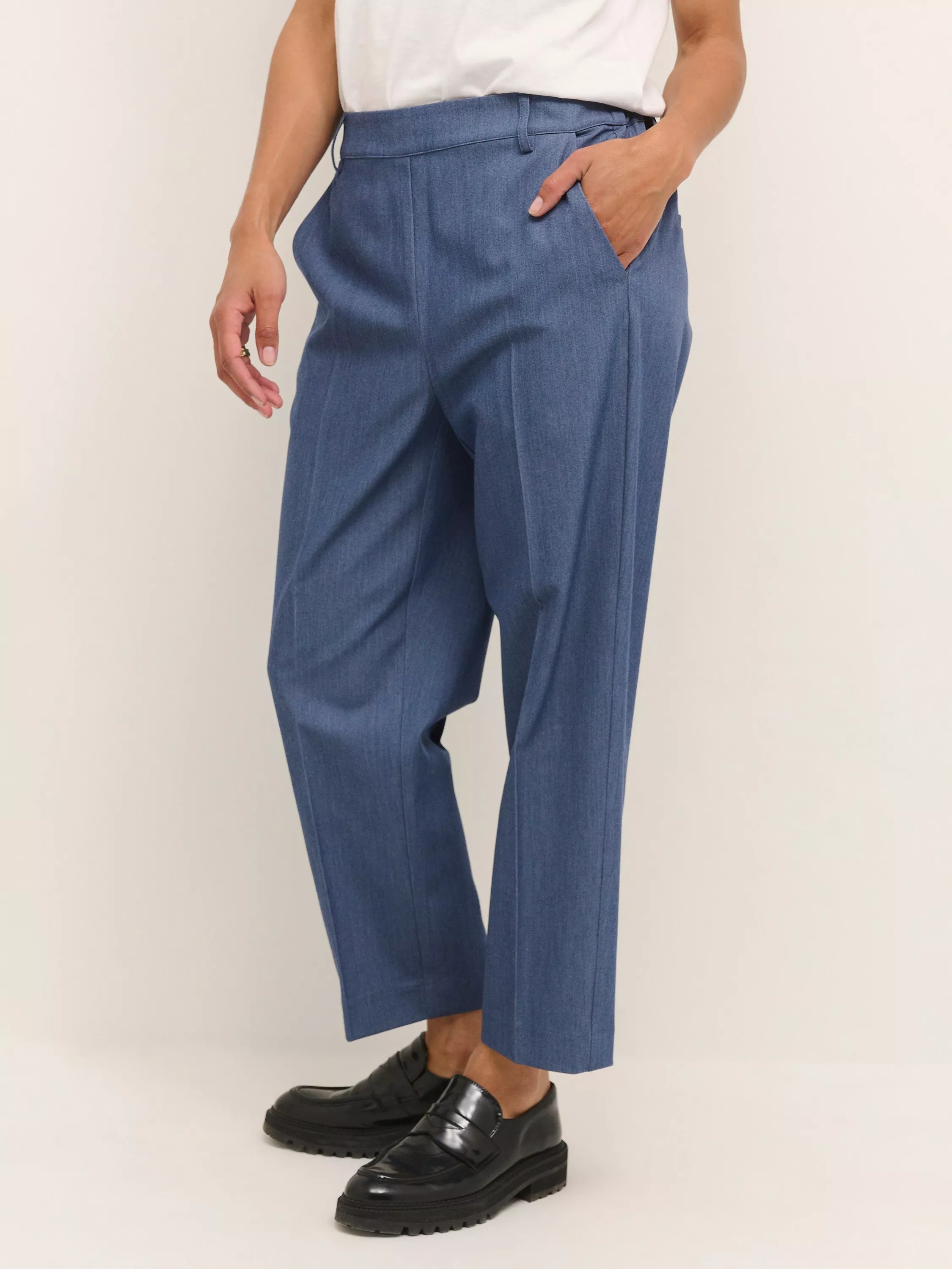 Cut straight for an on-trend silhouette, these mid rise casual trousers by KAFFE are made from a soft yet robust blend and are cropped at the ankles for an on-trend finish.