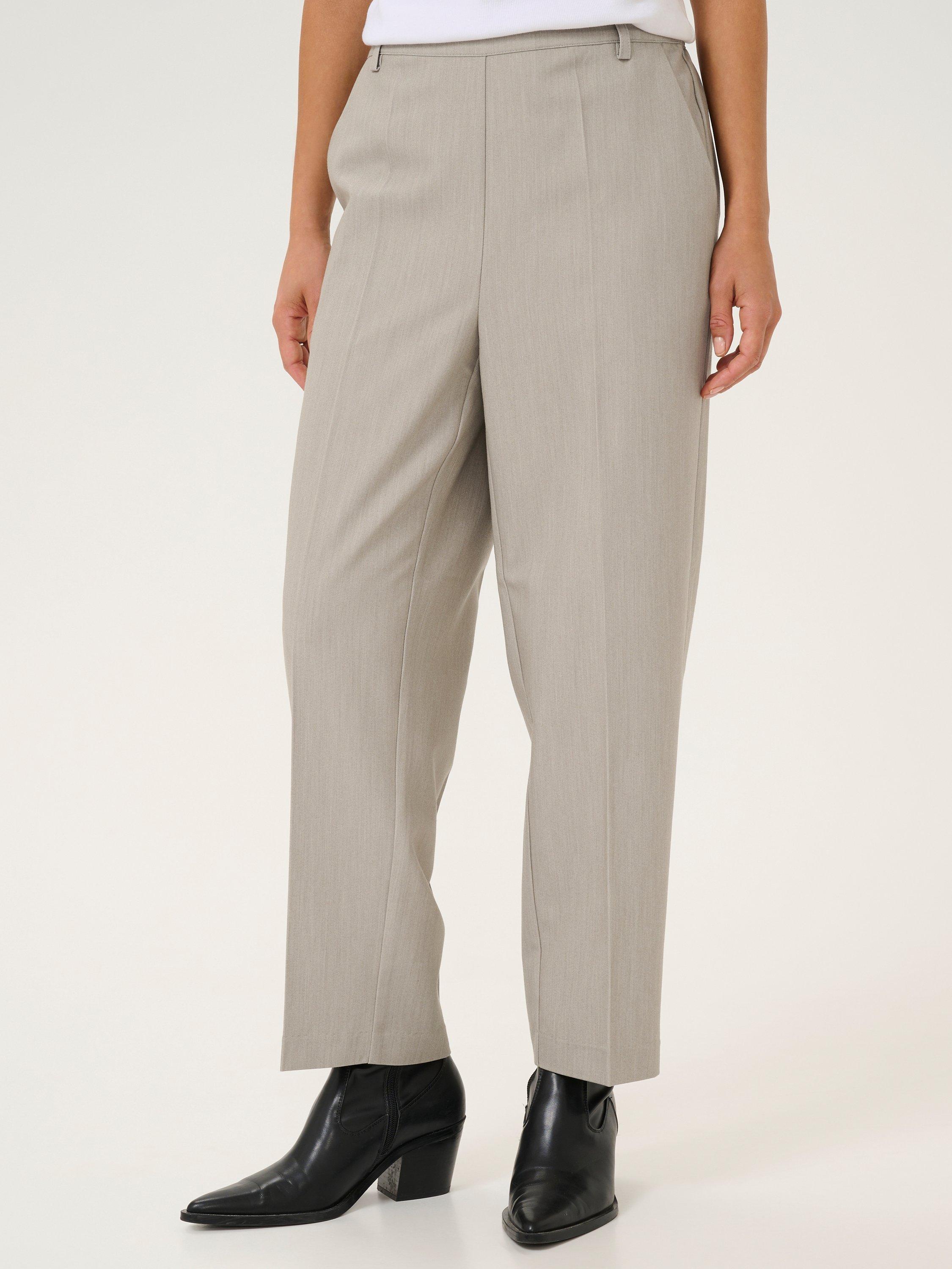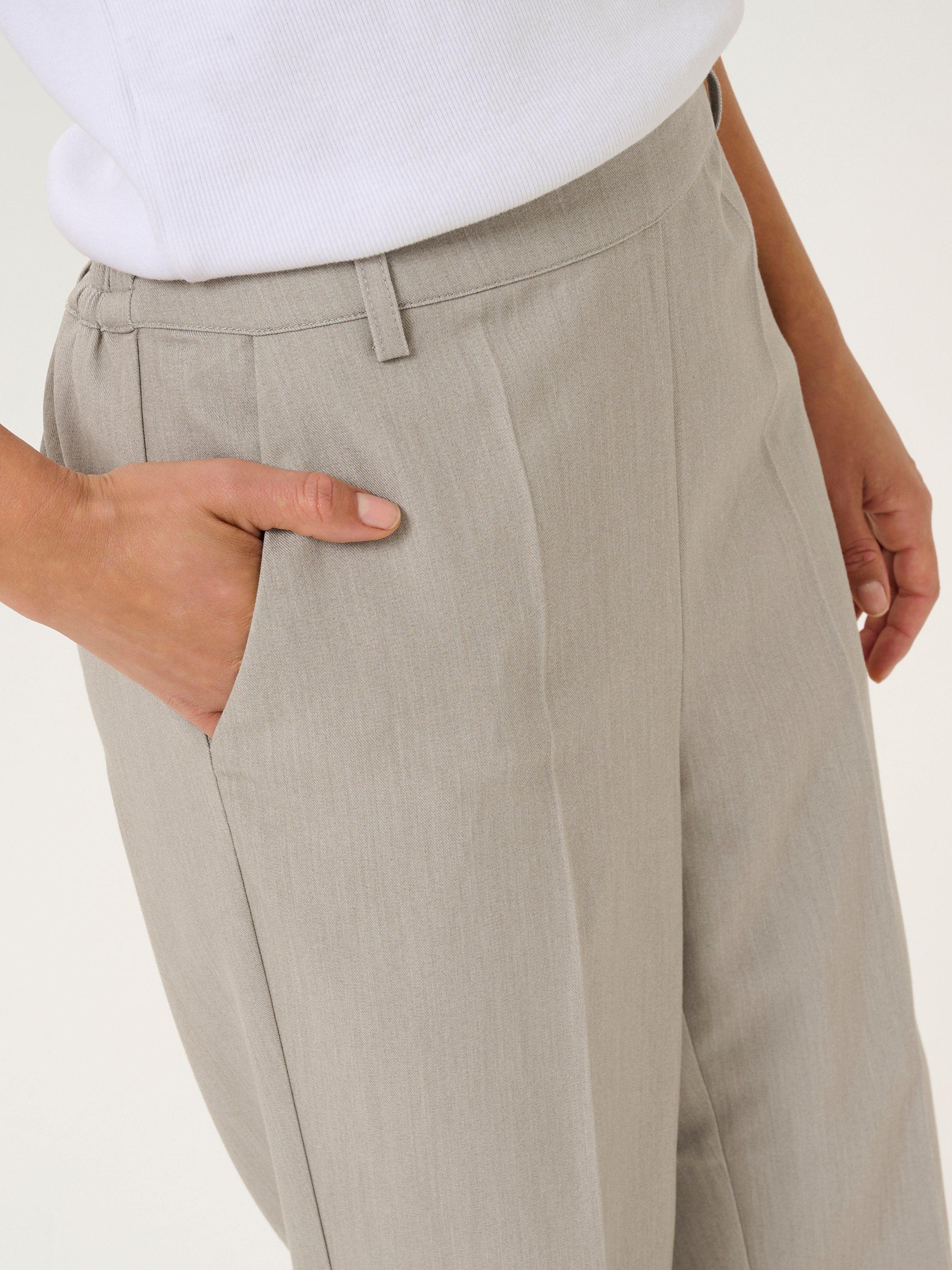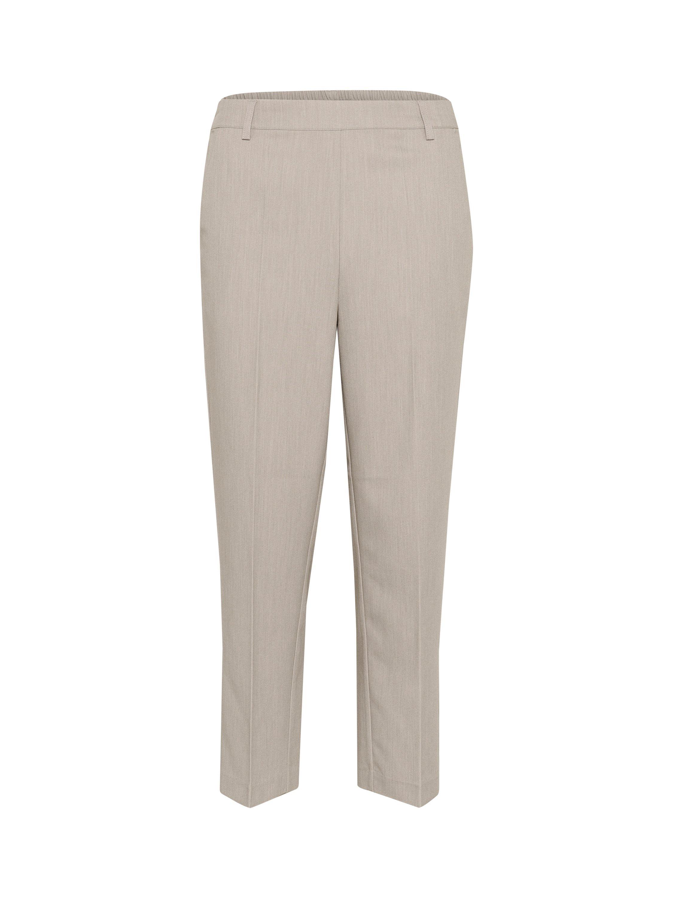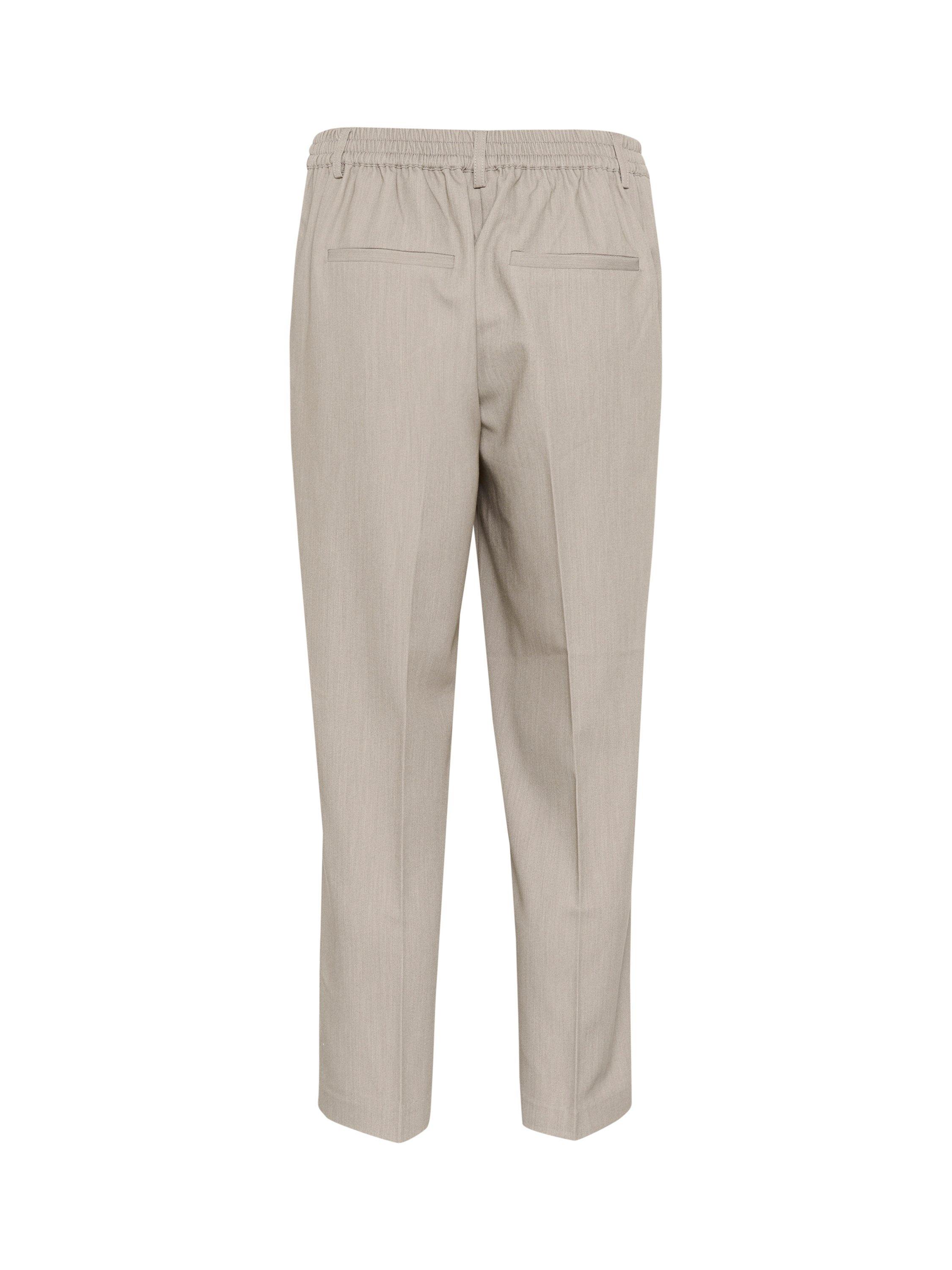 The sakura trousers are a casual and comfortable pair of suit pants. They have an elastic waistband with ruchings at the back and a straight waistband at the front. They are cropped right below the calves and have a regular fit. The trousers have seamed side pockets and welted back pockets.