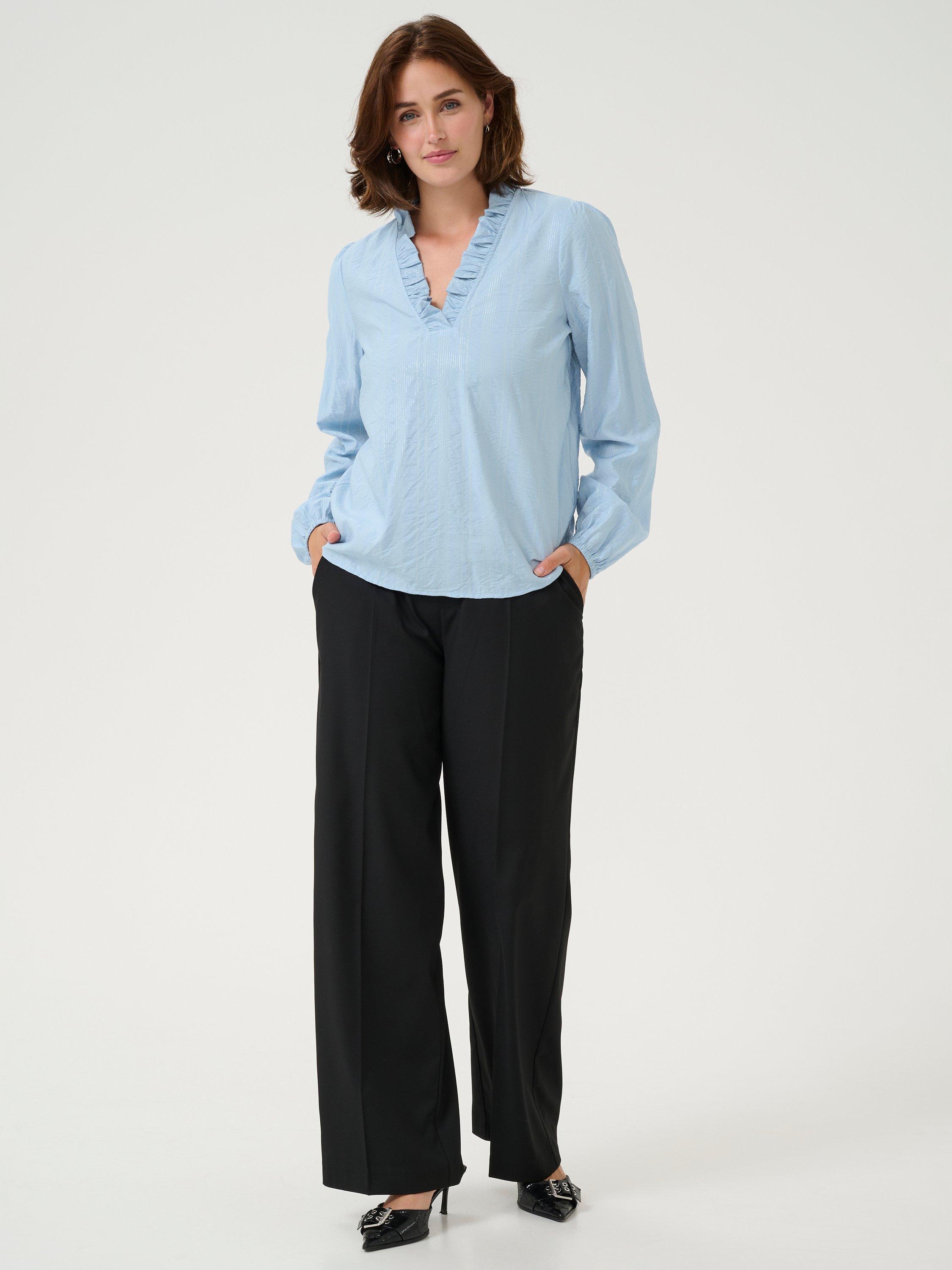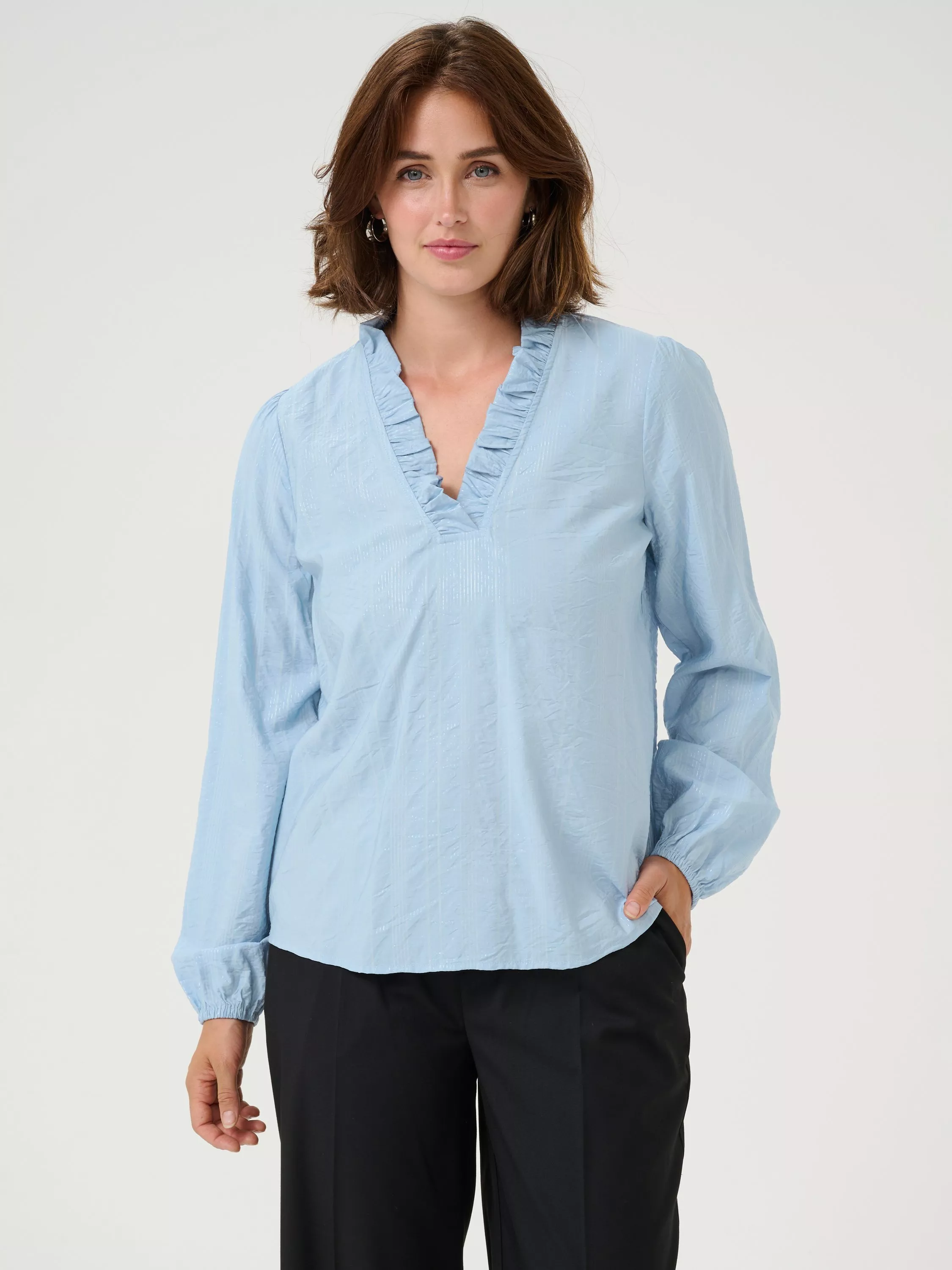 Designed with frilly details, this blouse from KAFFE is free-from-fuss for timeless appeal. Framed with a classic v-neckline and long sleeves, it is made from a soft viscose blend.