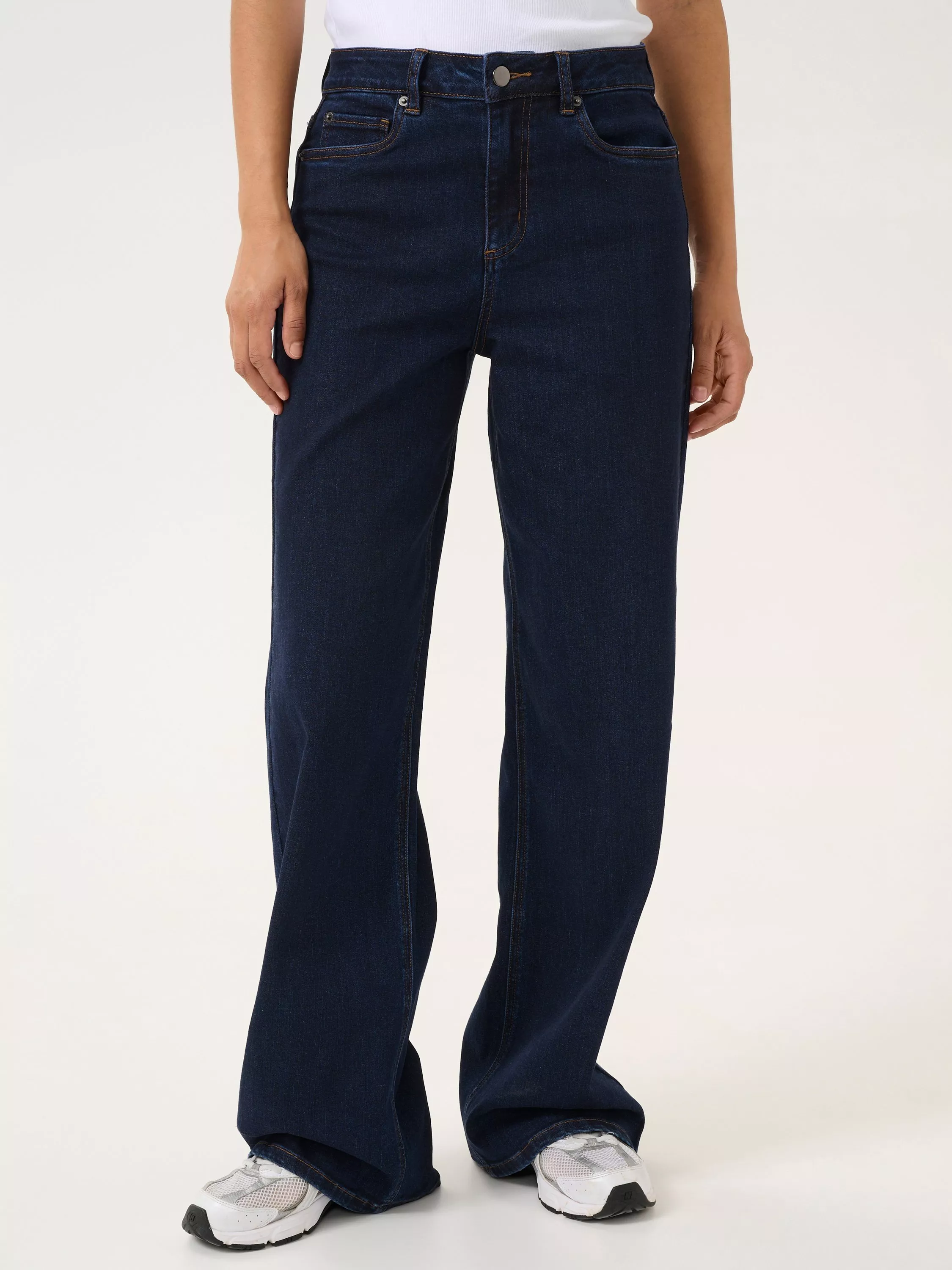 The sinem jeans are a cool and classic pair of jeans with endless styling options. They are high-waisted with a regular waistband and zip and button fastening, and they have a regular fit. The legs are wide, and the jeans have rounded front pockets with a coin pocket and patch back pockets.