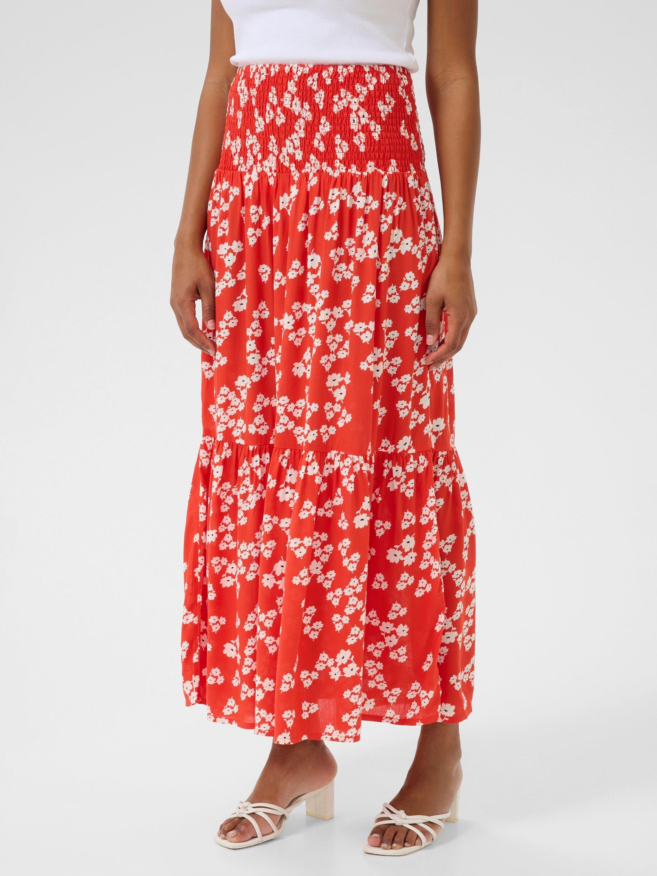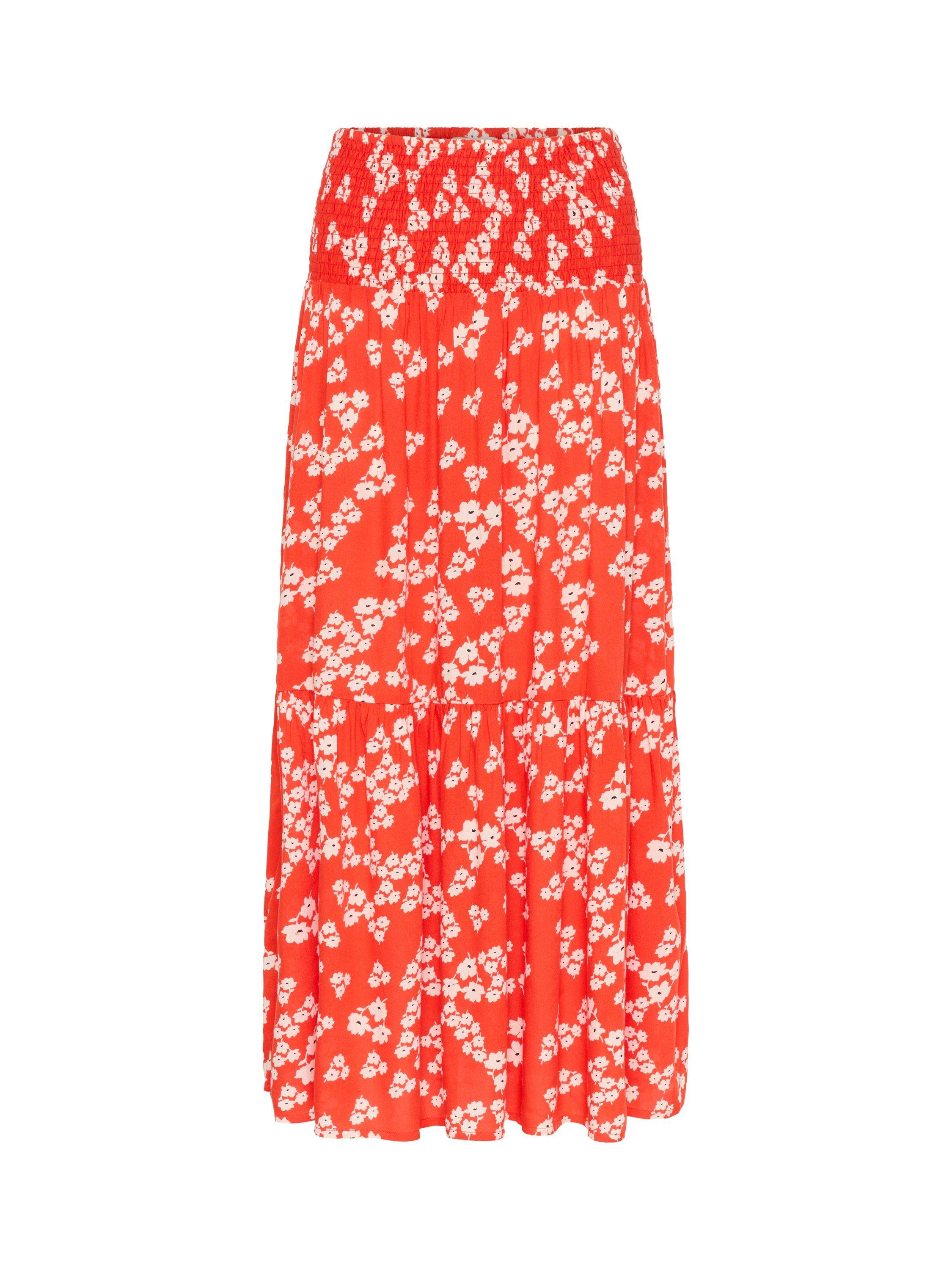 Framed with tiers that delicately cascade down your form, this A-line floor-length skirt from KAFFE is illustrated with forever covetable blooms.