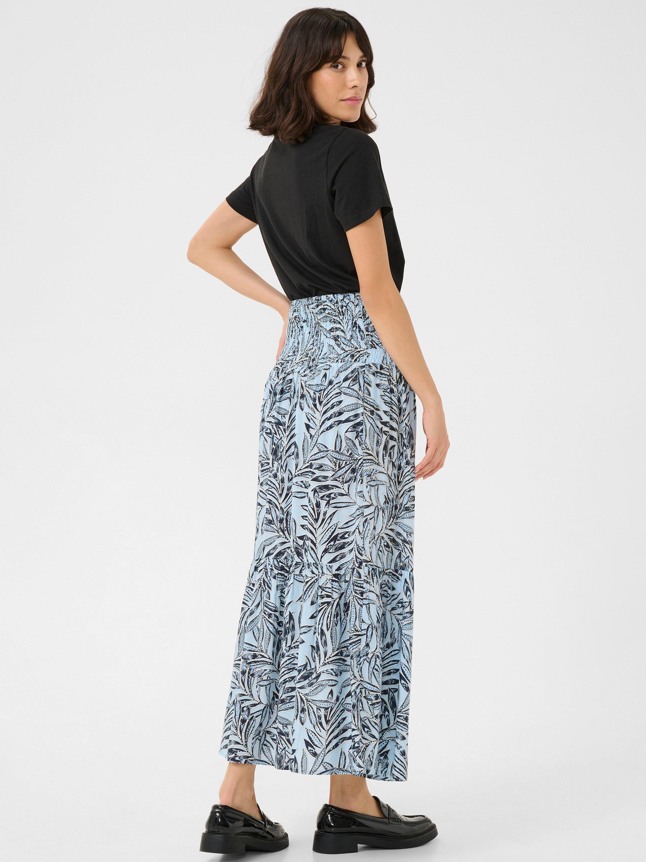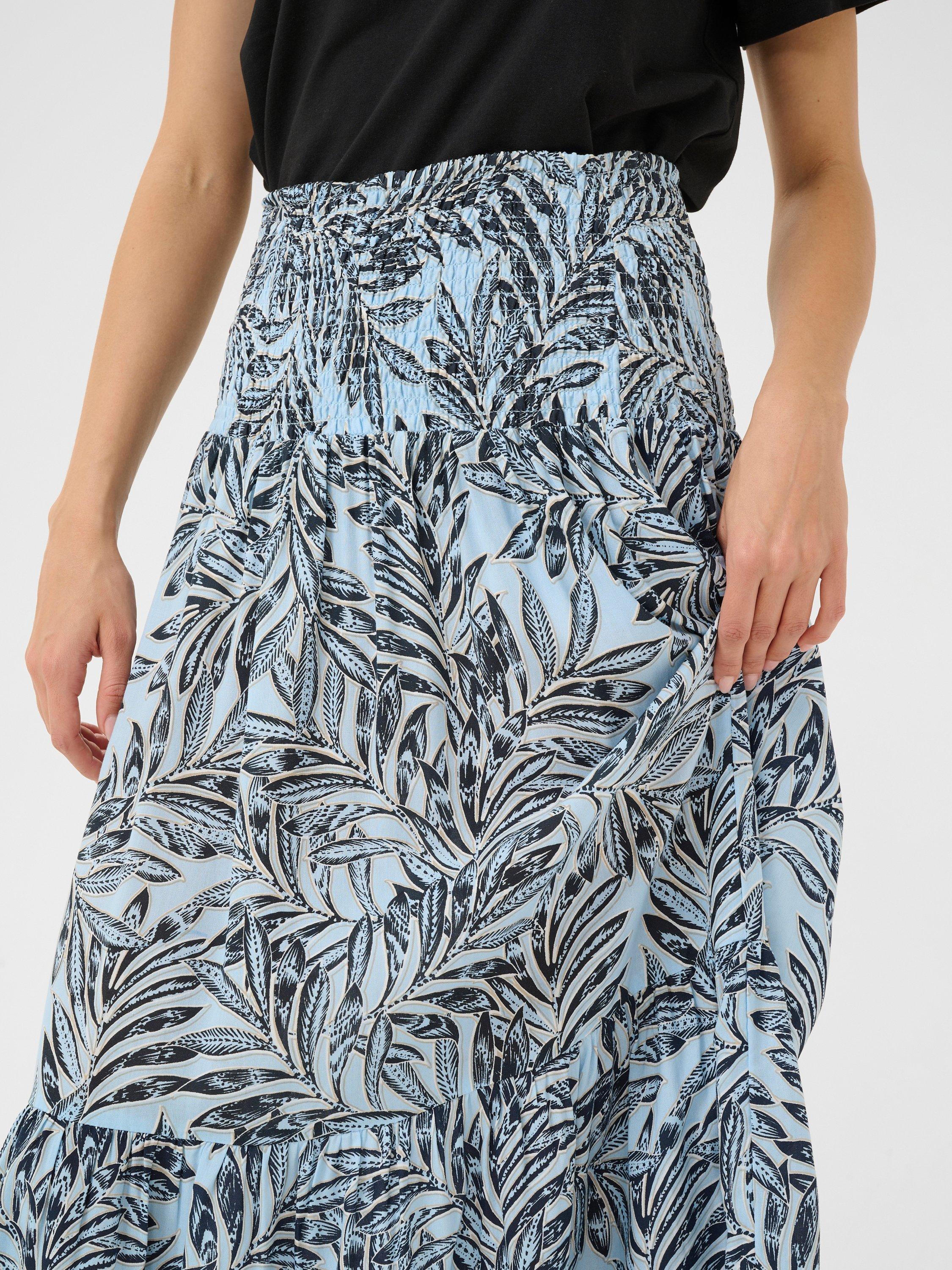 Framed with tiers that delicately cascade down your form, this A-line floor-length skirt from KAFFE is topped with a leaf print.