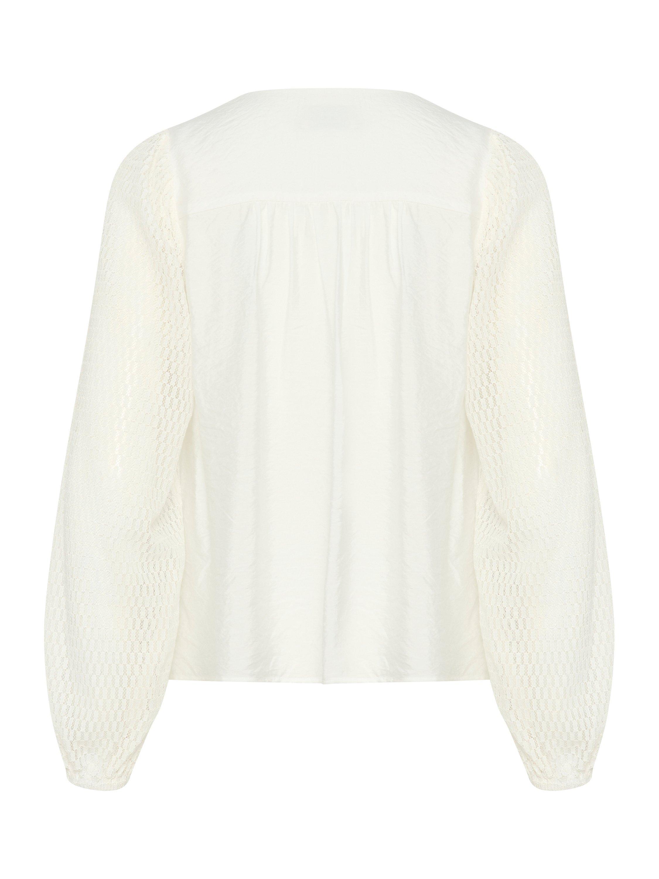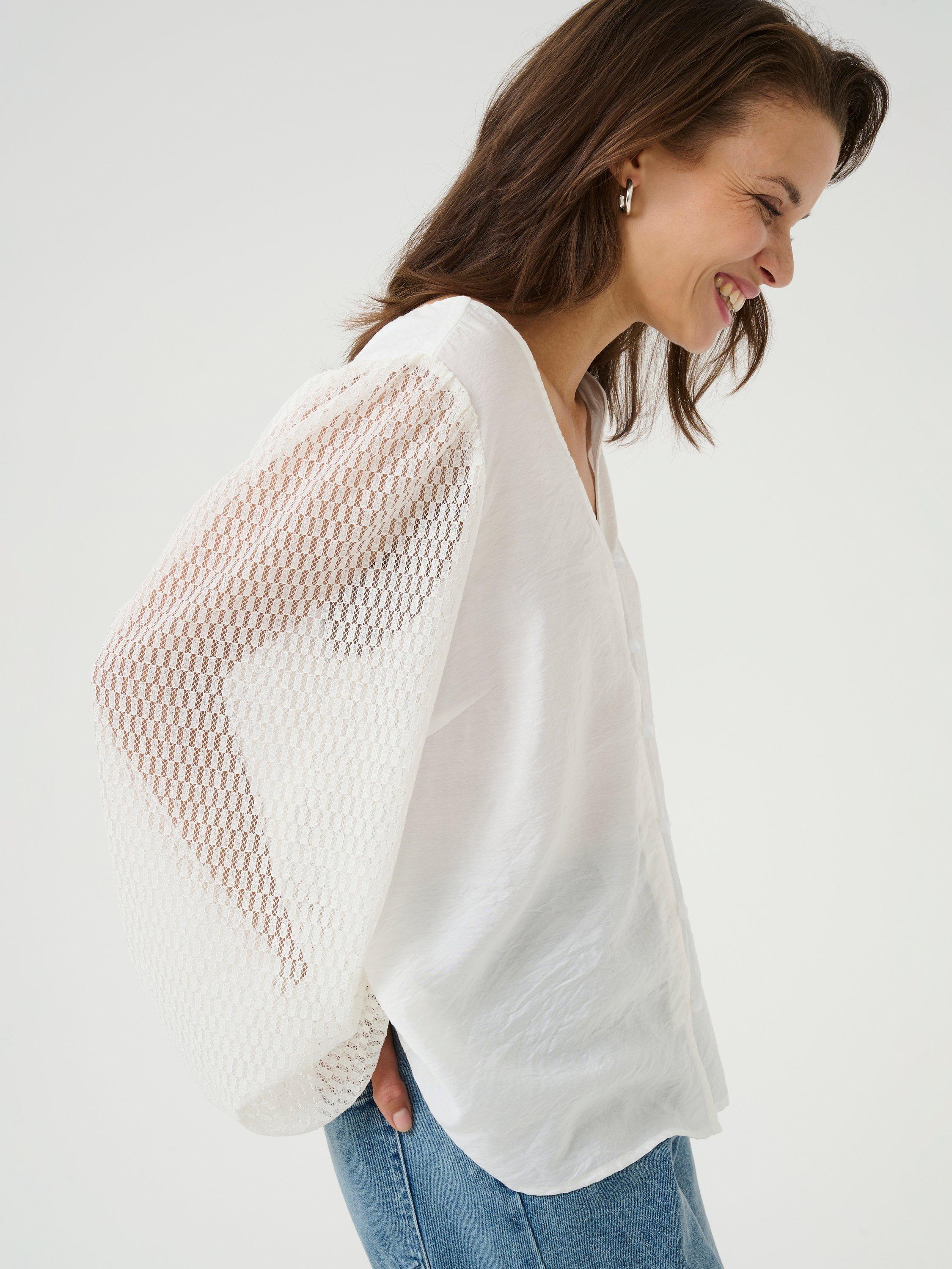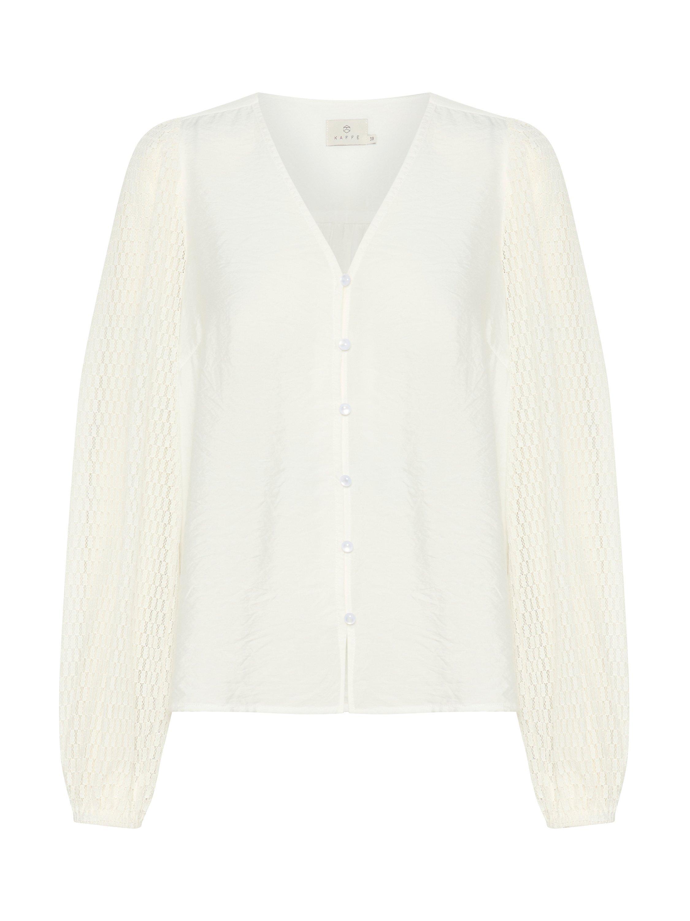 With intricately laced long sleeves, this blouse from KAFFE is ideal for everyday. Classic in cut with a v-neckline and buttons through the front, it is made from a light yet durable blended fabric.
