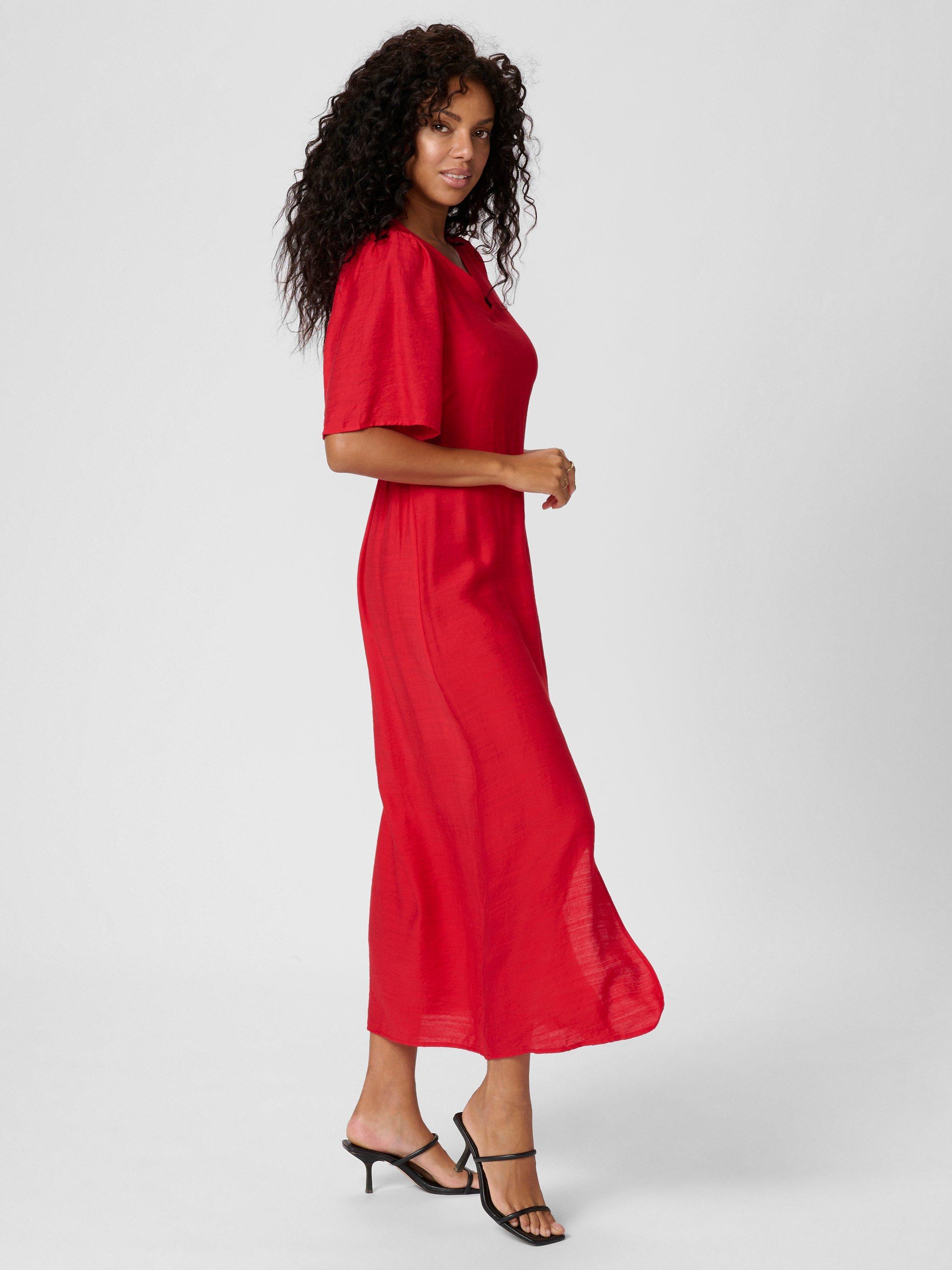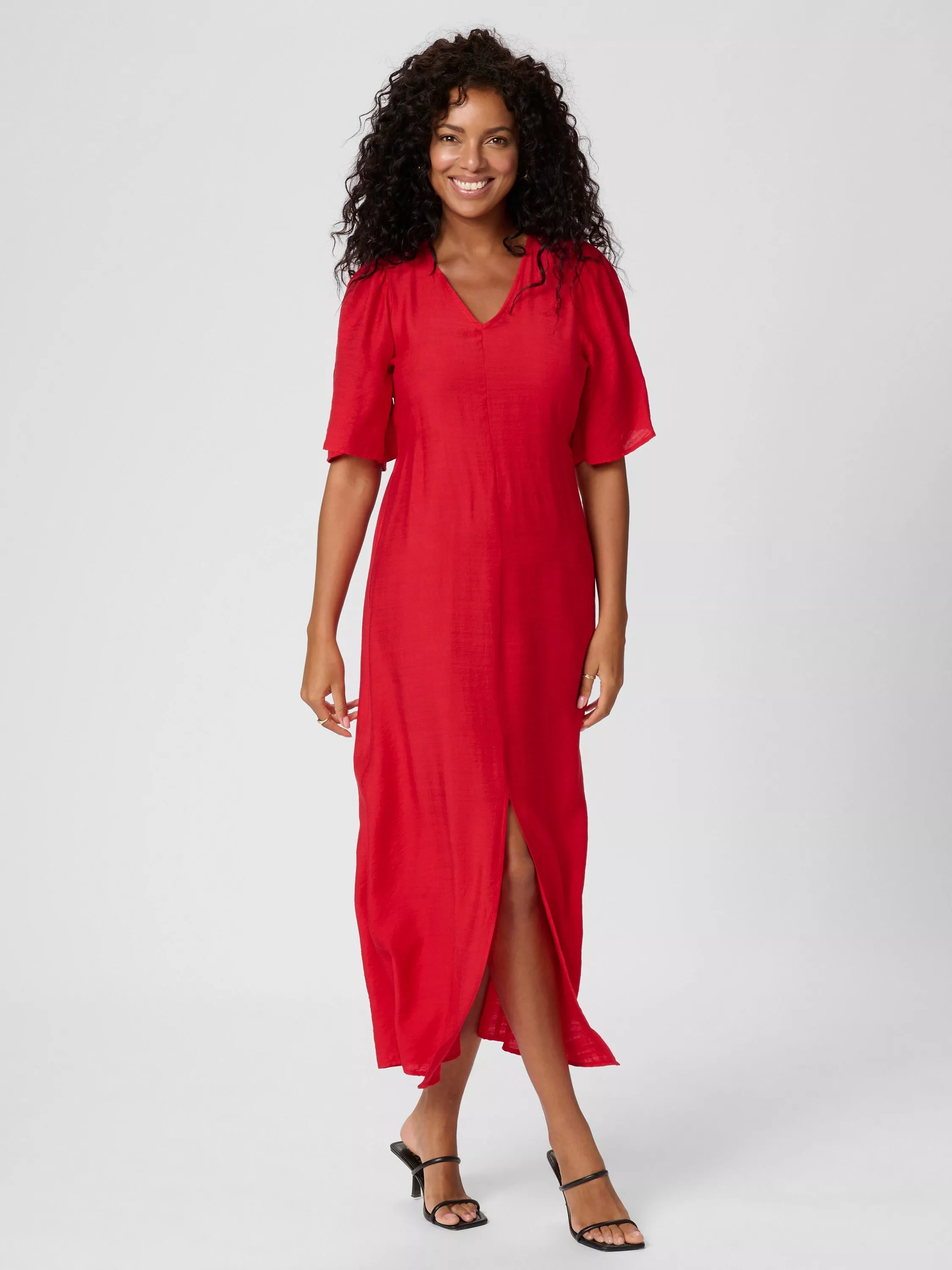 In an easy to wear A-line shape with a split hem, this floor-length dress from KAFFE is crafted from an airy viscose blend. Effortlessly flattering thanks to a fuss-free v-neckline and short sleeves, this style needs no prints or accents to hold the spotlight.