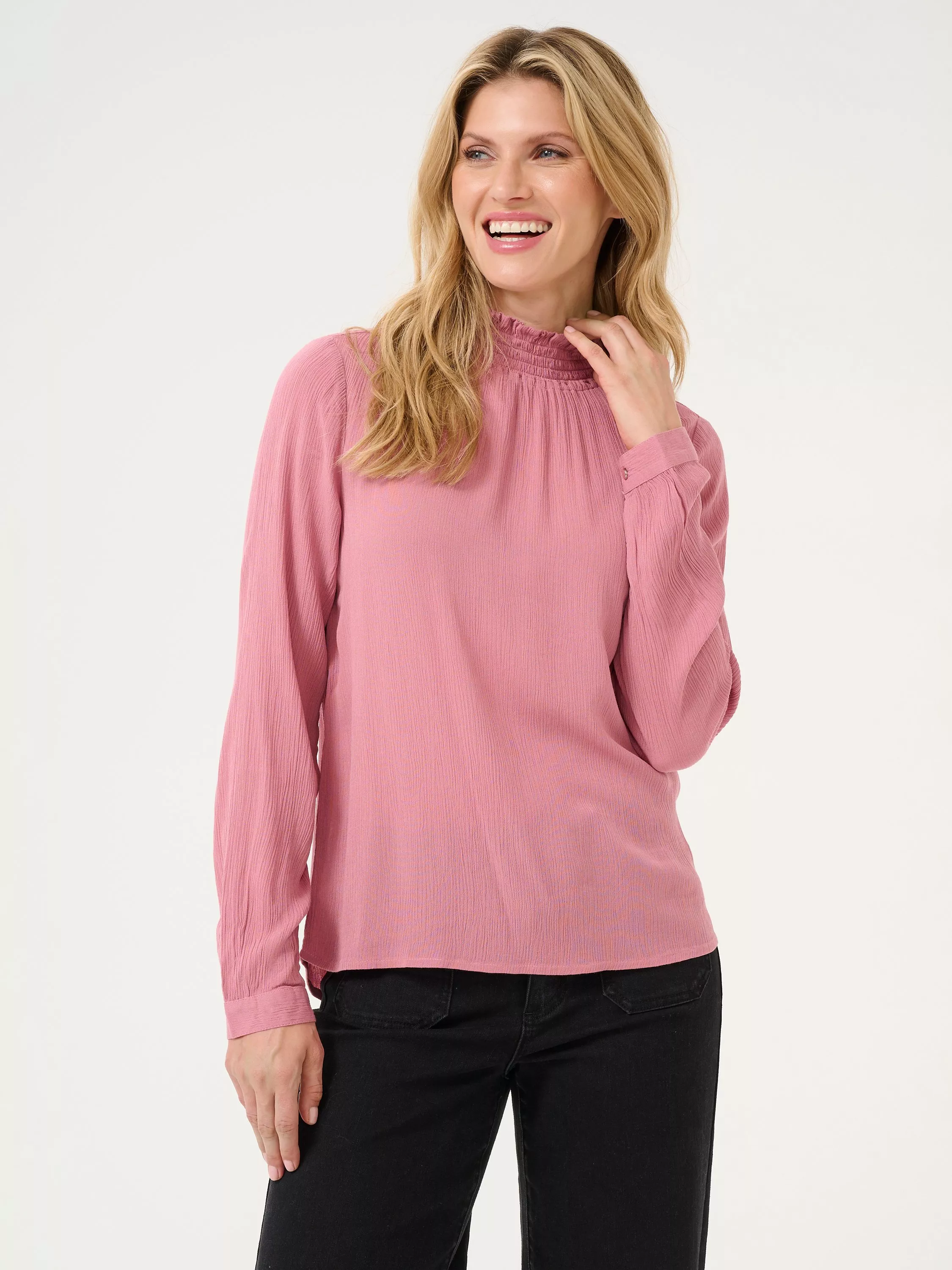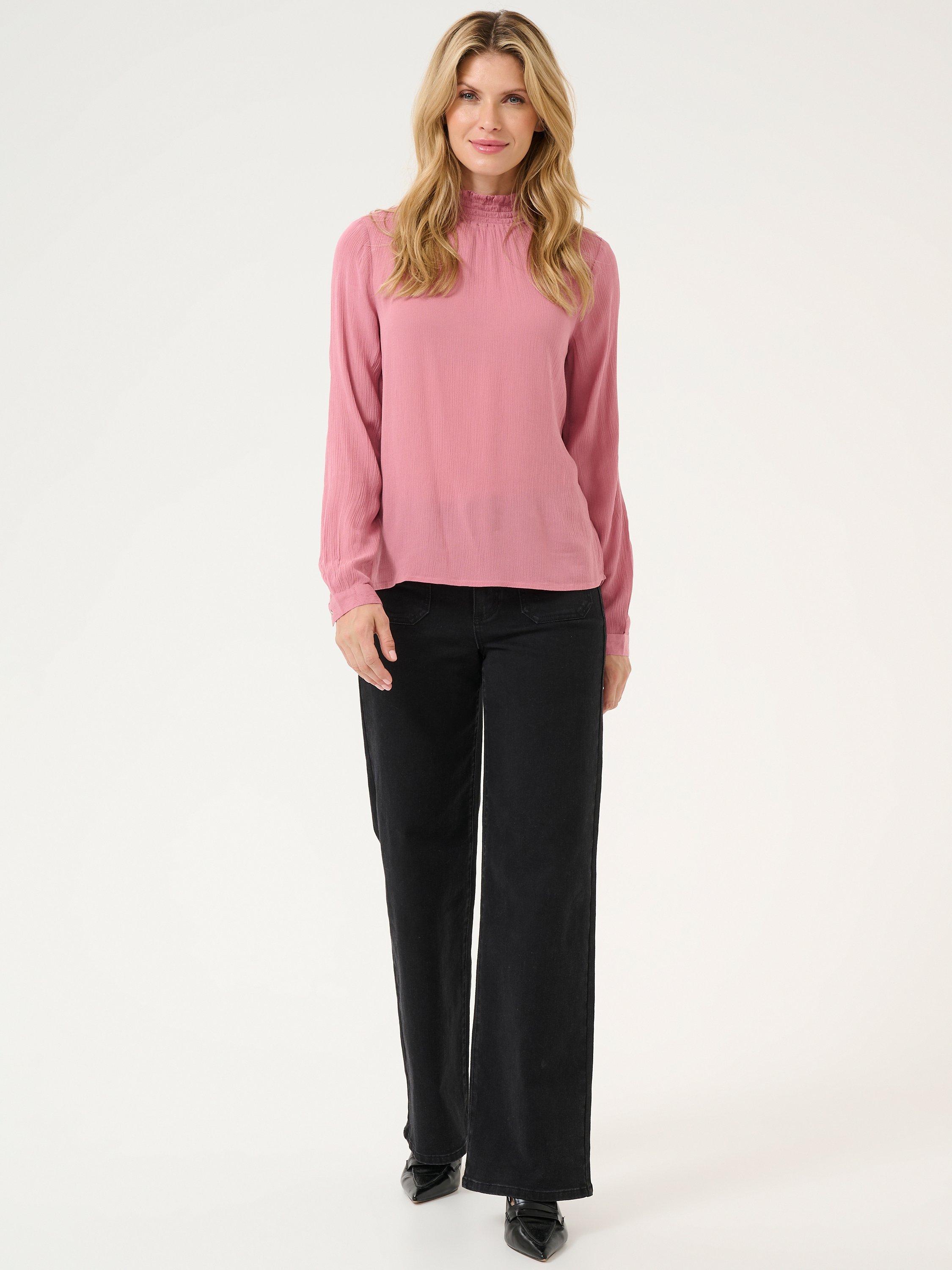 The trine blouse is the perfect addition to your everyday wardrobe. It has a high smock neck with two buttons at the back for fastening and a narrow keyhole detail underneath. The sleeves are long and loose with buttoned cuffs, and the blouse has a relaxed fit.