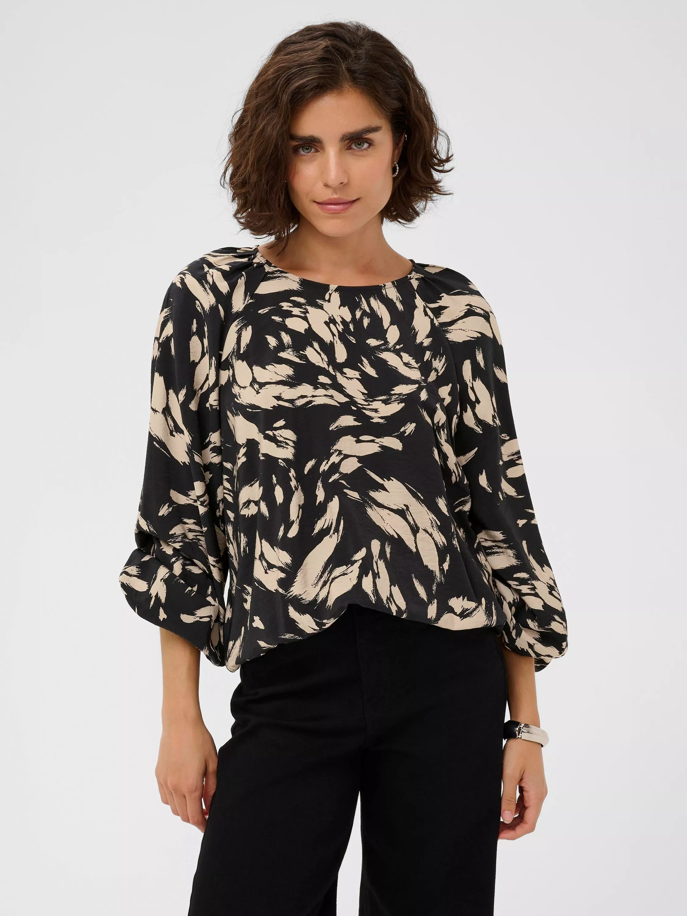 An effortless blouse from KAFFE. With a round neck and playful long puff sleeves, it makes for a stand out addition to your collection with its graphic print. Everyday ease with a stylish twist.