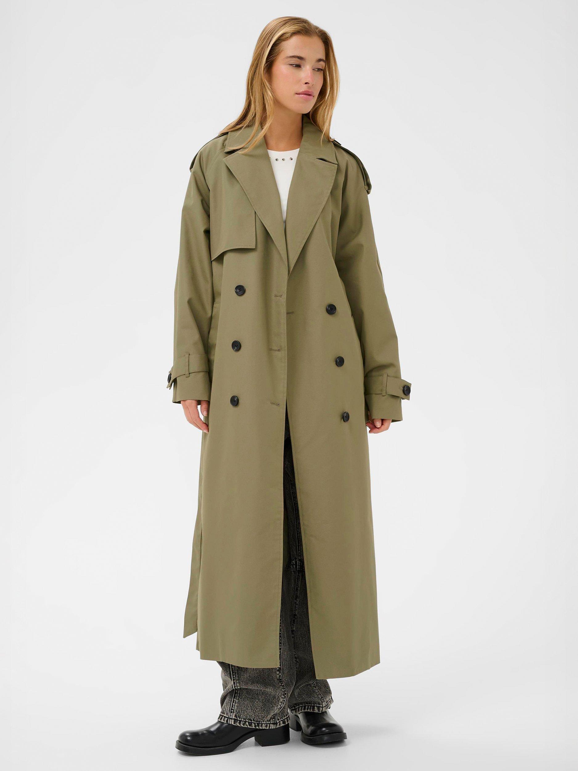 This long trench coat keeps you ready for any plan, with a classic collar and tailored fit that never gets in your way. Its smart cotton blend ensures comfort and ease, perfect for layering.