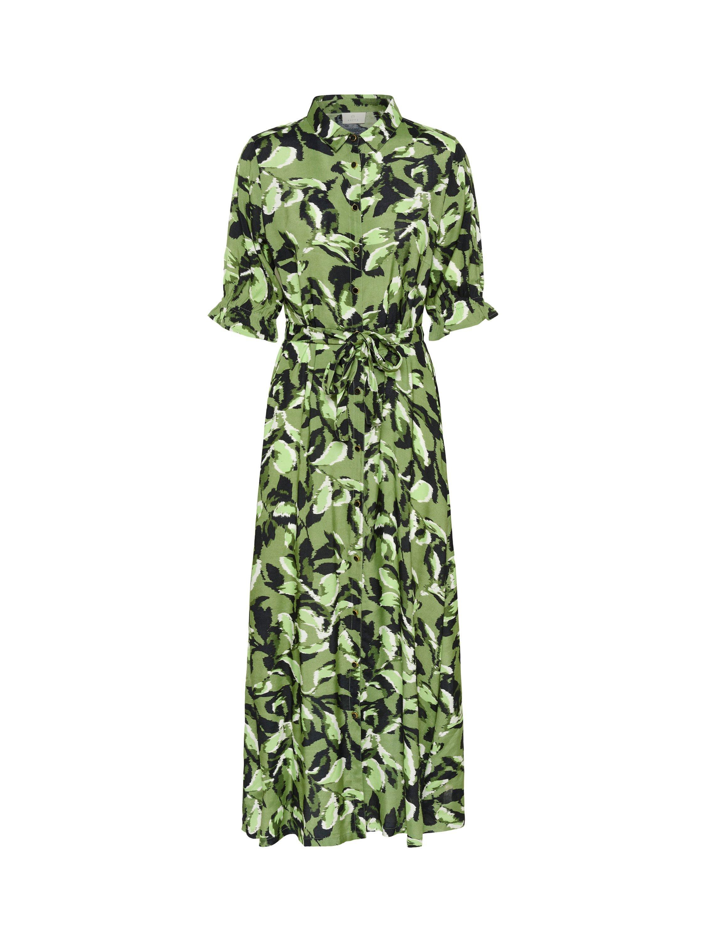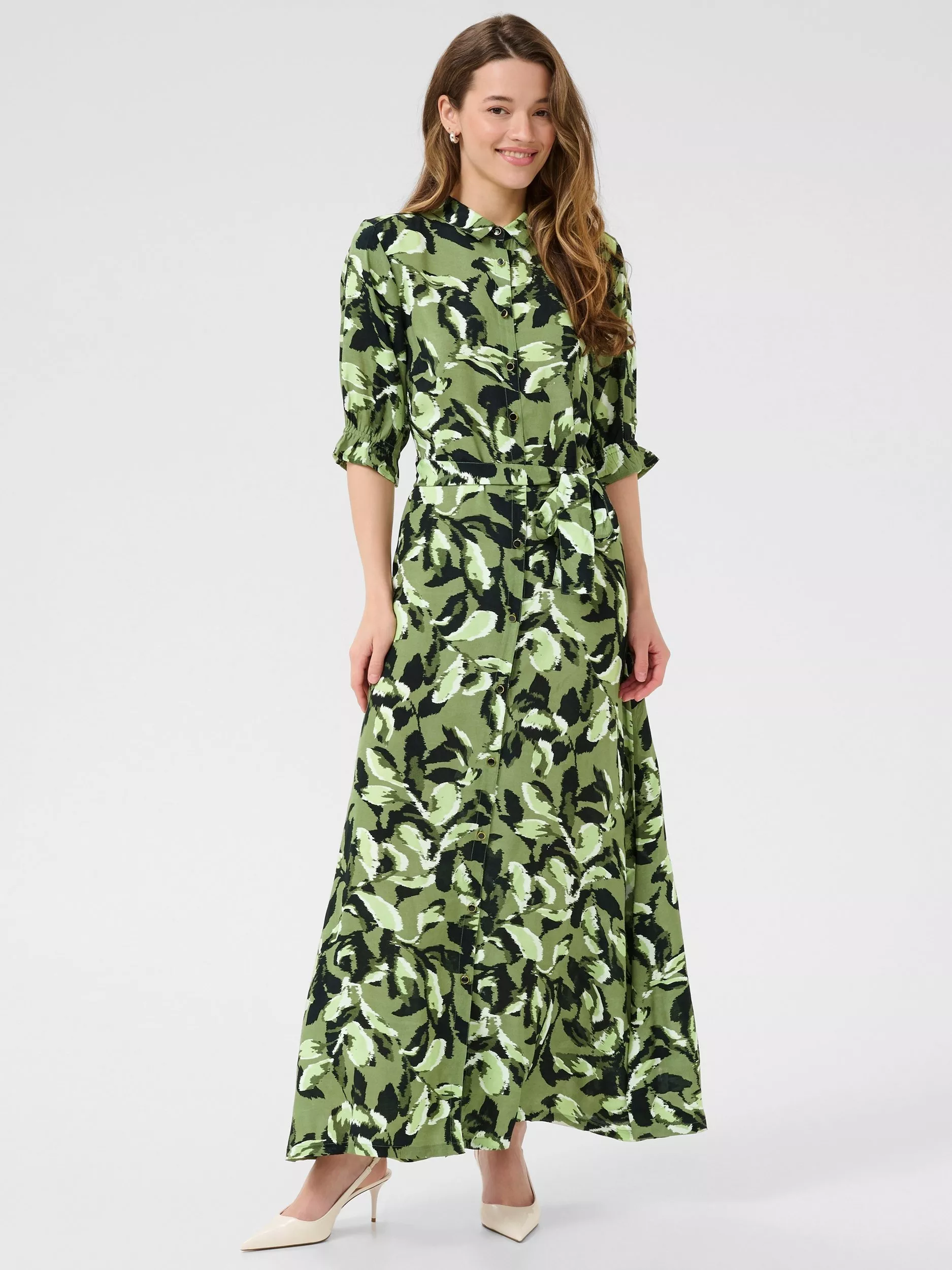 In an A-line shirt style that you will wear again and again, this maxi dress from KAFFE is made from liquid-like viscose. Confidently cut with a collar and three quarter length sleeves, this style captures a leafy print.