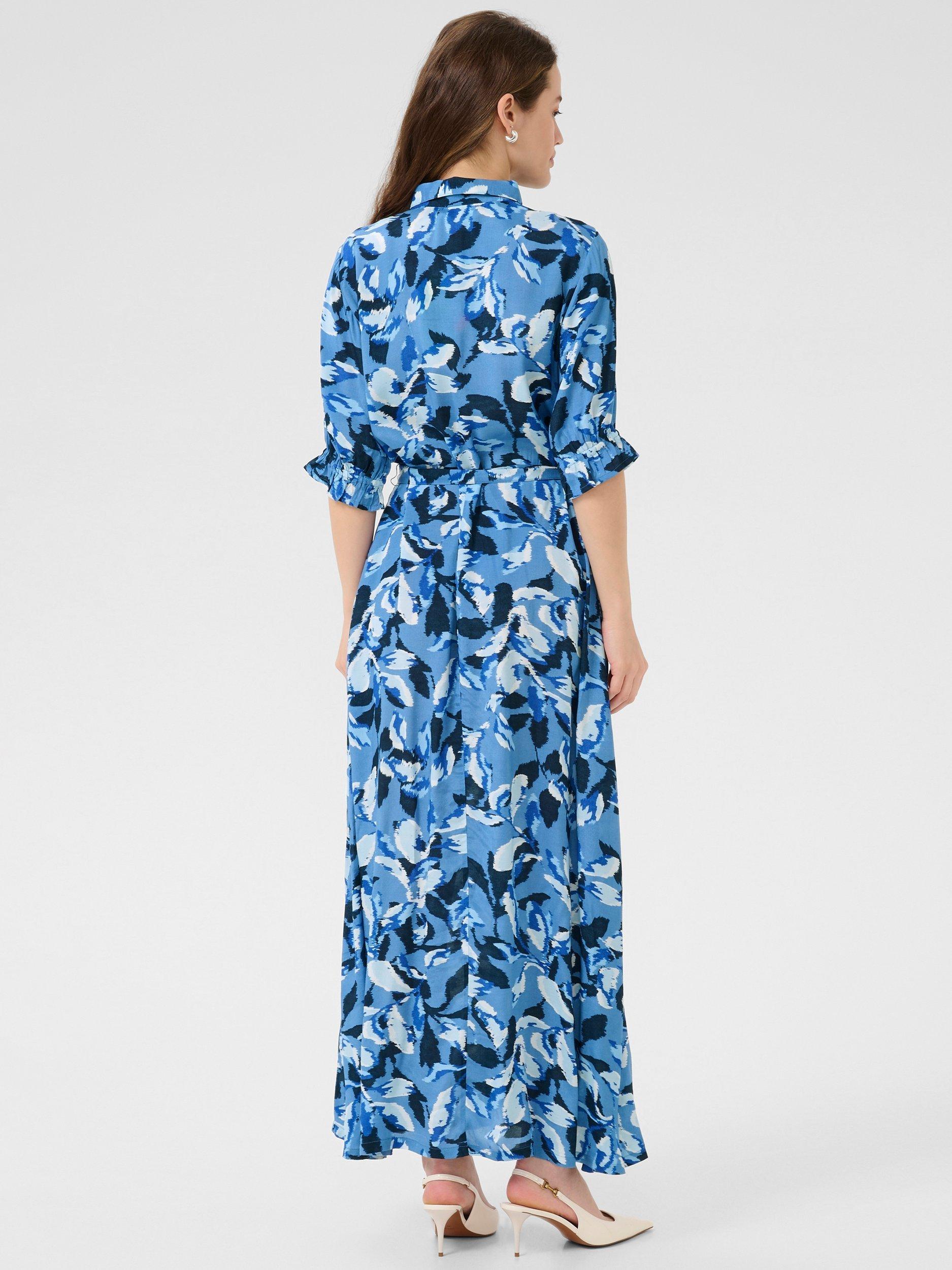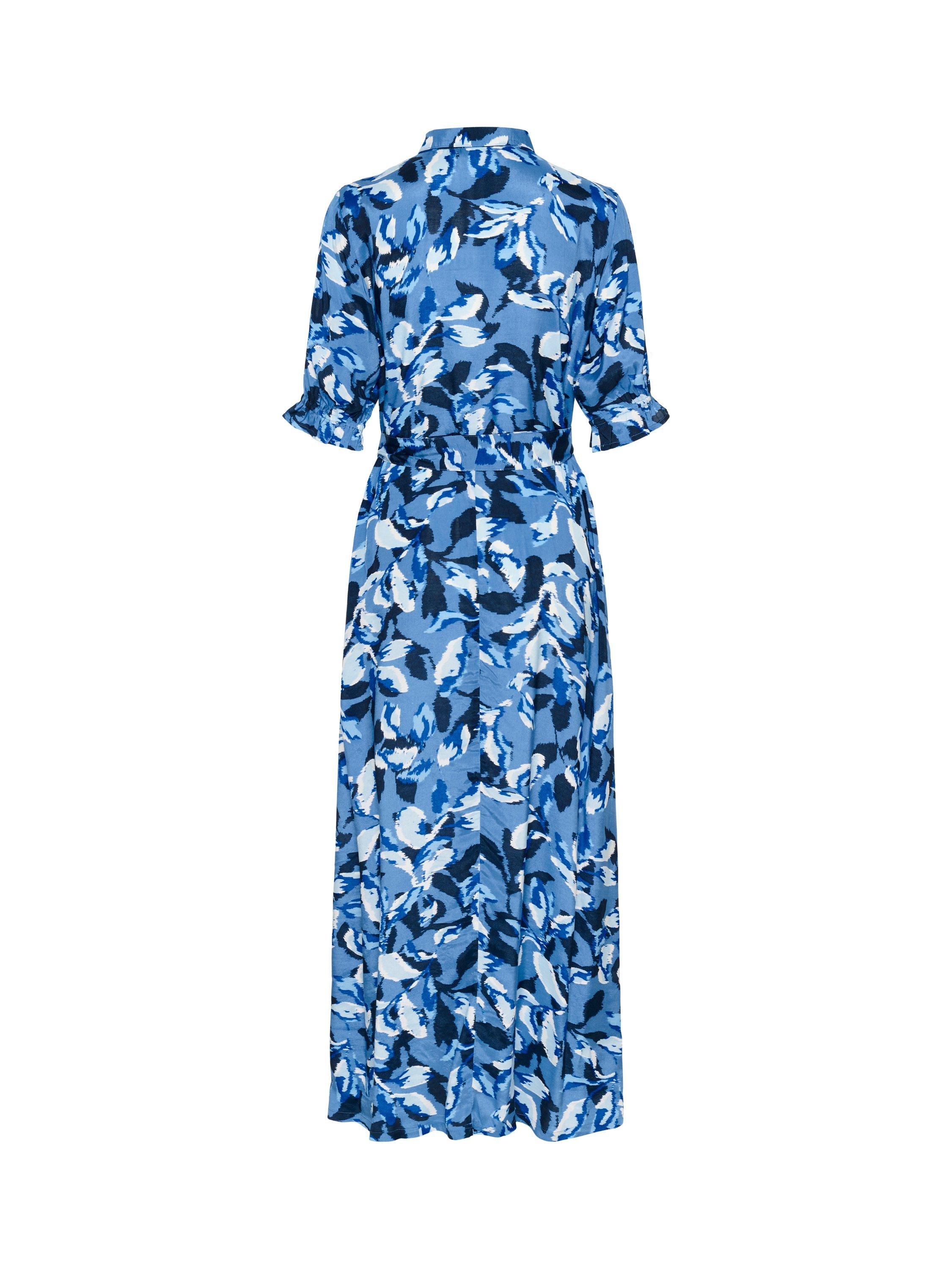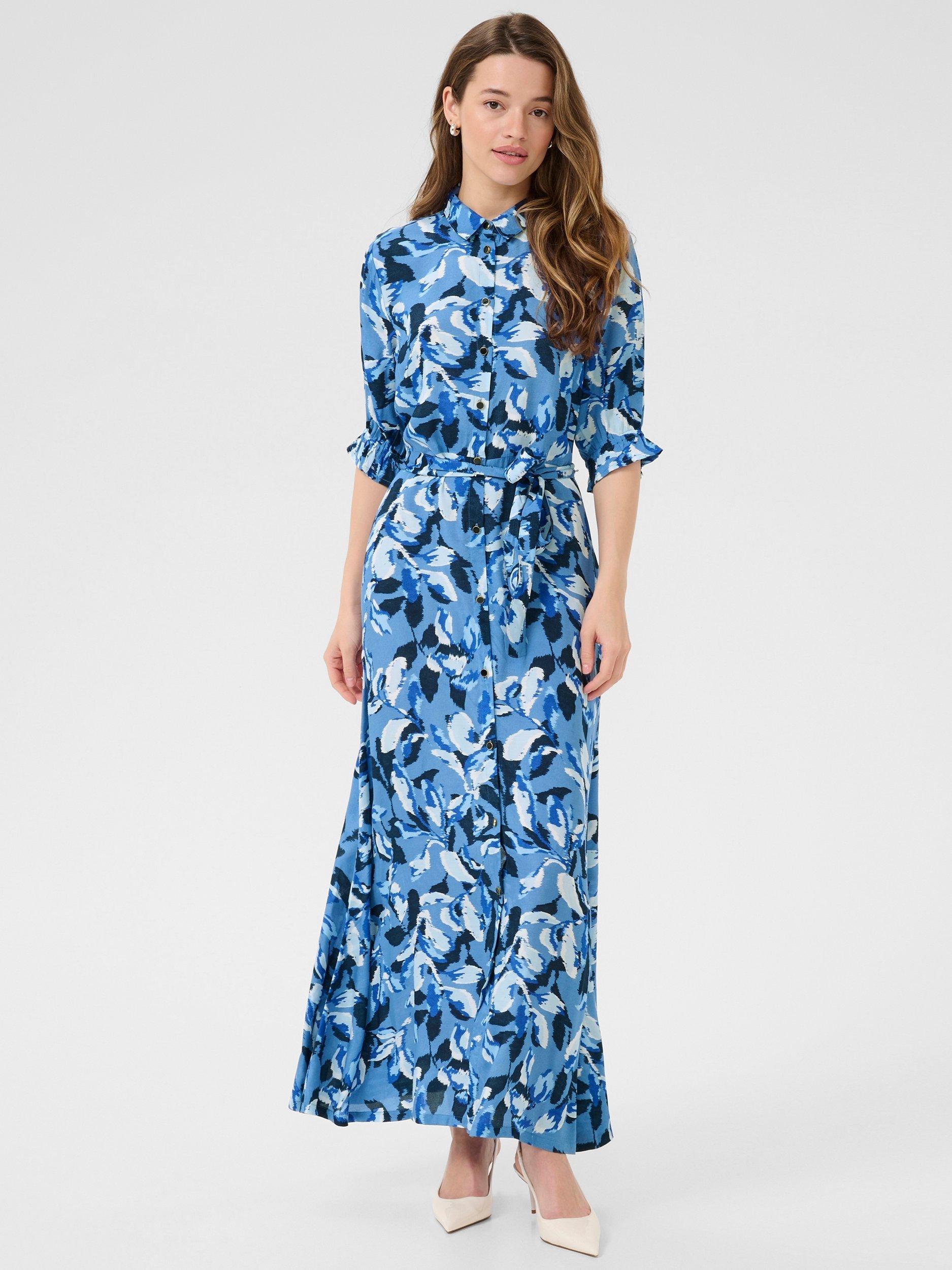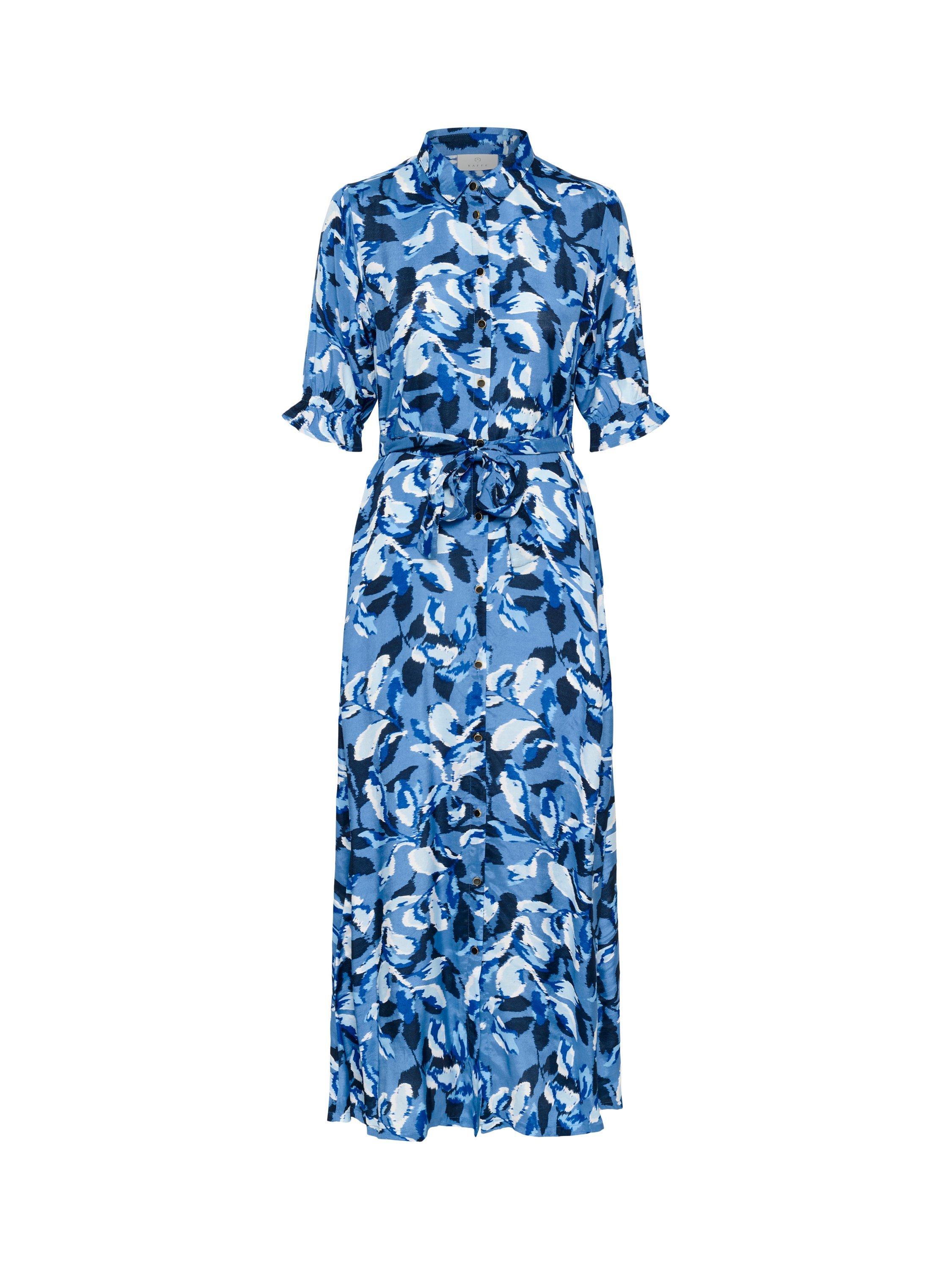 In an A-line shirt style that you will wear again and again, this maxi dress from KAFFE is made from liquid-like viscose. Confidently cut with a collar and three quarter length sleeves, this style captures a leafy print.