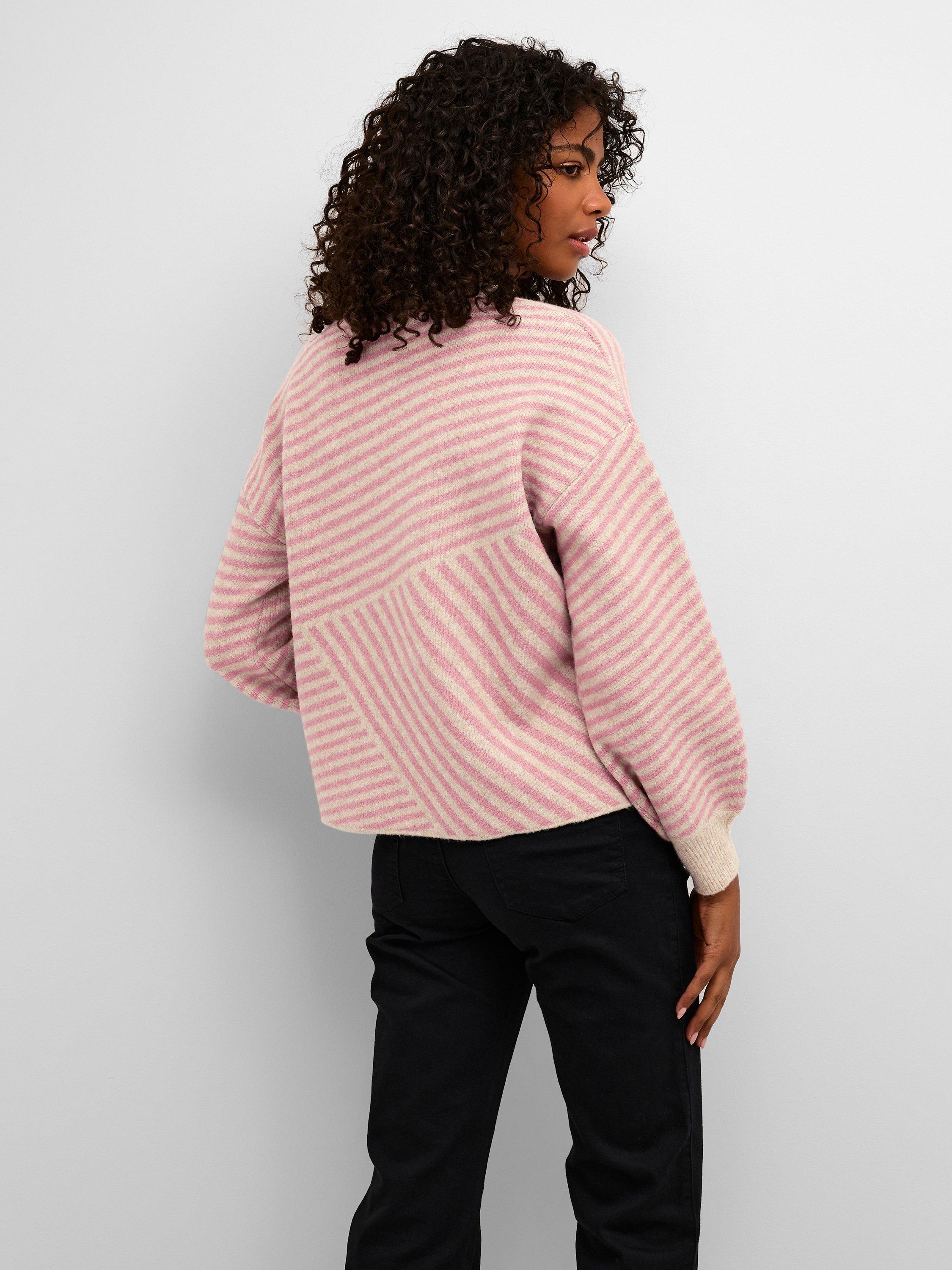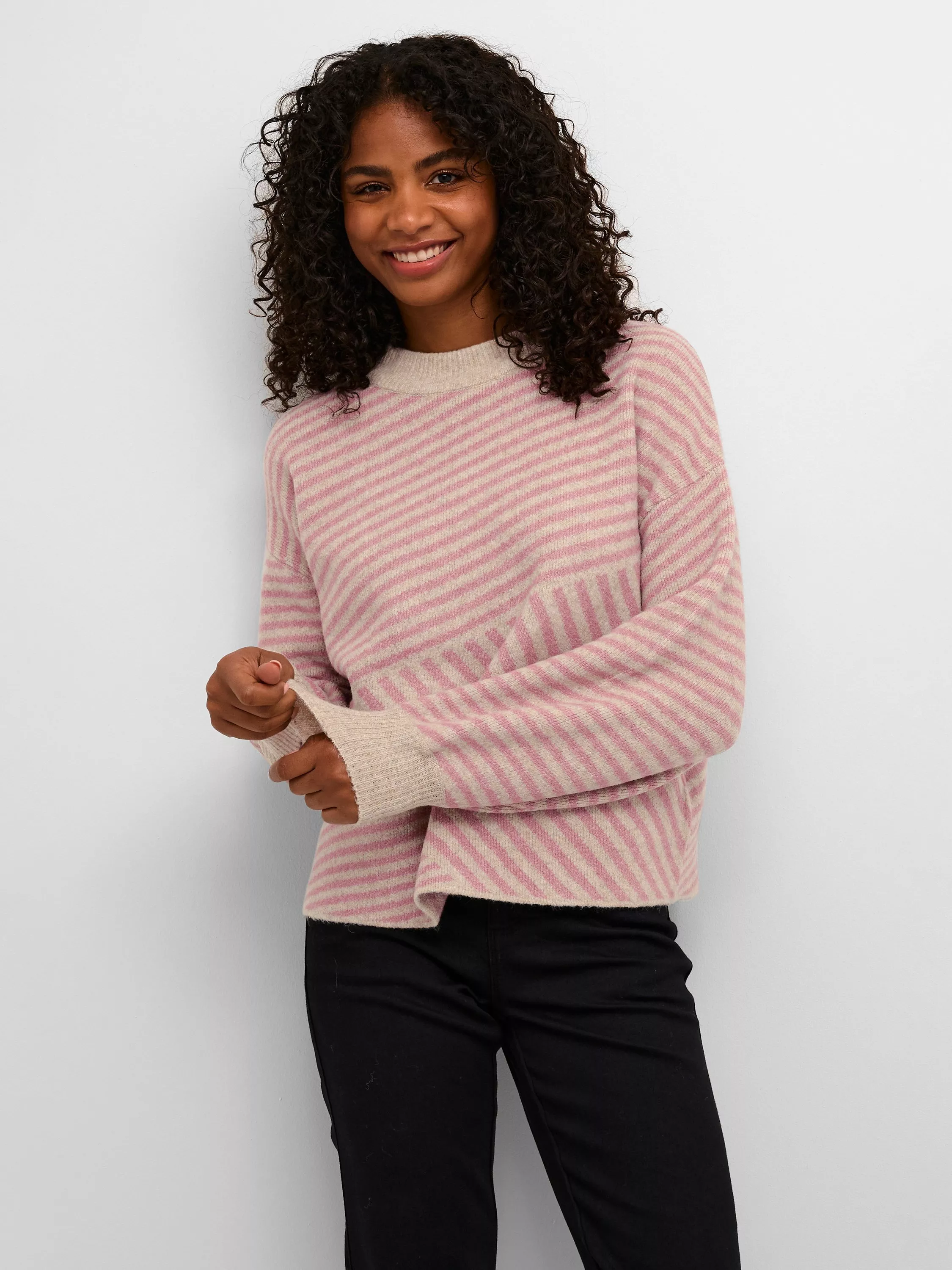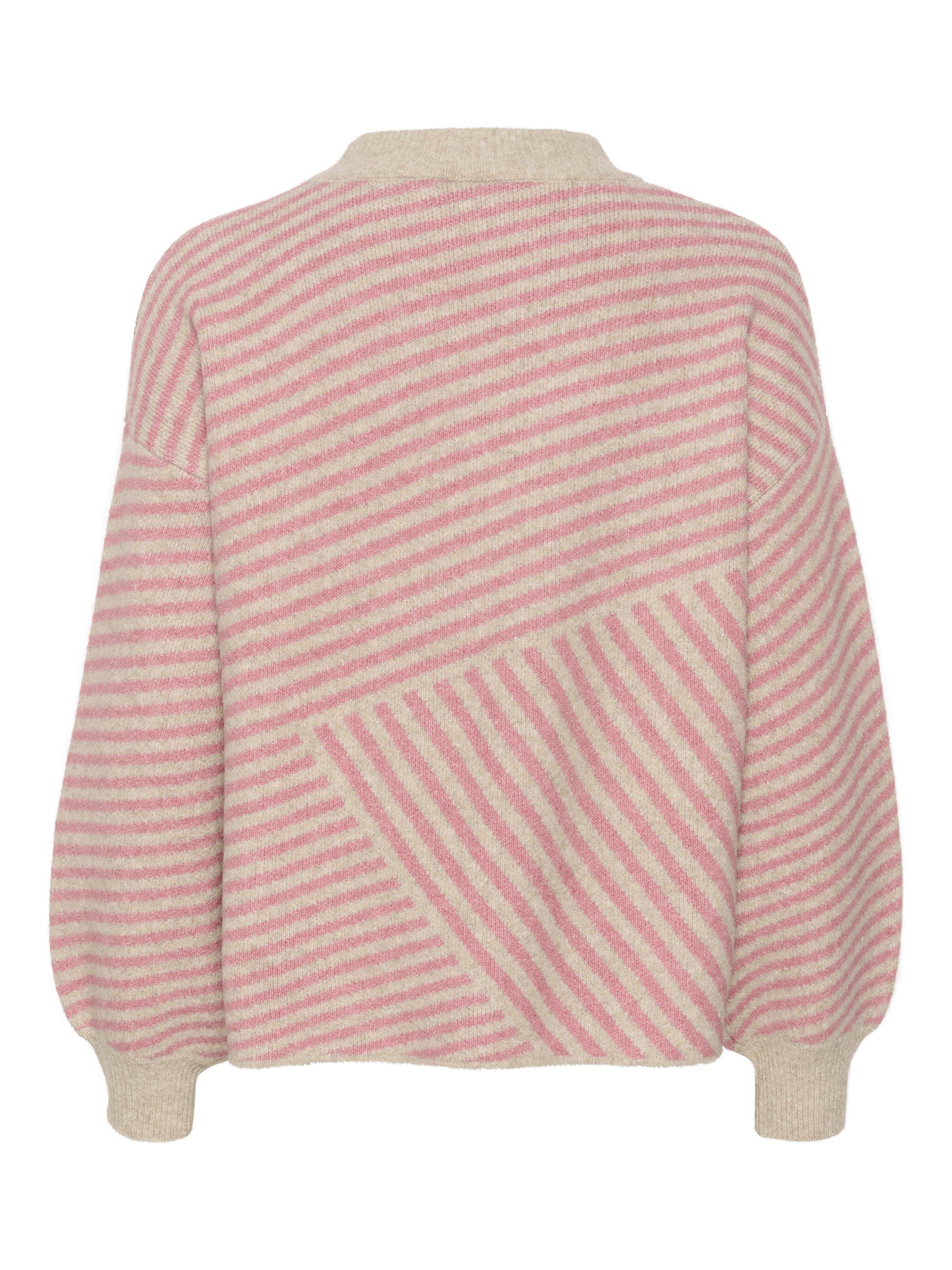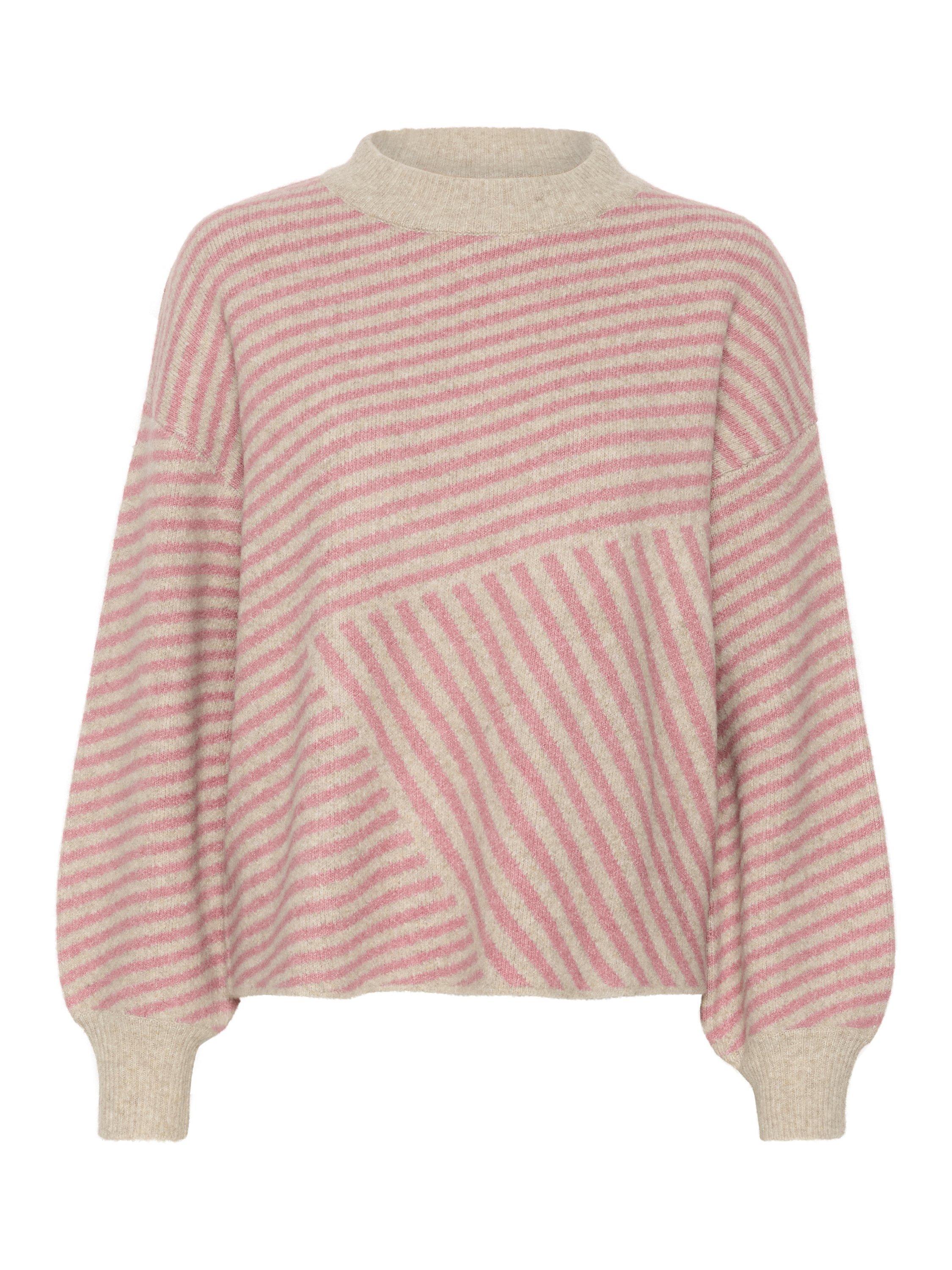 The verana pullover is a cool and cosy knit top, that will add a casual touch to any outfit. It has a rib knit crew neck and a relaxed fit with drop shoulders, and it is made in a striped pattern. The sleeves are long and loose with rib knit cuffs.