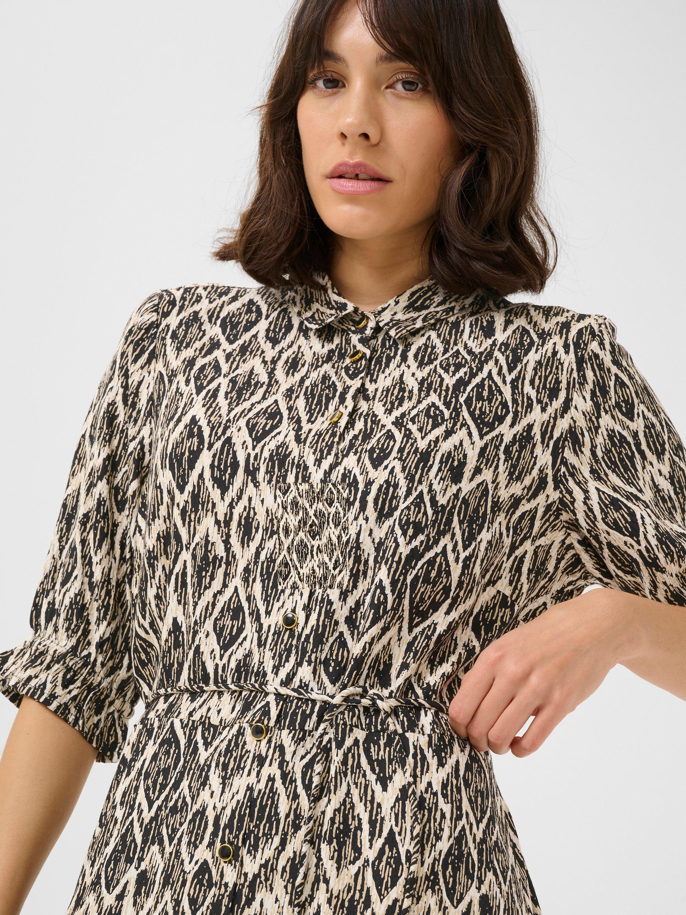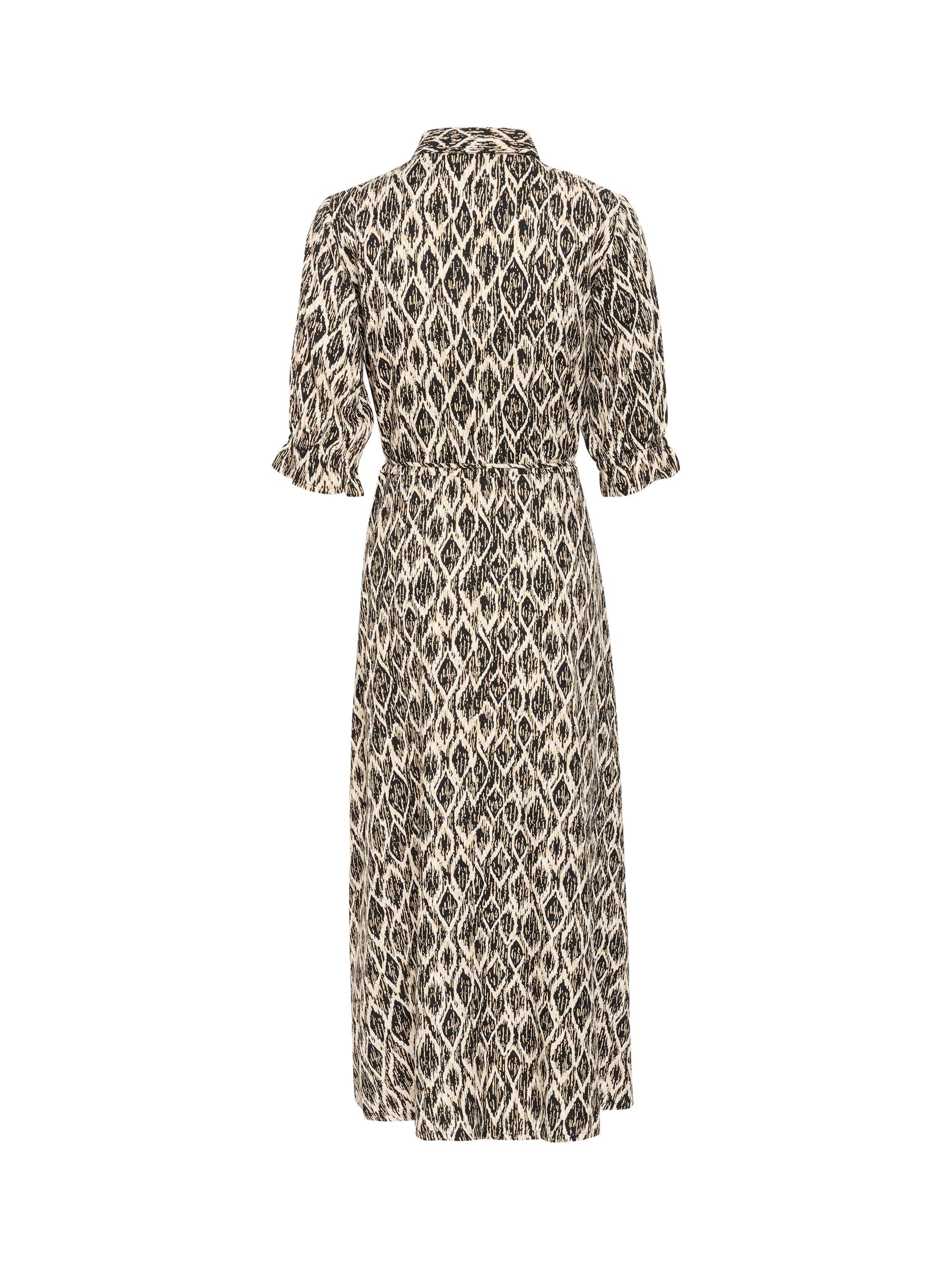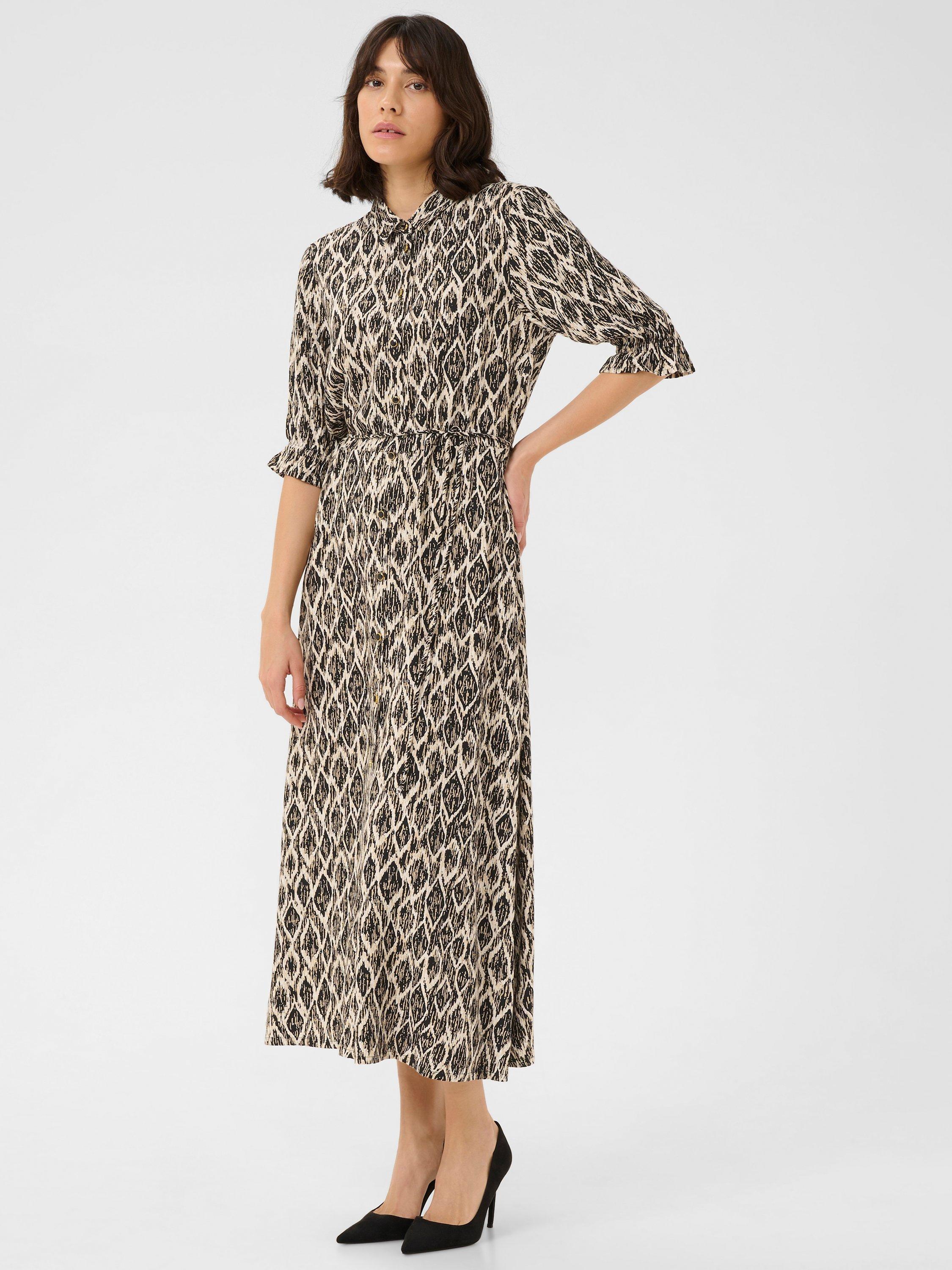 The veronica maxi dress is a casual shirt dress in a great print. It has a spread collar and button fastening, and it has a relaxed fit with a narrow tying belt at the waist. The sleeves are half-length and gathered in a frilled, elastic edge.