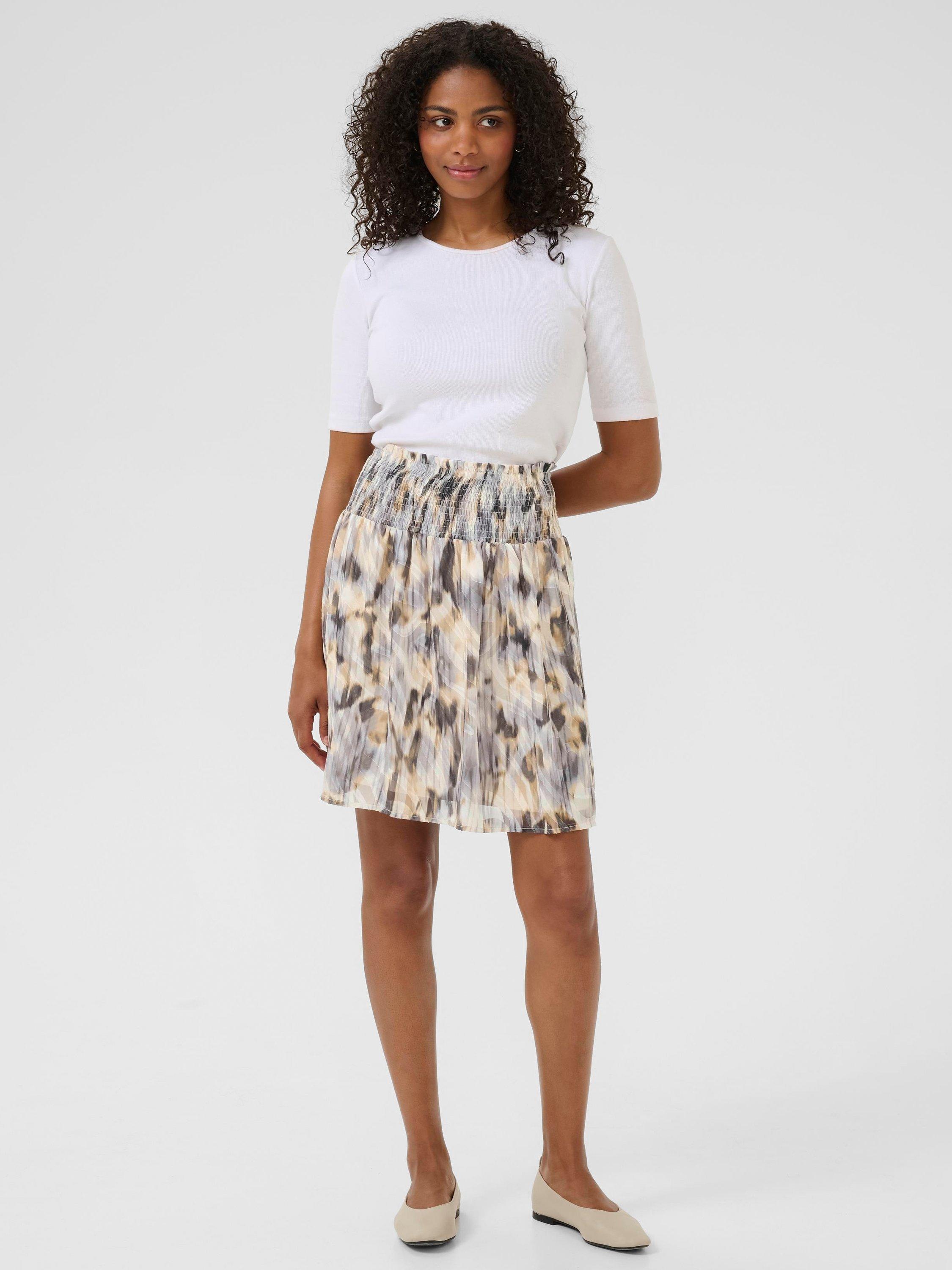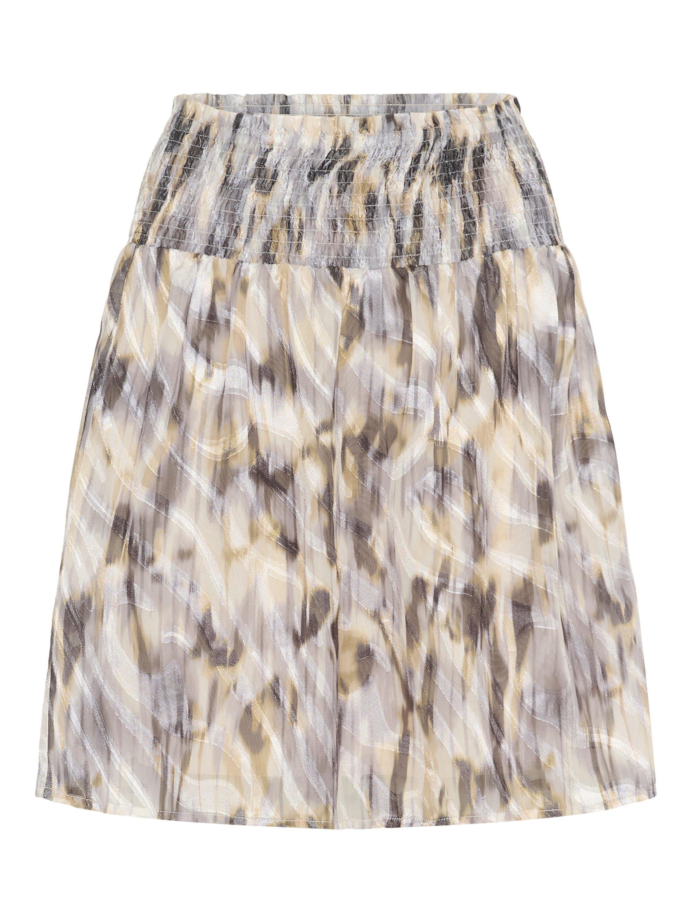 Elevate your wardrobe with this mini skirt in an abstract print. Great for weekends and holidays.