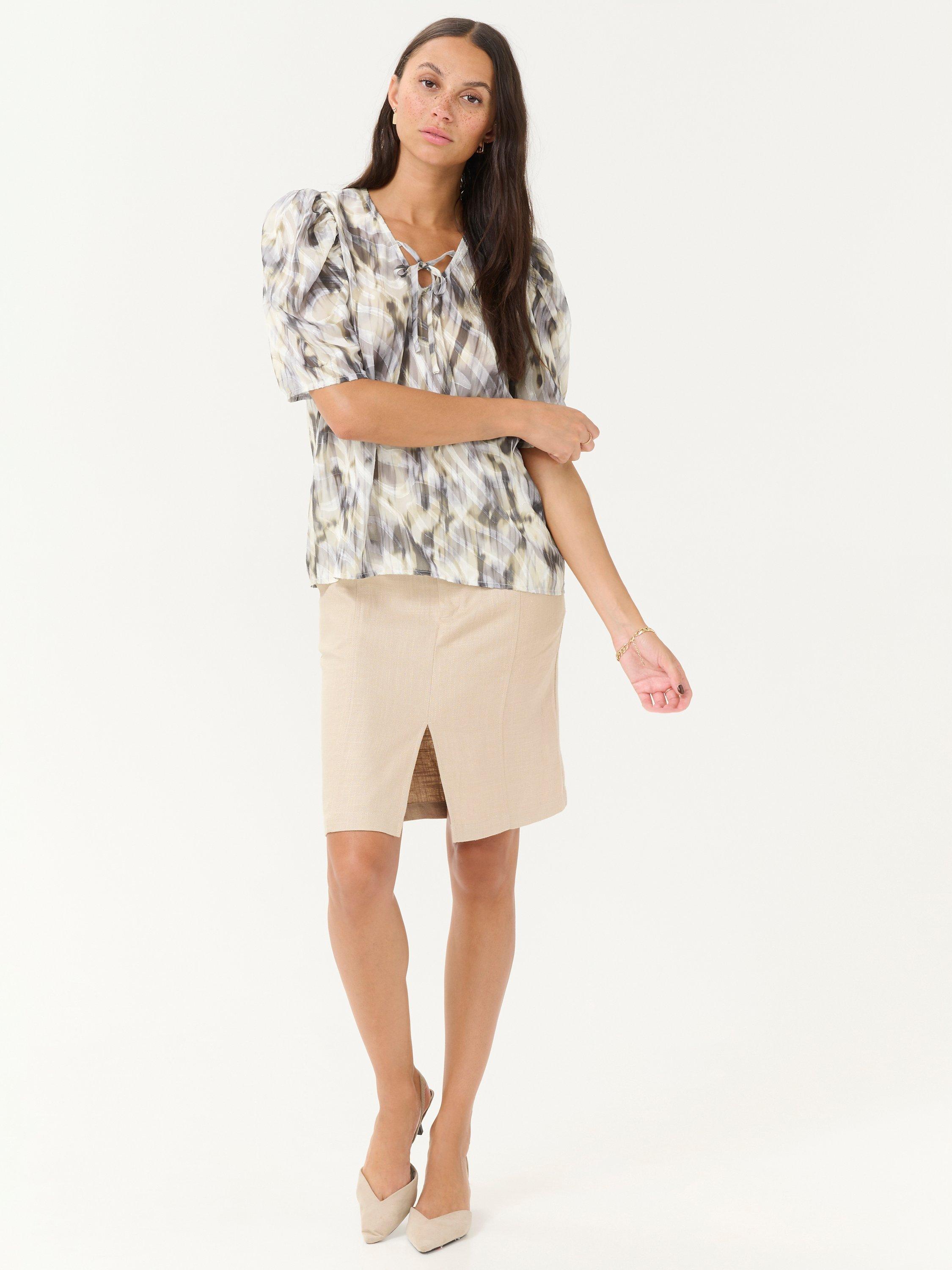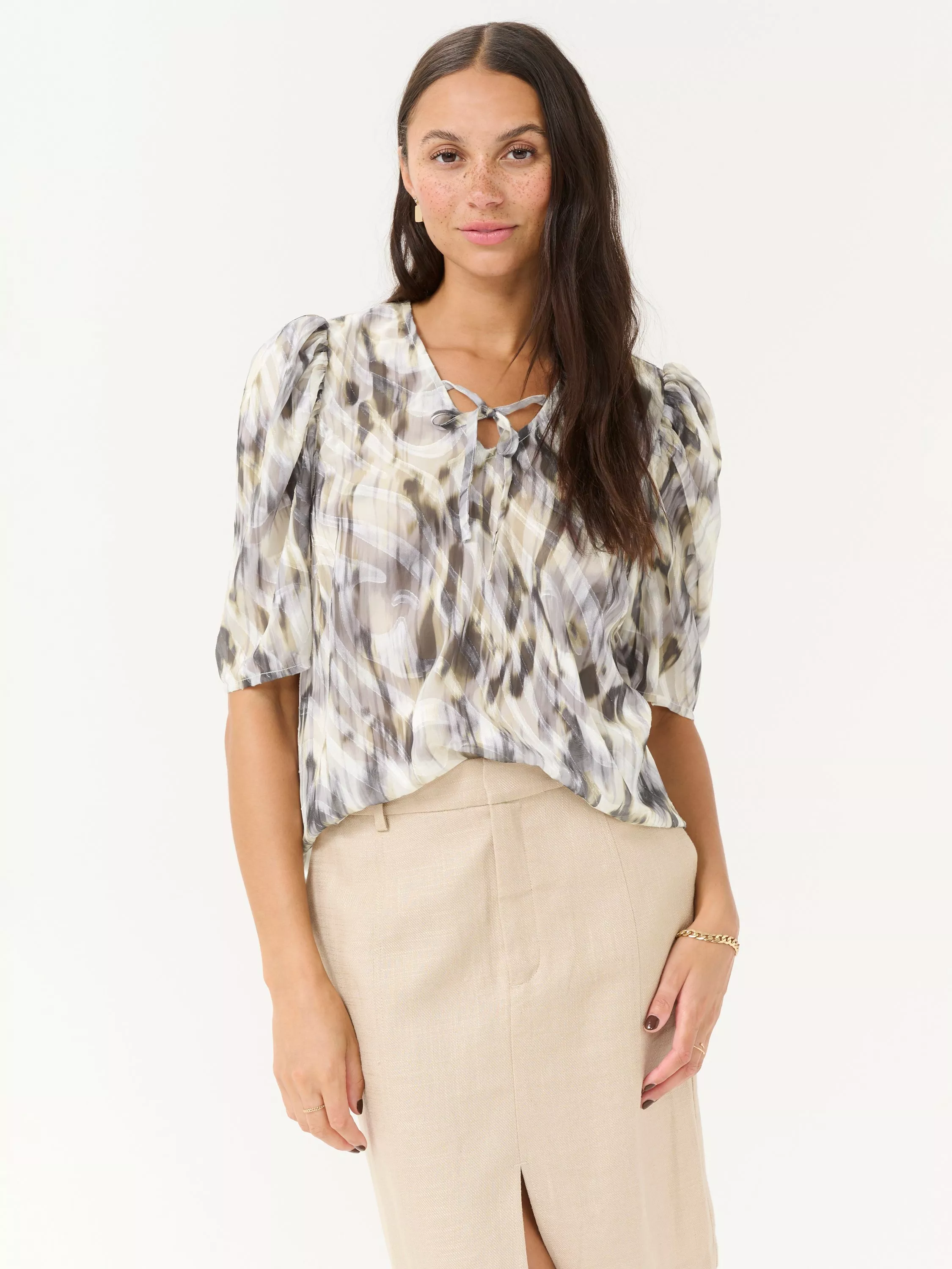 Bringing a neat addition to your wardrobe, this blouse from KAFFE adds impact with its eye-catching abstract pattern. Designed with a tie neckline and short sleeves, it is made from a light yet durable fabric and is an everyday wardrobe essential.