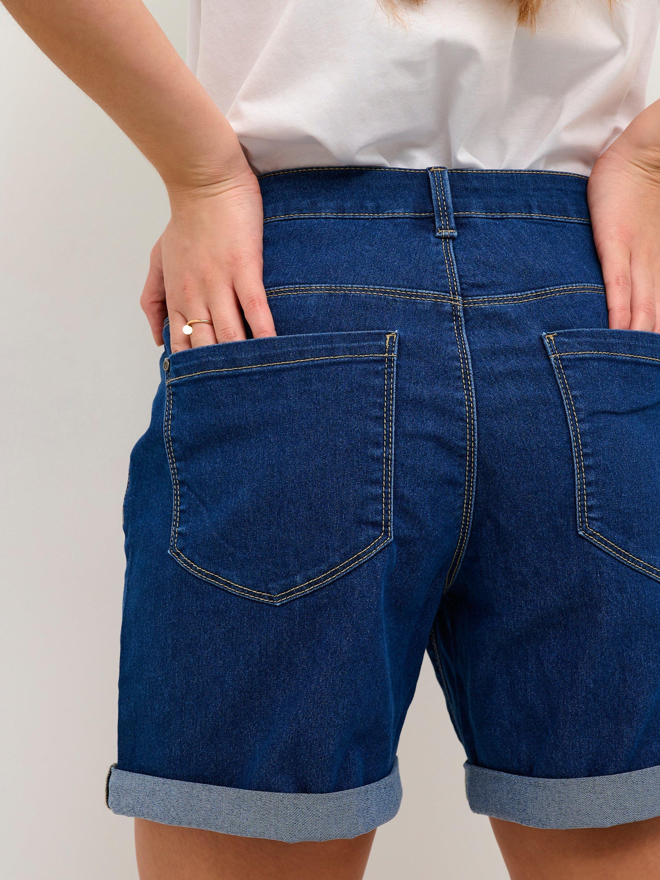 The vicky denim shorts are a must-have in any summer wardrobe. They have a classical jeans waist with pockets front and back. The shorts have a regular fit making it comfortable to move around in them. They come down to the mid-thigh and has a cuffed hemline.