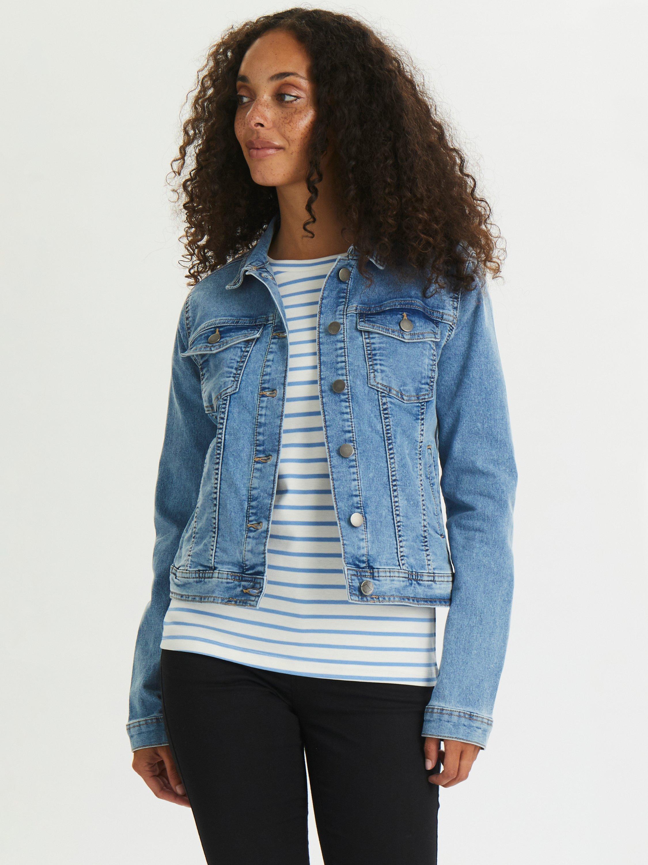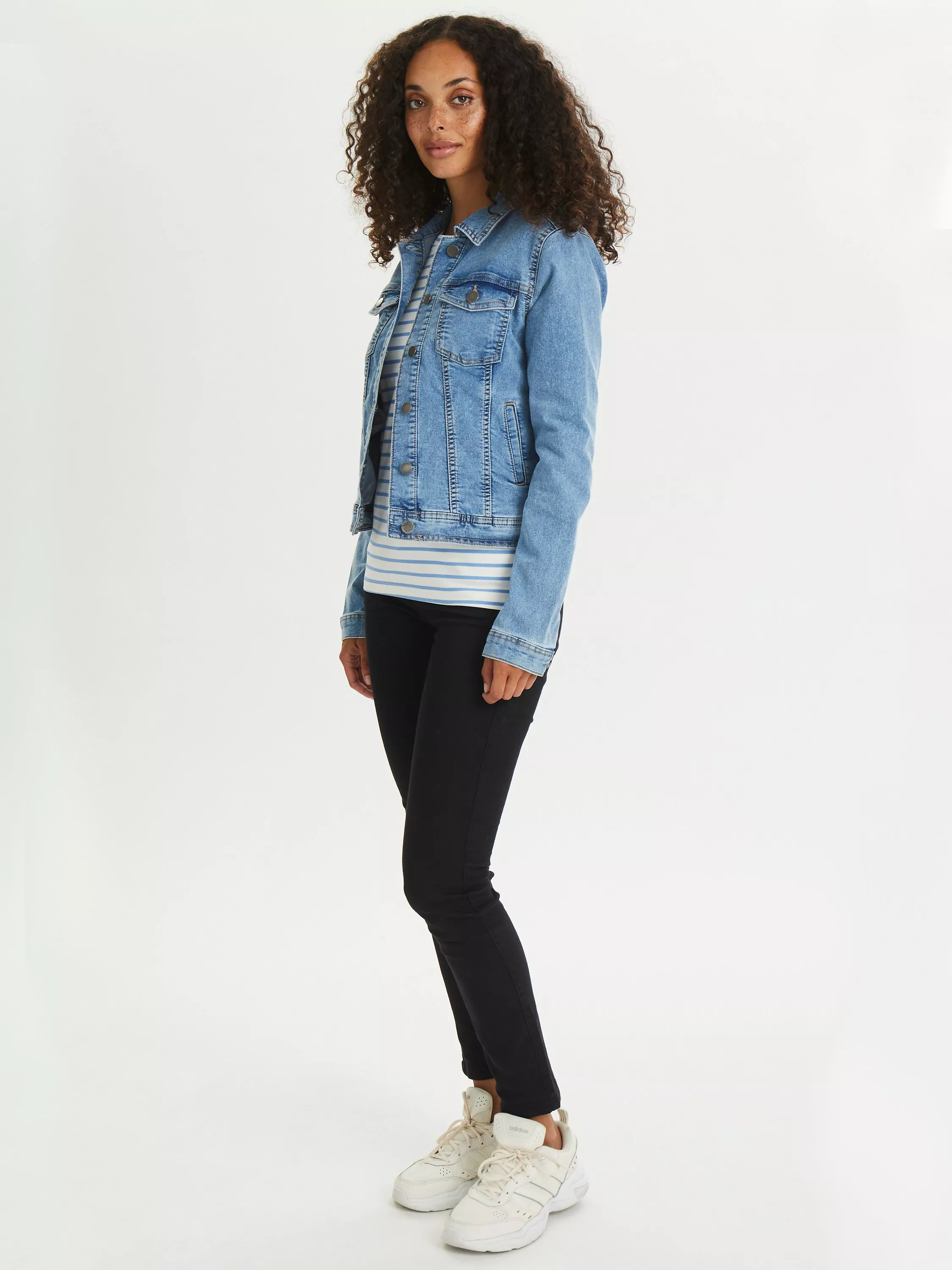 Every wardrobe needs a denim jacket and this option from KAFFE falls to just below the waist for a contemporary profile.