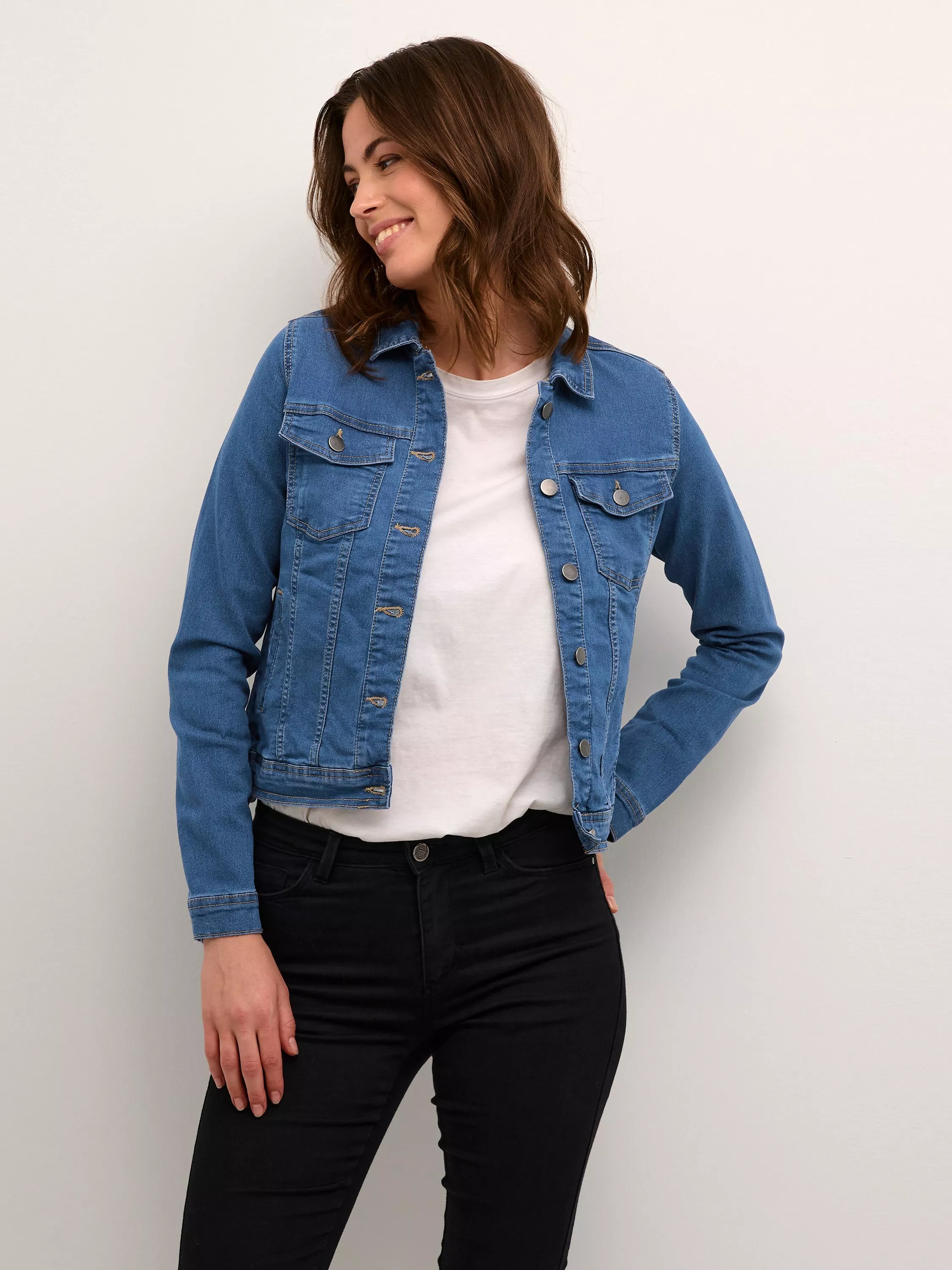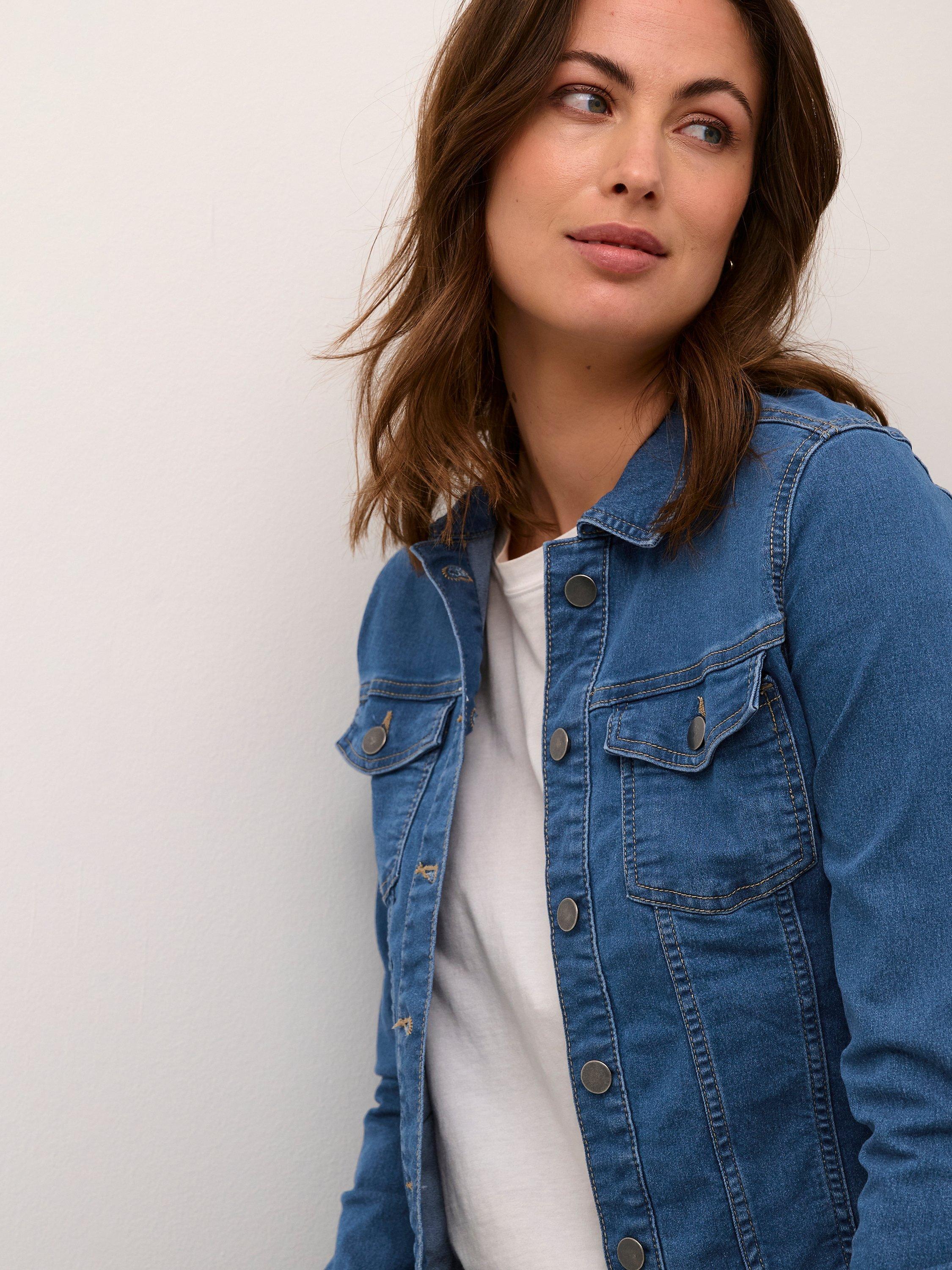 Every wardrobe needs a denim jacket and this option from KAFFE falls to just below the waist for a contemporary profile.