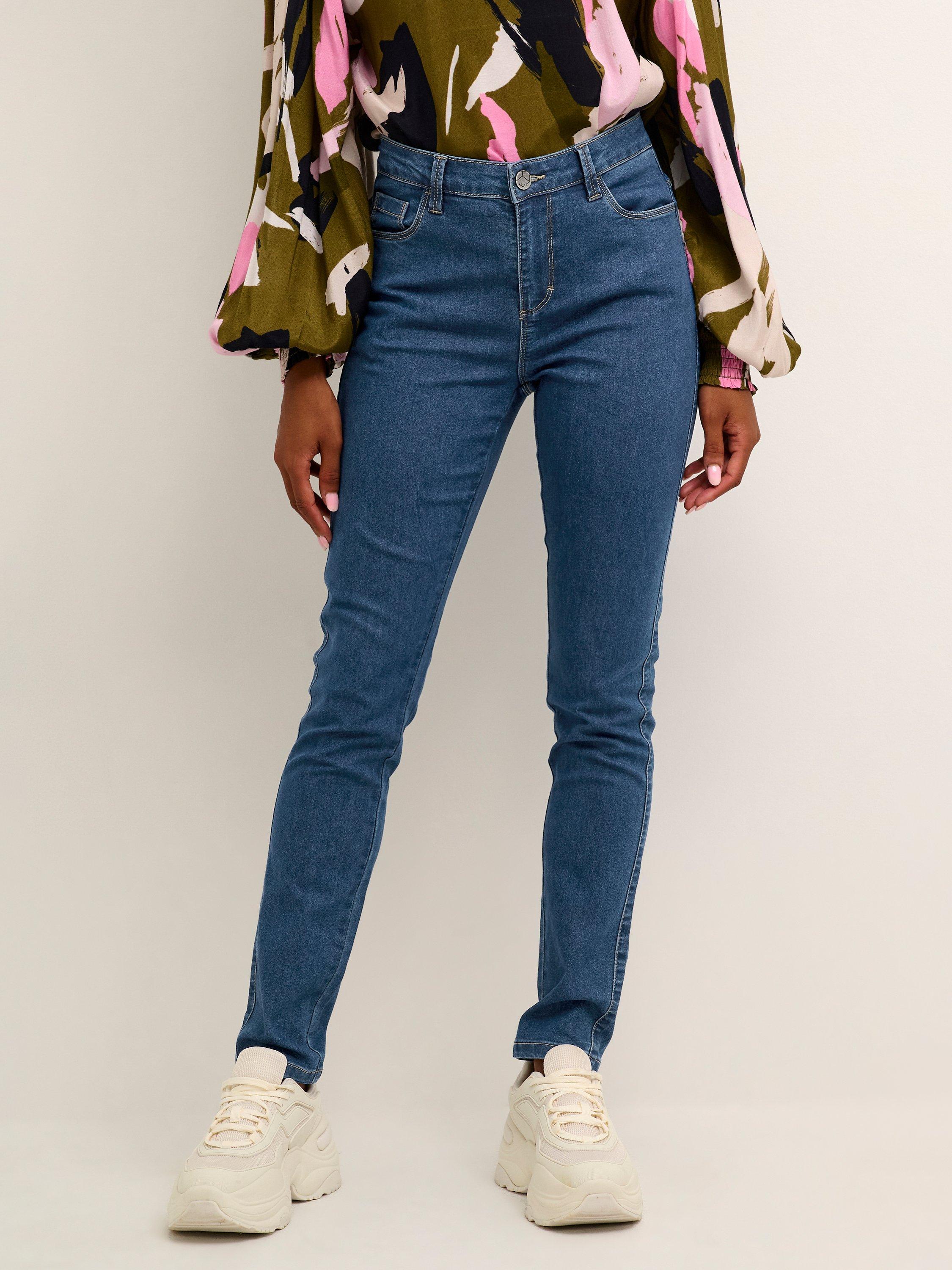 Cut to a timeless slim fit, these mid rise jeans by KAFFE are made from classic cotton blended denim.