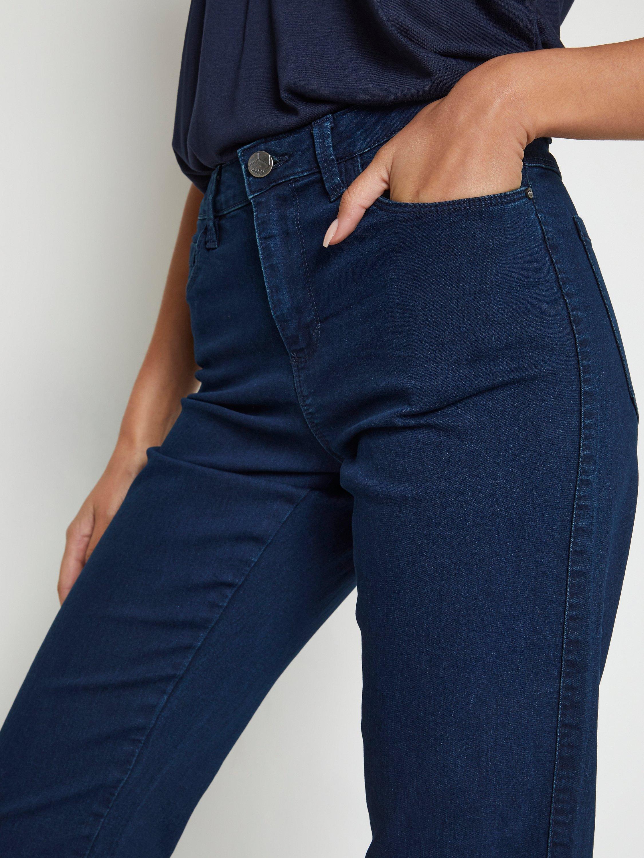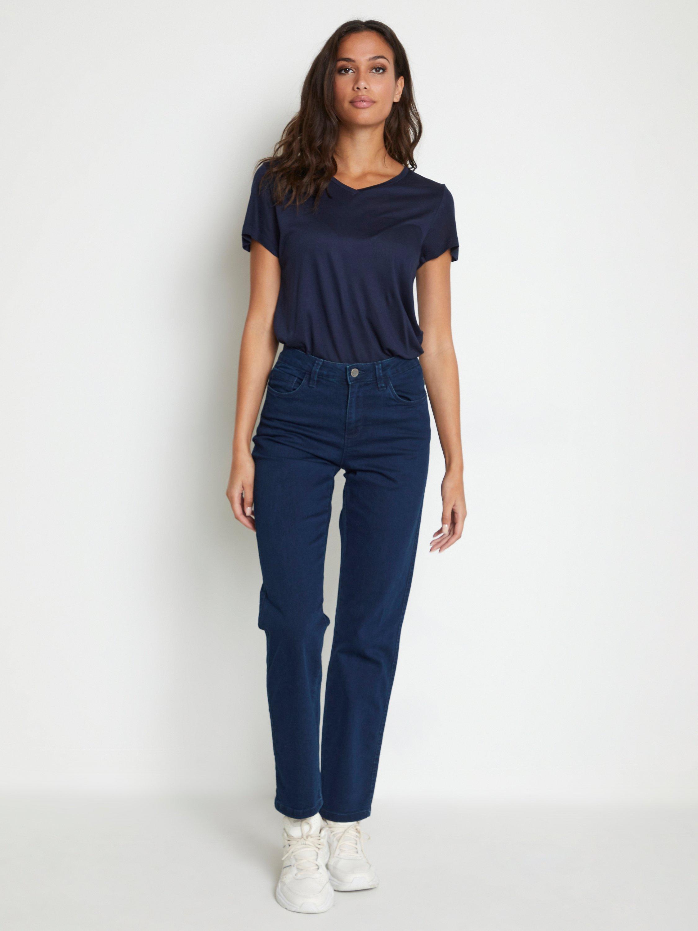 Cut with straight legs to perfectly tap into the casual essence of the season, these mid rise jeans by KAFFE are made from classic cotton blended denim and feature a regular length hem.