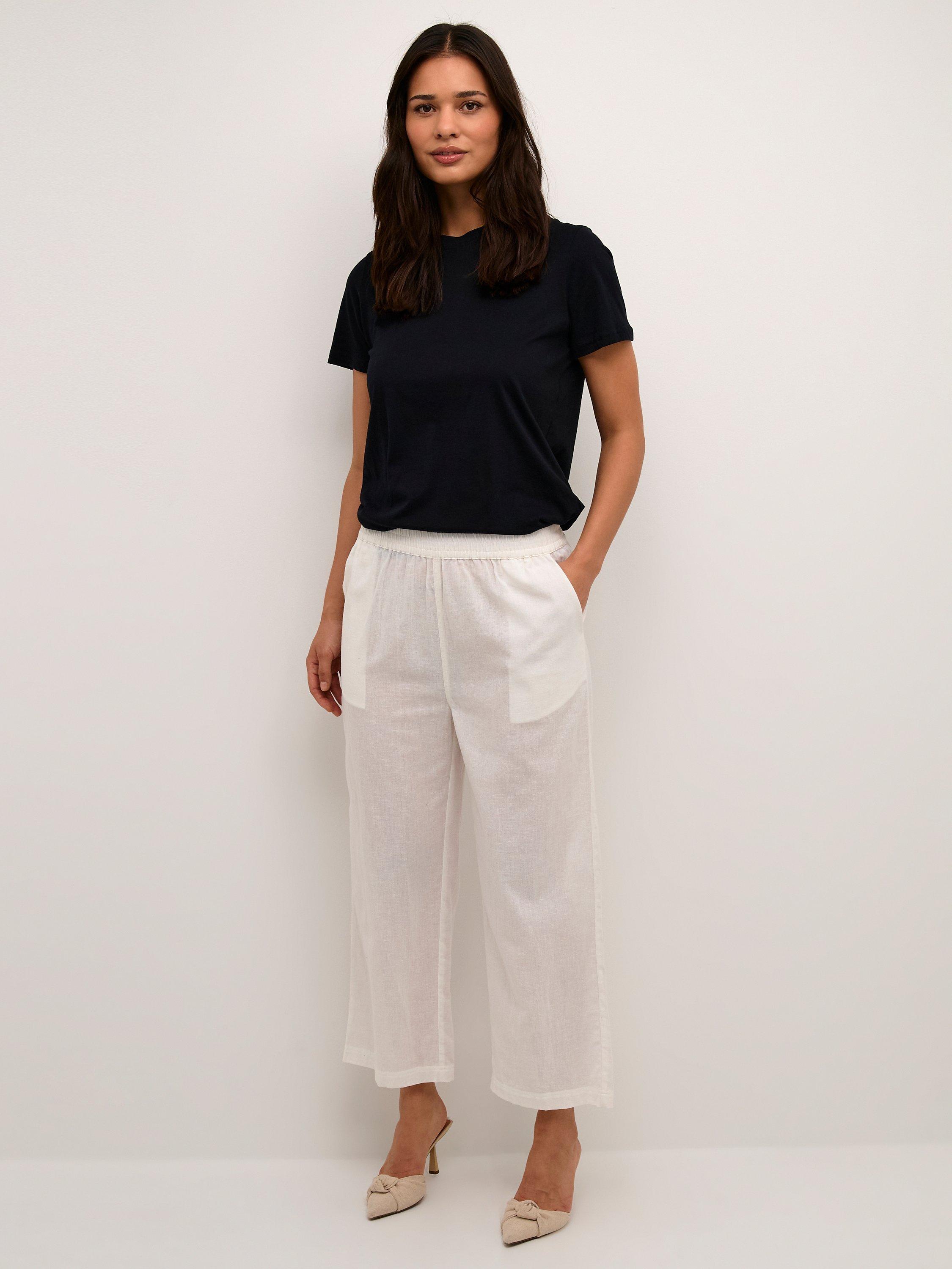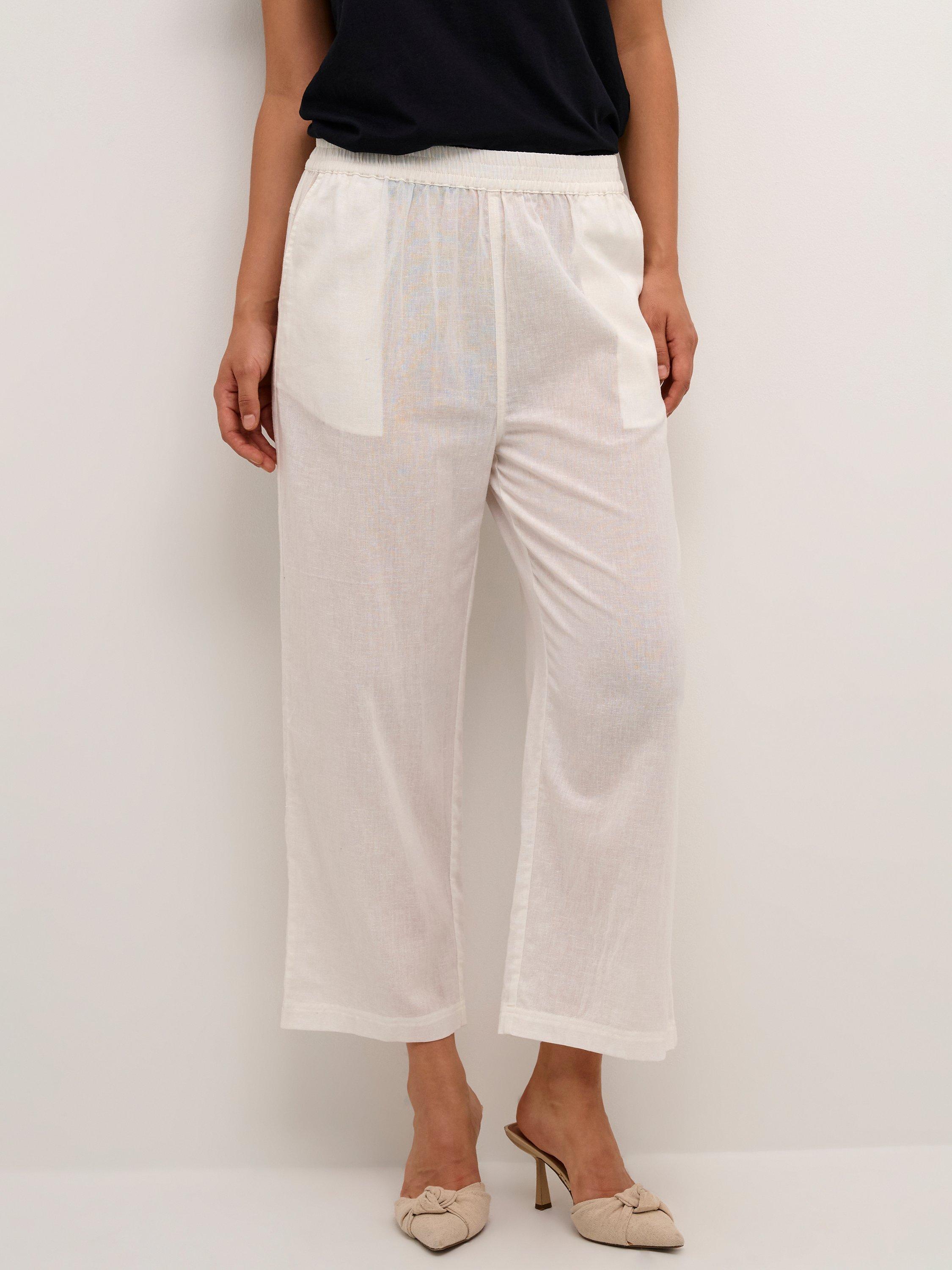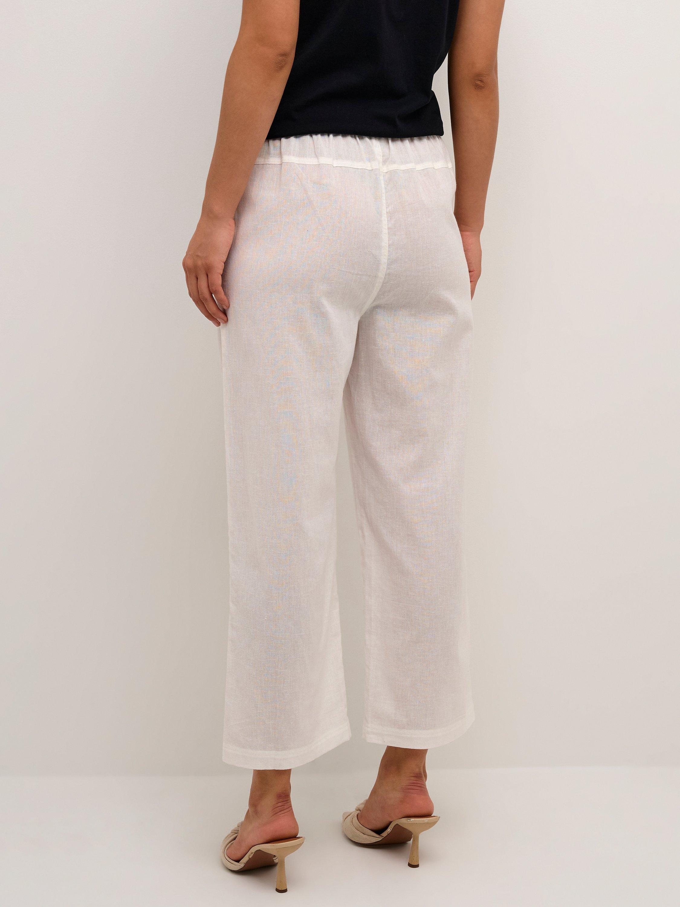 Soft and lightweight in a blended linen fabric, they allow you to experiment with accessories and prints thanks to their plain design.