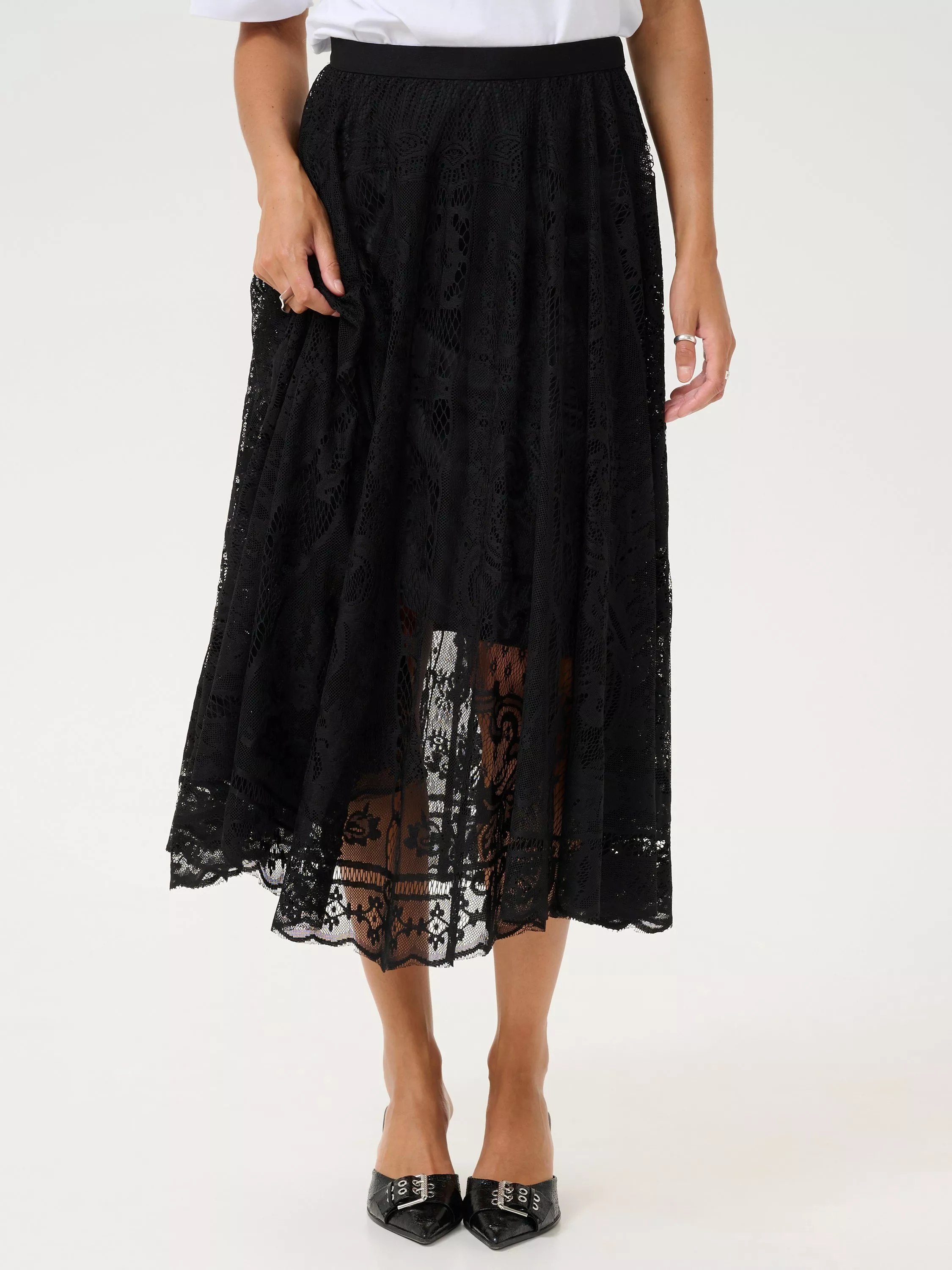 KAFFEVilja Lace A-Line Midi Skirt, Black