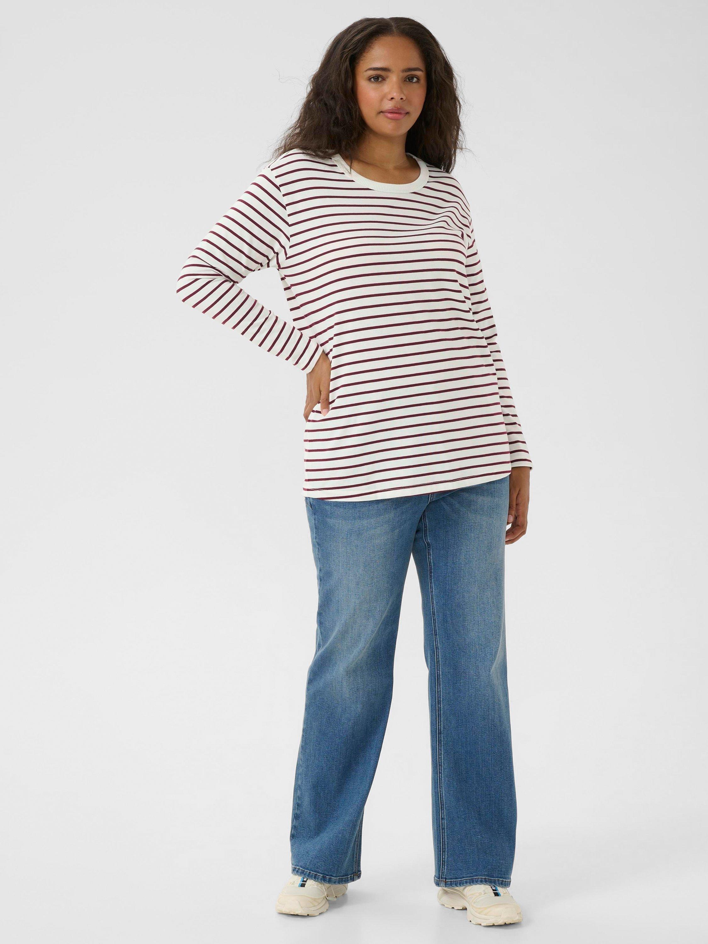KAFFE's striped cotton top is designed for comfort and ease with a classic round neck and long sleeves.