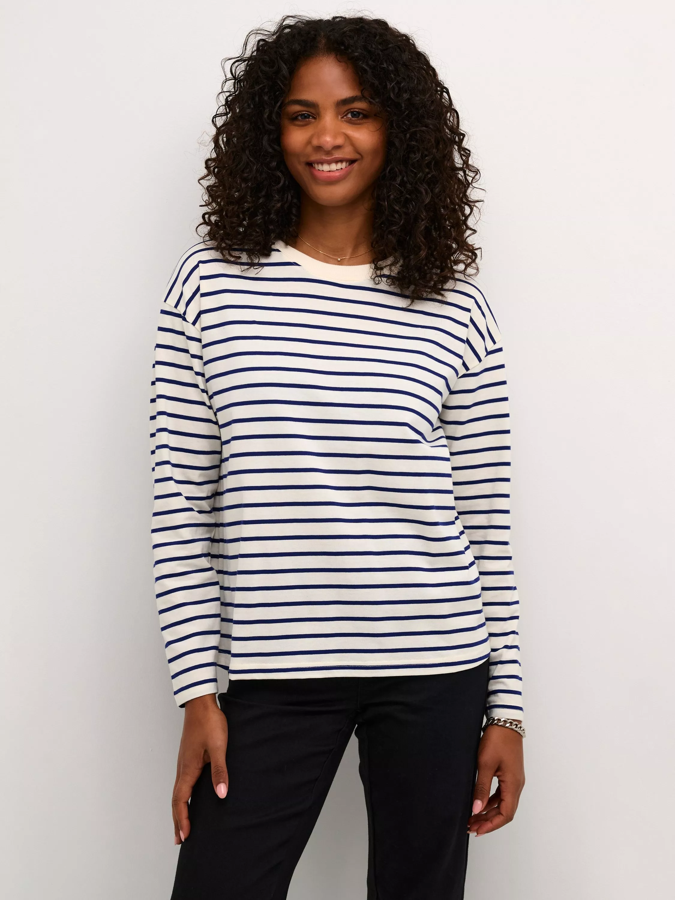 KAFFEWinny Stripe Long Sleeve Top, Antique White/Blue