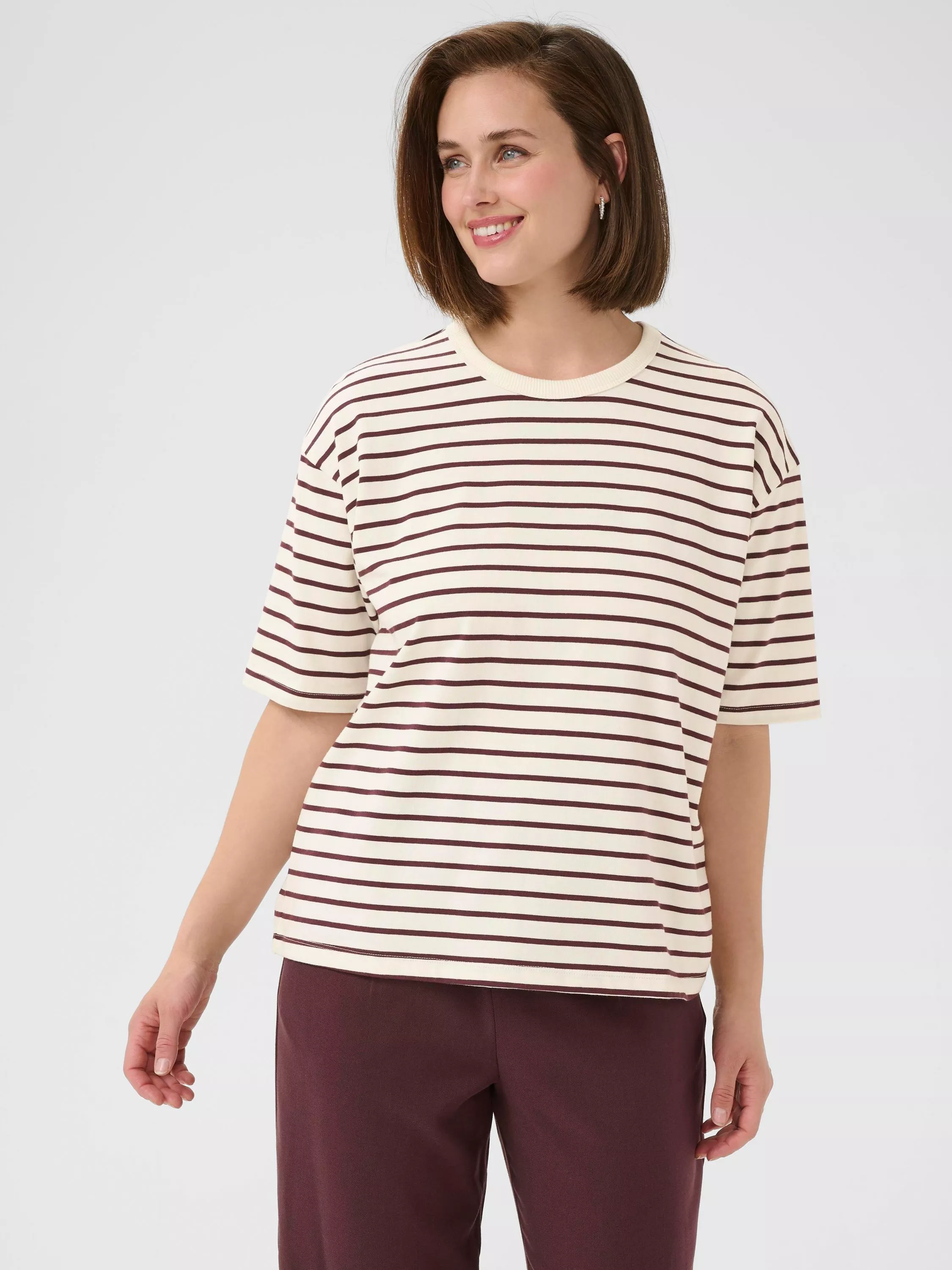 The foundation to all your looks, this t-shirt from KAFFE is sure to be a wardrobe favourite with its neat stripe detail. Cut with a round neckline and short sleeves, it's made from soft cotton and is ideal for relaxed daytime wear.