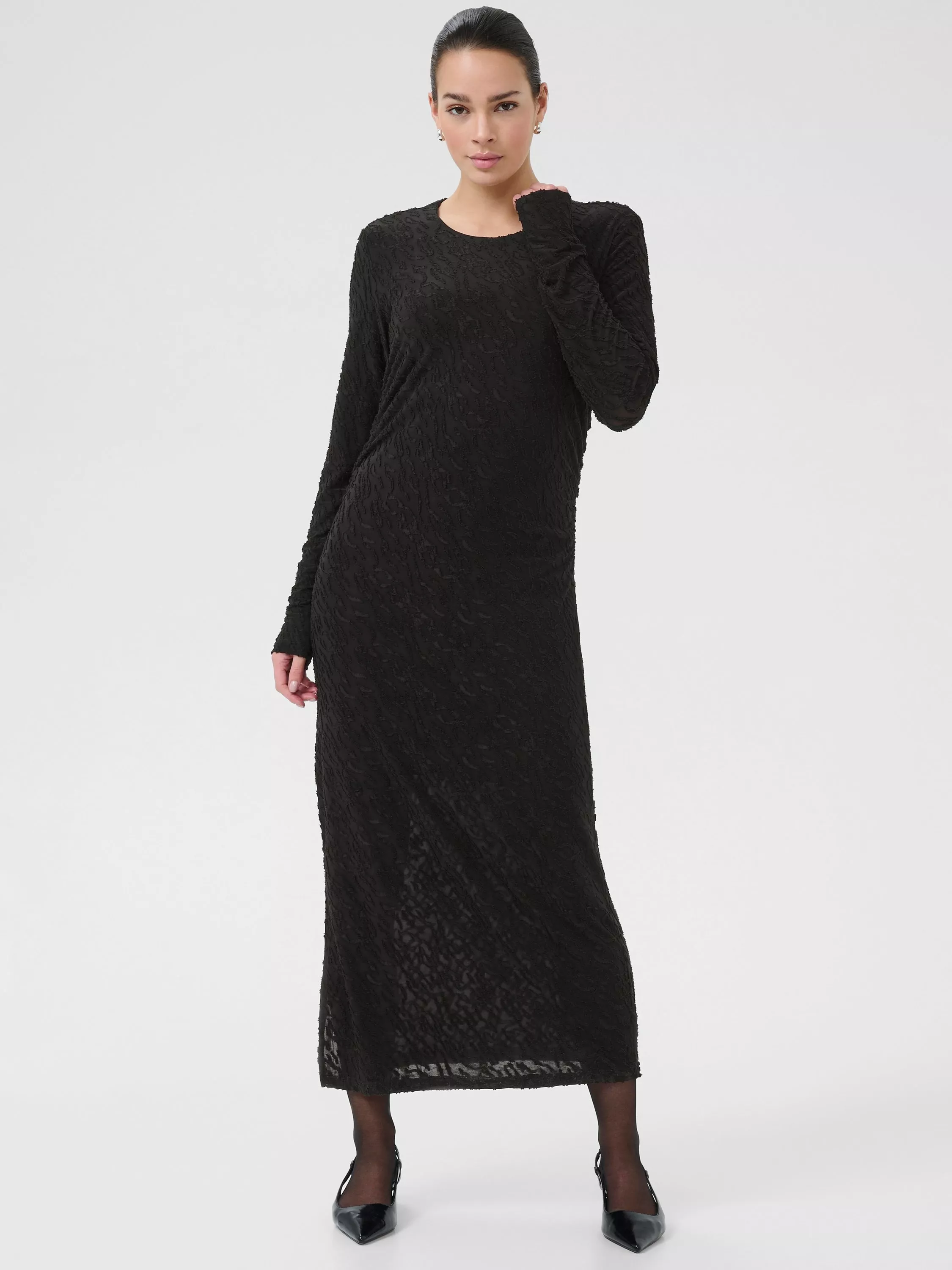 KAFFE's sheath maxi dress - a textured finish offers an unexpected twist, while long sleeves and a round neck keep things classic.