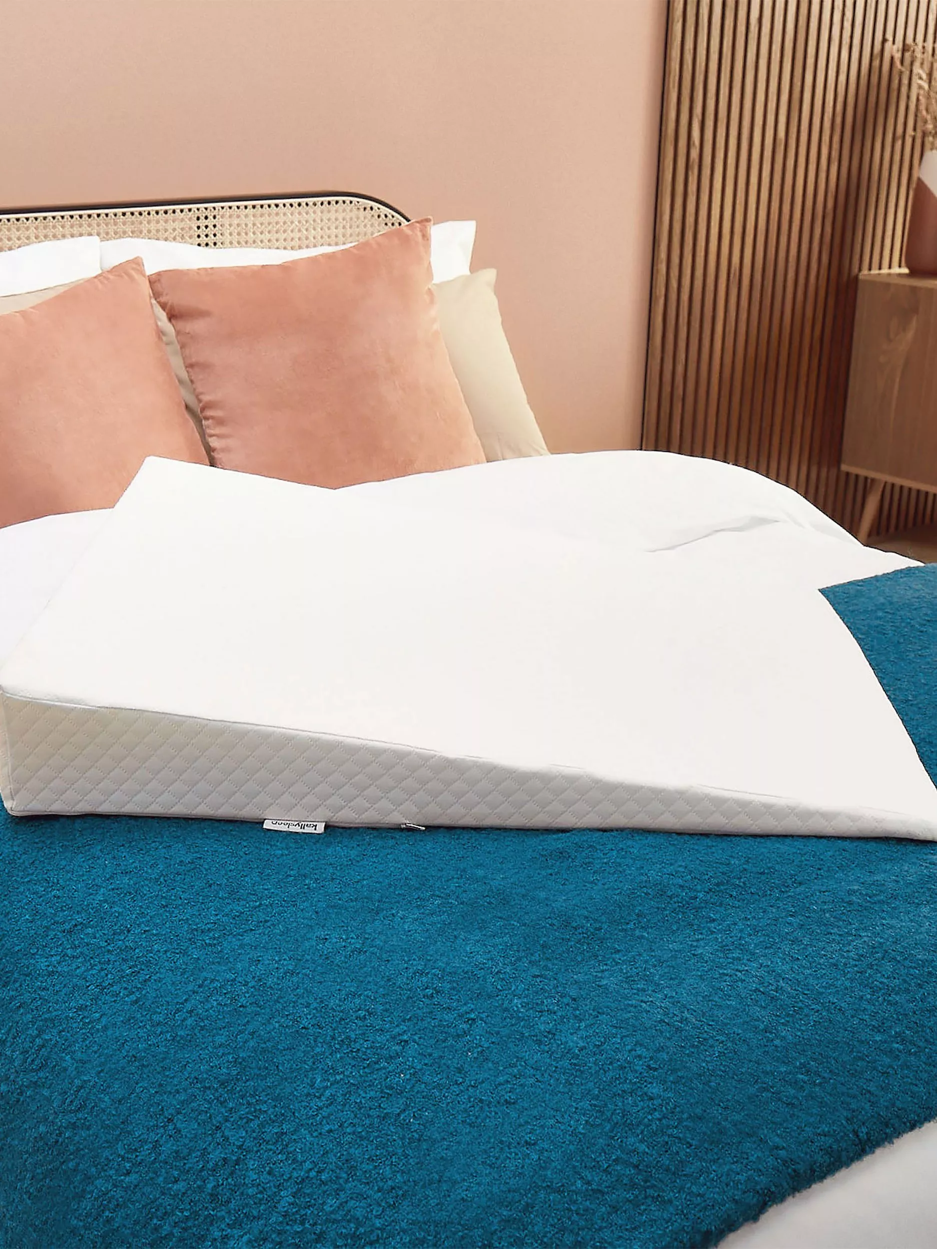 The Acid Reflux pillow has been designed to relieve symptoms of acid reflux and heartburn to ensure you have a comfortable nights sleep. Its angled wedge shape supports the upper half of your body and elevates the torso, using gravity to prevent acid running upwards from your stomach. This helps to reduce acid and reflux discomfort. Use it at a steep angle for sitting up or at a shallow angle for a gentle inclination and back support.