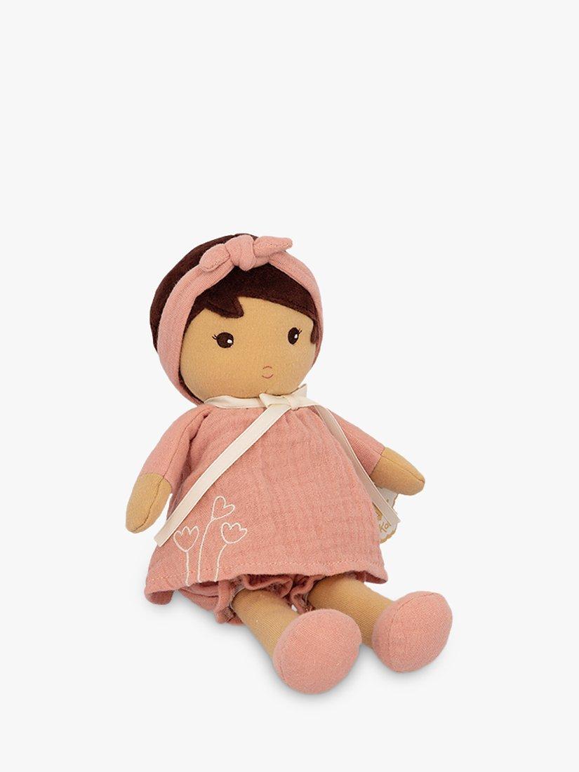 Meet Amandine, a pretty fabric doll in pastel tones. Her dress is soft and comfortable and very soft to the touch for little hands.Amandine makes the perfect birth gift and the small size allows it to be taken wherever your baby goes.