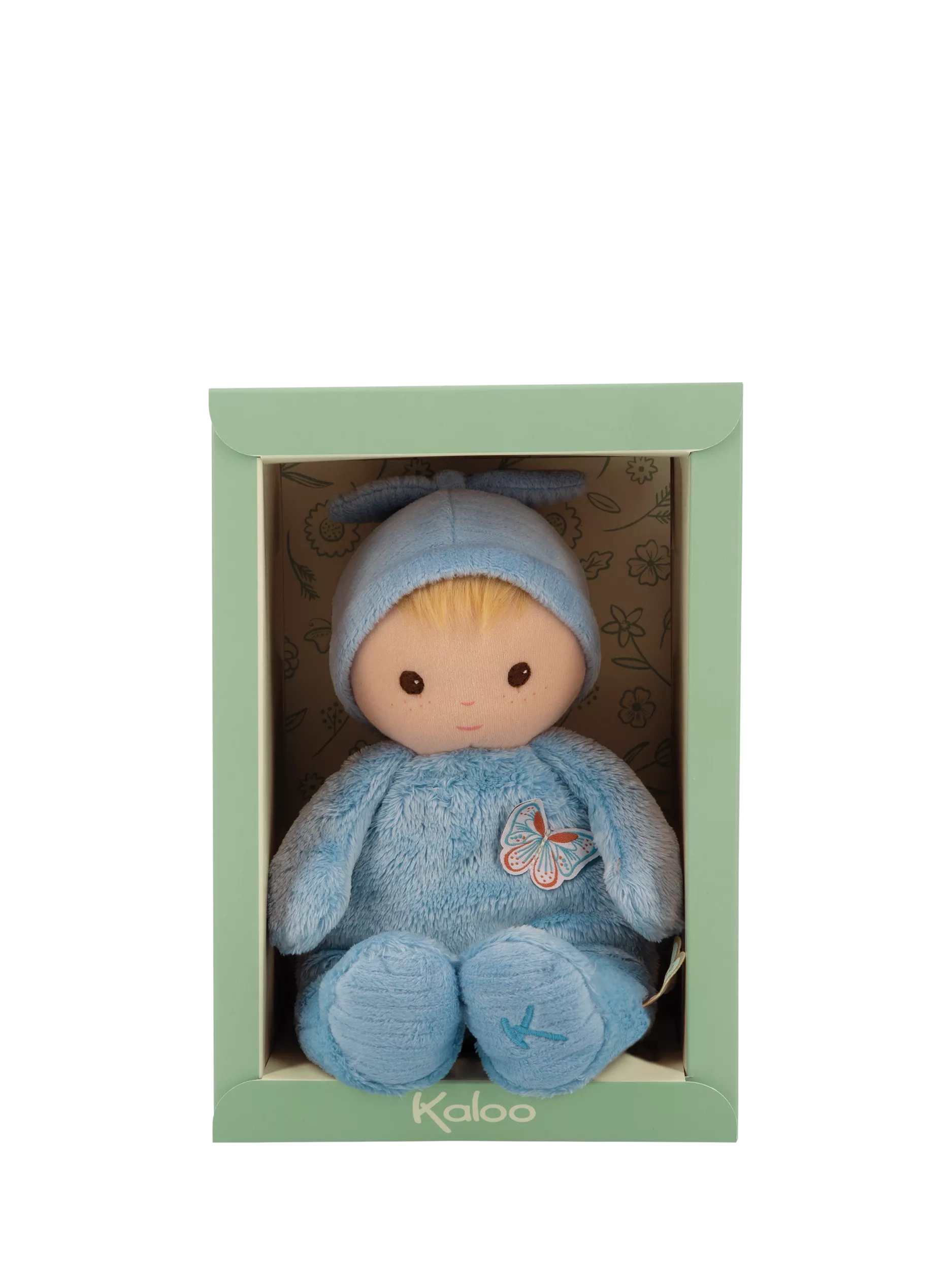 He's particularly fond of the linen flower, a symbol of simplicity and elegance. His body is soft and cuddly, and his little arms are an invitation to cuddle. A pretty butterfly adorns his body, evoking the lightness and grace of flowers. The butterfly-shaped woven label is perfect for inviting little ones to touch it and develop their dexterity. It is present on all Kaloo's tender babies, as a signature of the range and a symbol of connection and uniqueness.