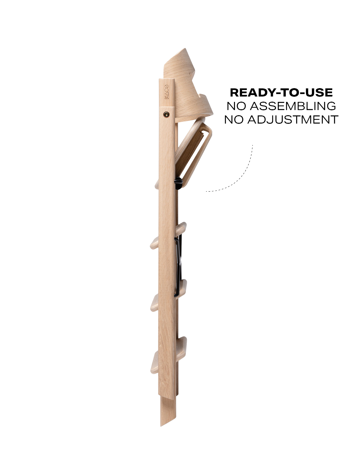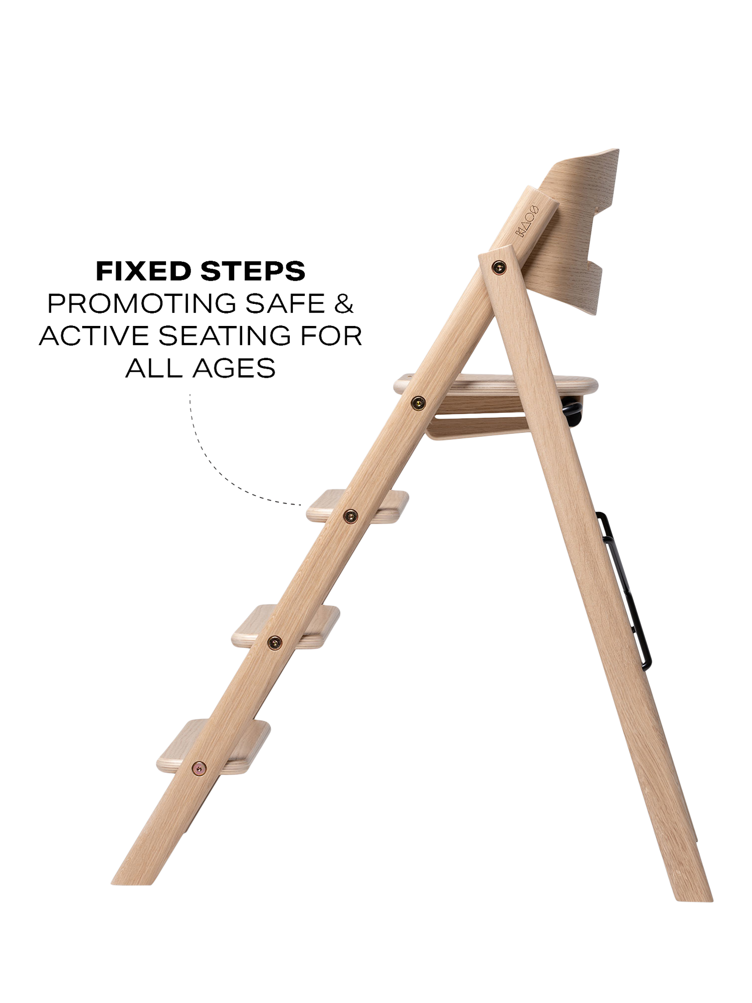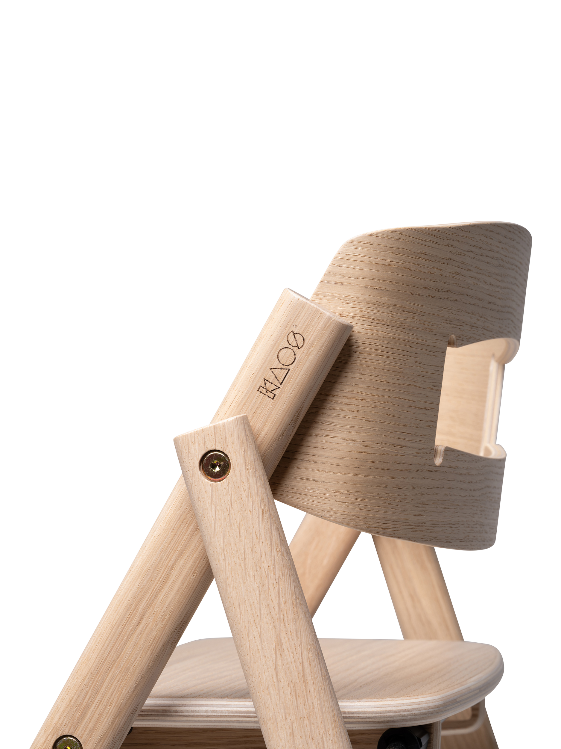 The design is based on the analogy of a staircase, where users of different sizes can sit down and quickly find a natural and good sitting position. The human body was developed to move, and KAOS Klapp allows the child to automatically change position, maintaining a natural movement. The fixed step ladders should never be adjusted so that the child can climb up and down from the chair themselves, fostering a great feeling of mastery from early on. As the child grows, the feet will find a natural, ergonomic position on various steps, providing a stable footrest at all times.