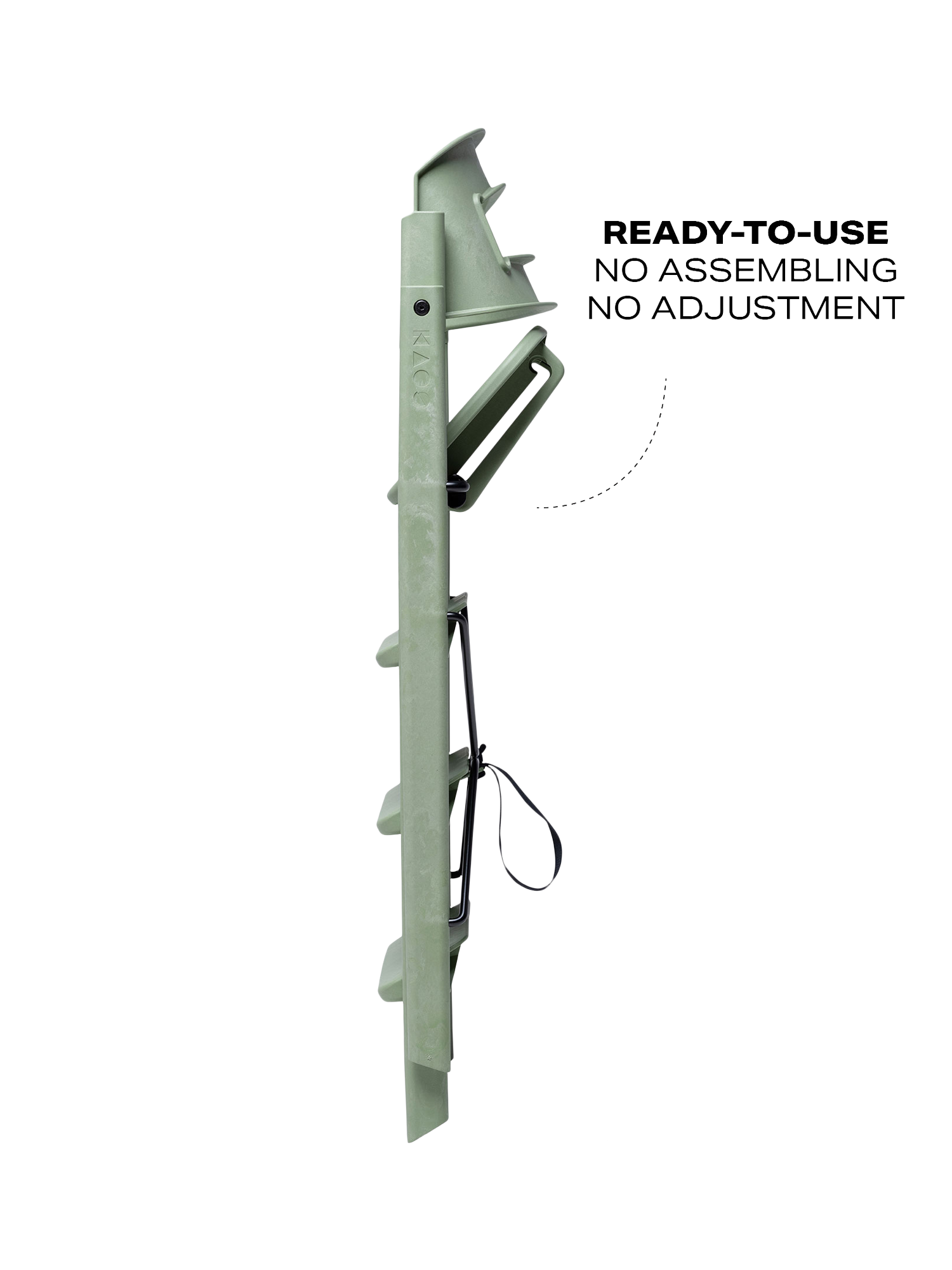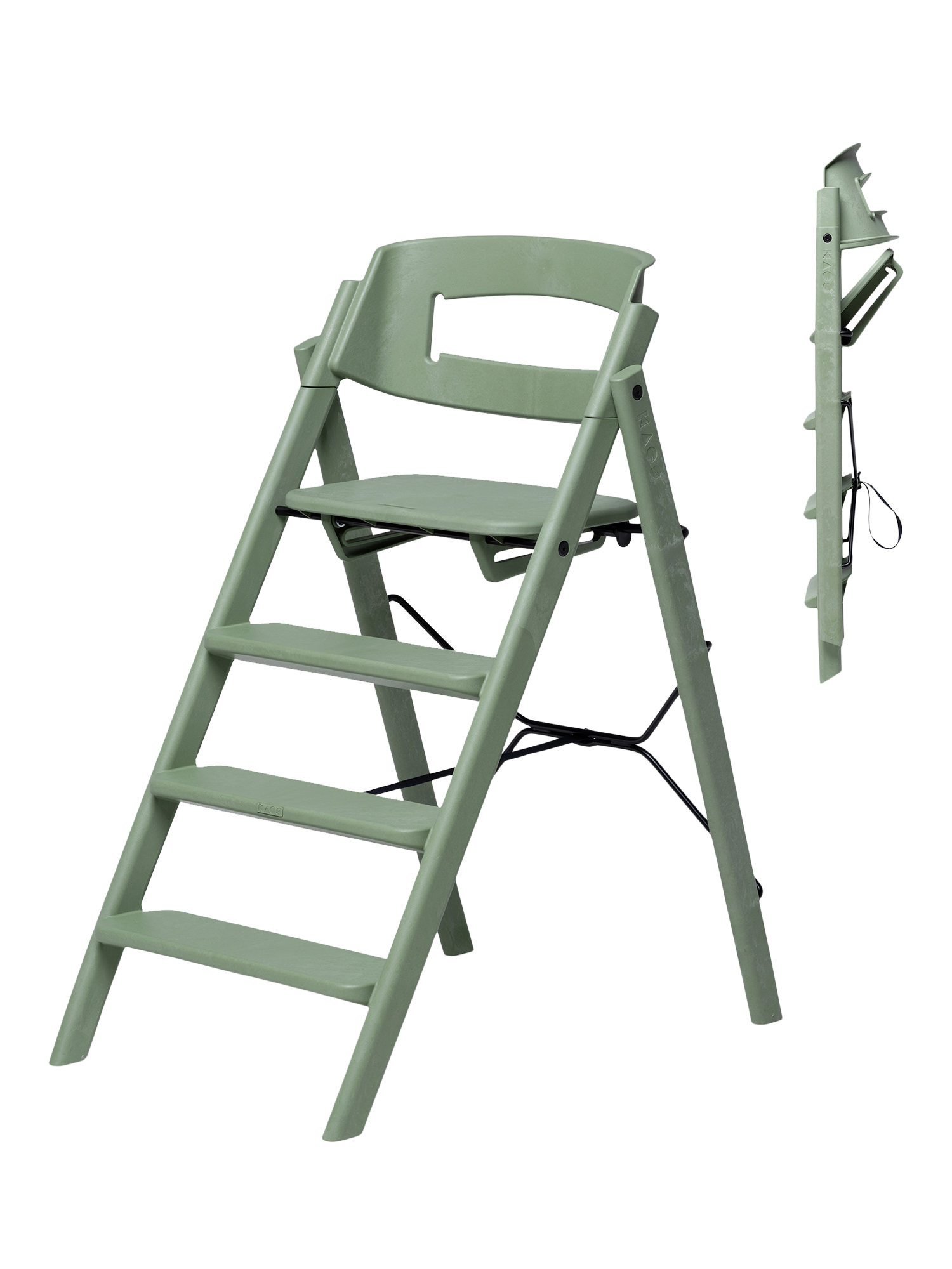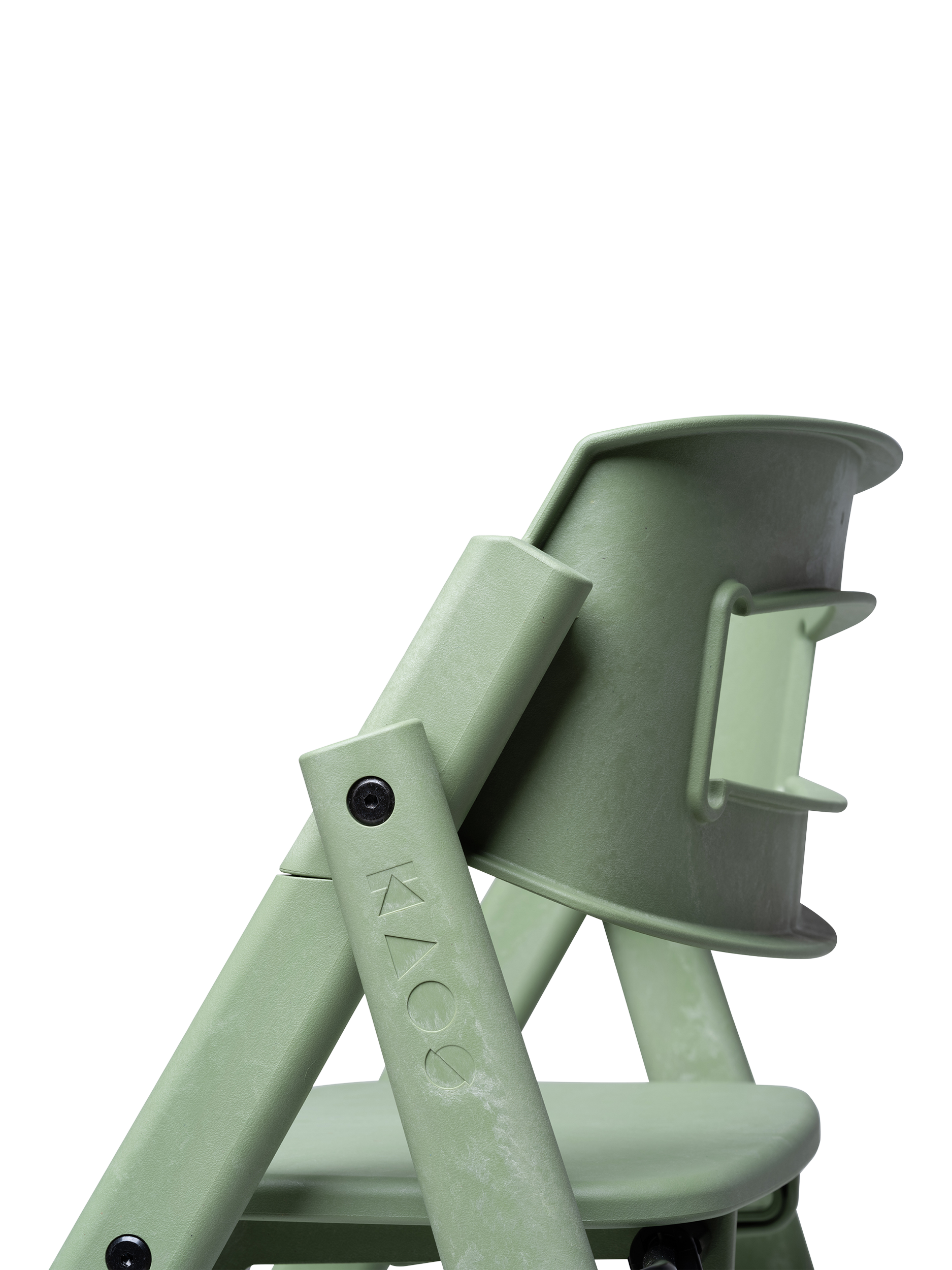 The design is based on the analogy of a staircase, where users of different sizes can sit down and quickly find a natural and good sitting position. The human body was developed to move, and KAOS Klapp allows the child to automatically change position, maintaining a natural movement. The fixed step ladders should never be adjusted so that the child can climb up and down from the chair themselves, fostering a great feeling of mastery from early on. As the child grows, the feet will find a natural, ergonomic position on various steps, providing a stable footrest at all times.