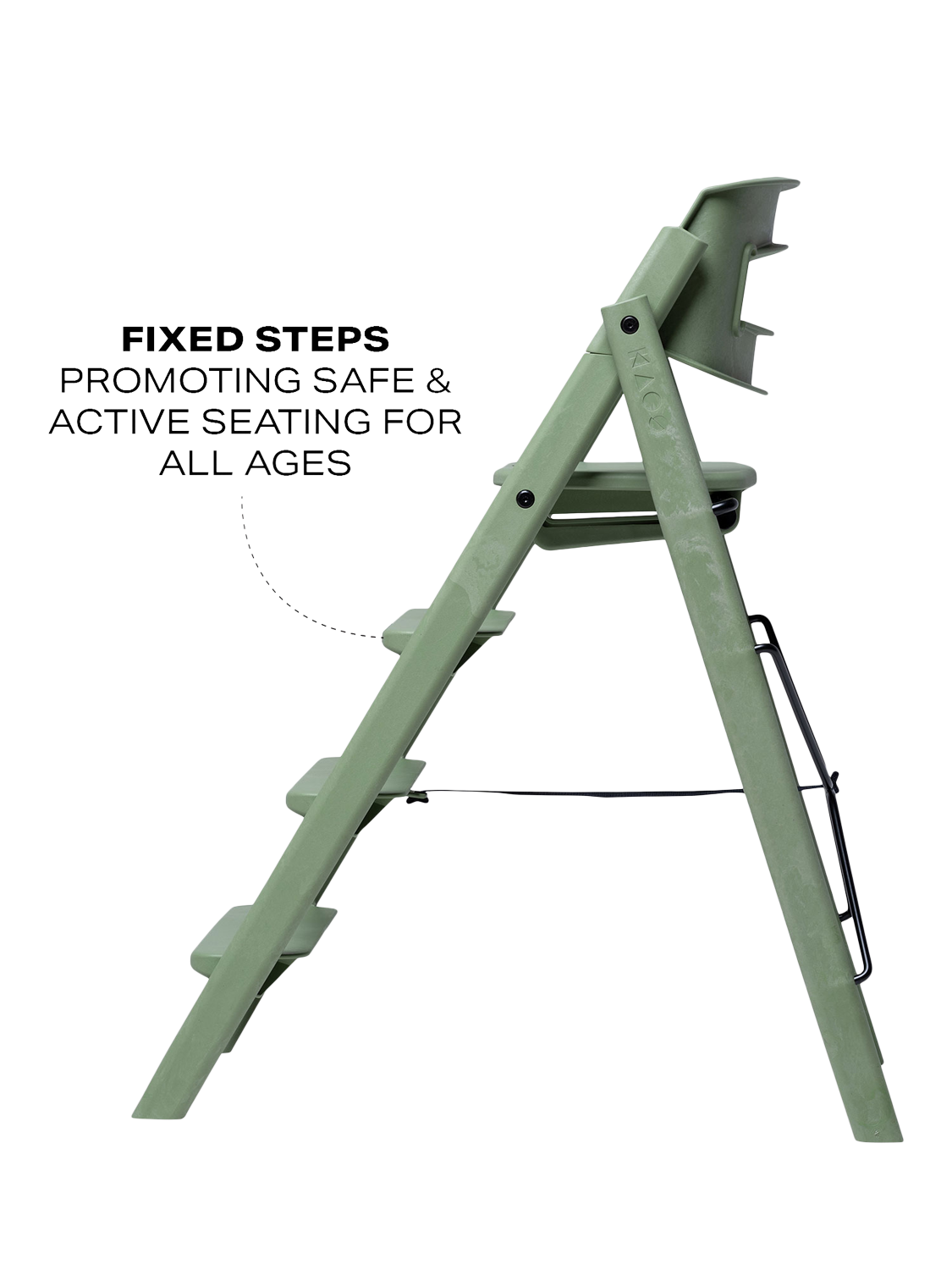 - Ergonomic and active seating, resting the legs naturally at the different steps as they grow