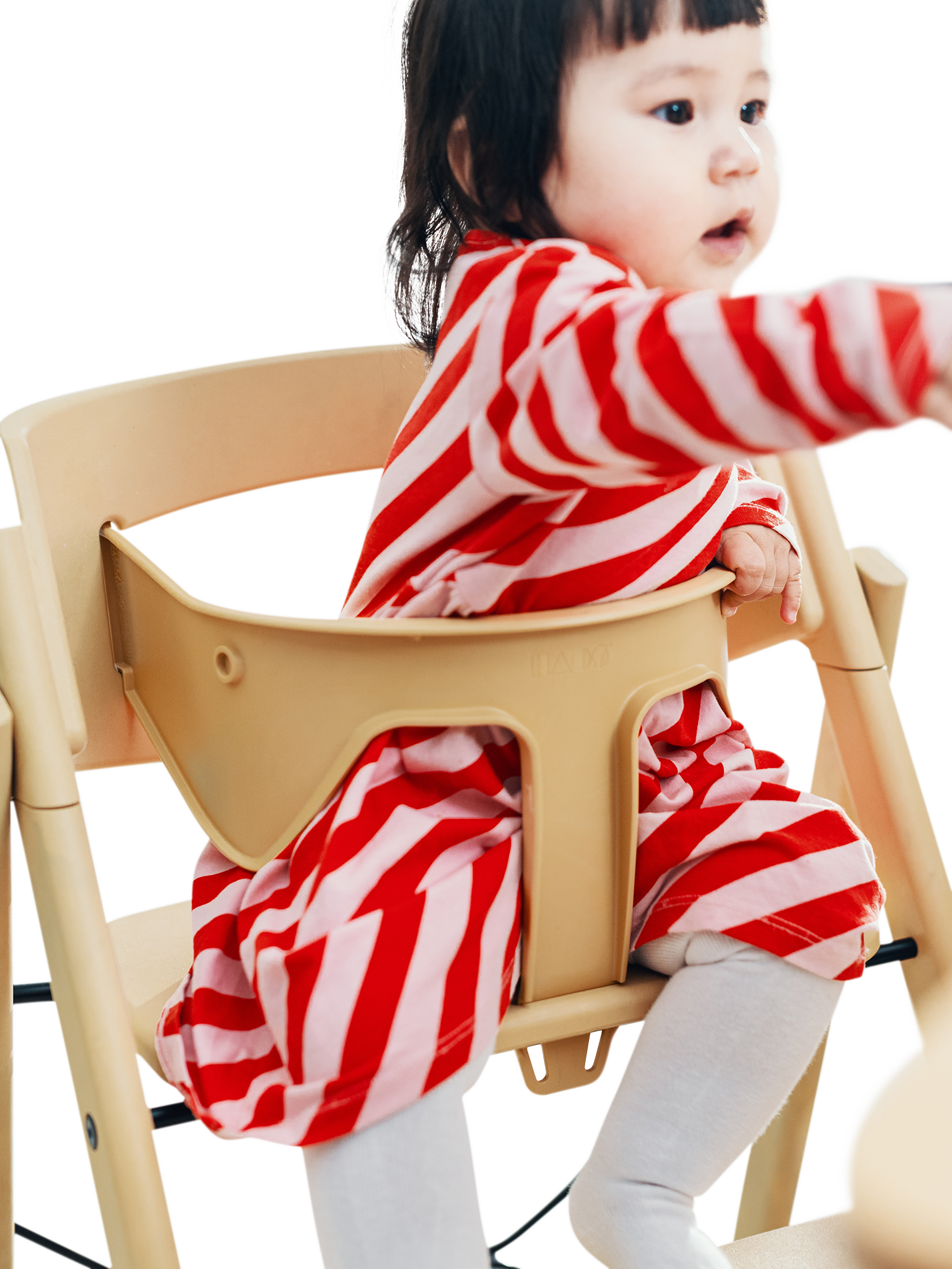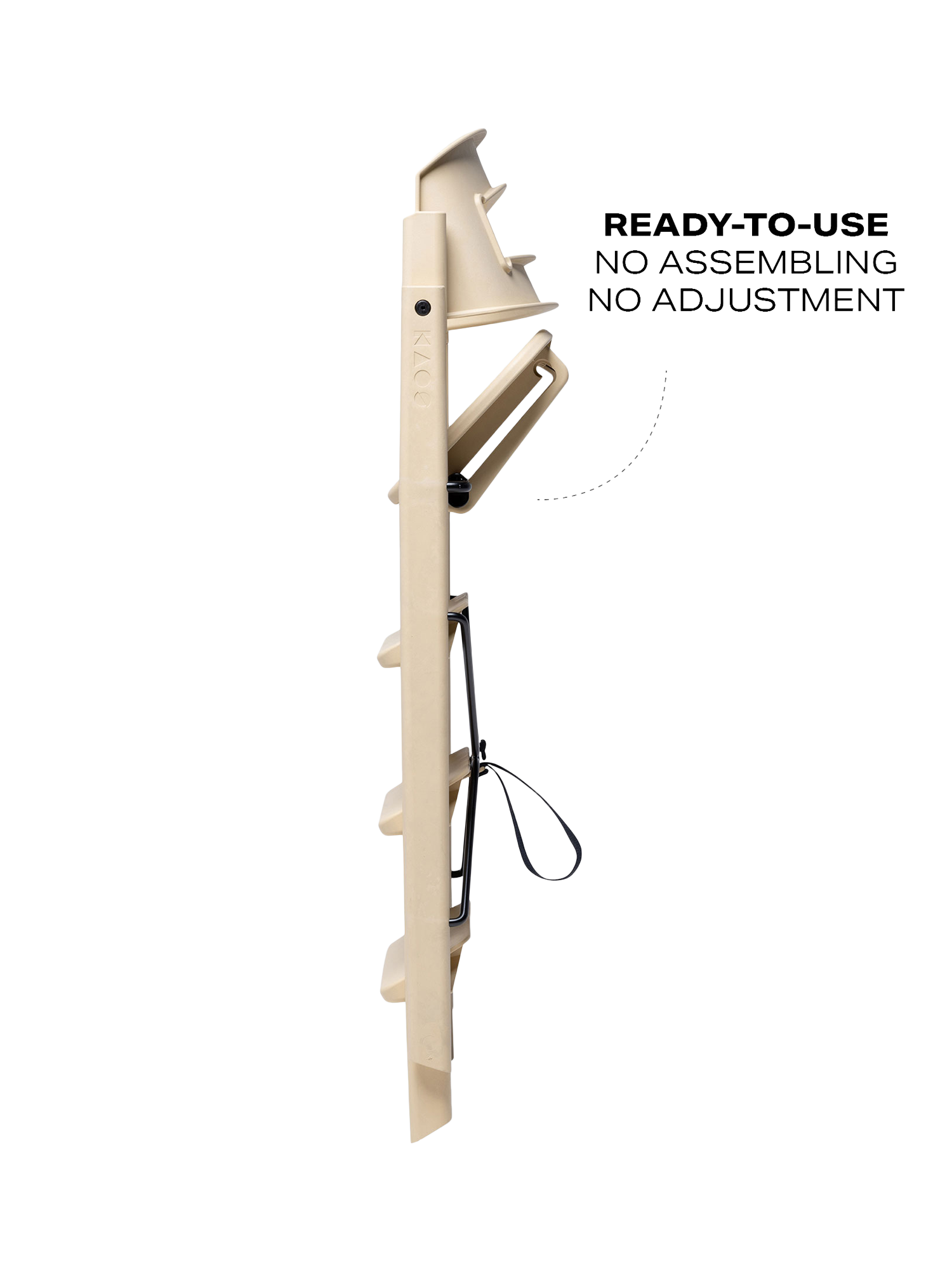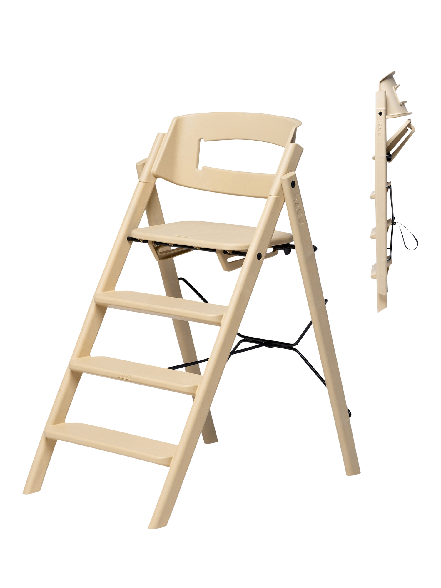 The design is based on the analogy of a staircase, where users of different sizes can sit down and quickly find a natural and good sitting position. The human body was developed to move, and KAOS Klapp allows the child to automatically change position, maintaining a natural movement. The fixed step ladders should never be adjusted so that the child can climb up and down from the chair themselves, fostering a great feeling of mastery from early on. As the child grows, the feet will find a natural, ergonomic position on various steps, providing a stable footrest at all times.