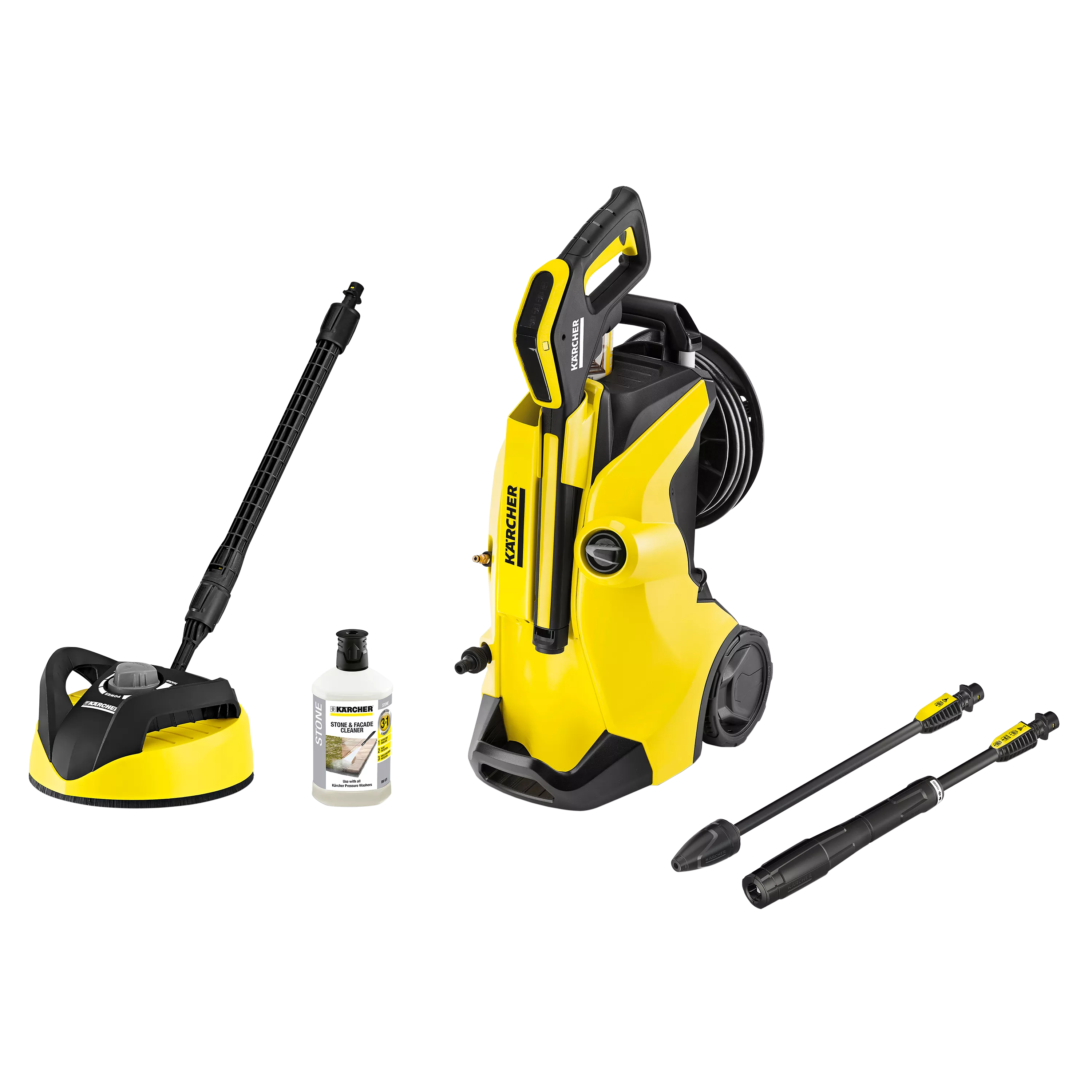 The K4 comes equipped with a trigger gun, Vario Lance and Dirt Blaster that delivers outstanding cleaning performance using concentrated rotating pressure. It also includes Kärcher's Home Kit with a patio cleaner accessory for hard surfaces like decking and patios.