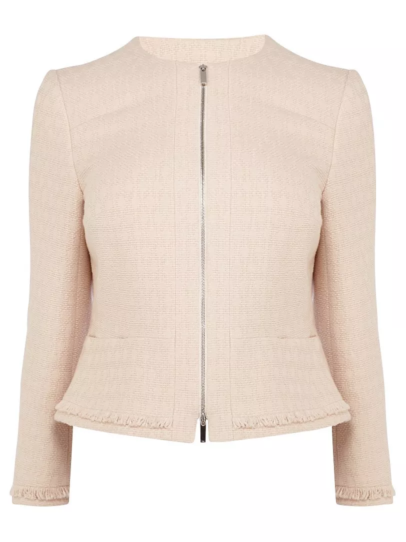 Crafted from Italian cotton, this feminine tweed jacket has been hand fringed and the branded zip adds a unique modern twist. Team yours over a shift dress or wear zipped up with a pair of skinnies for casual-cool.